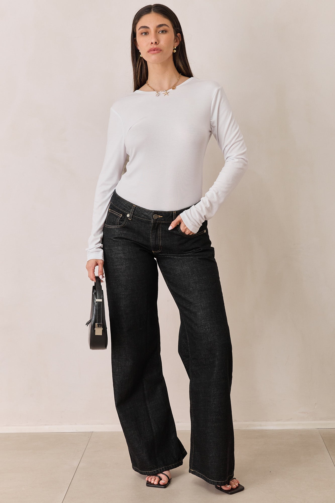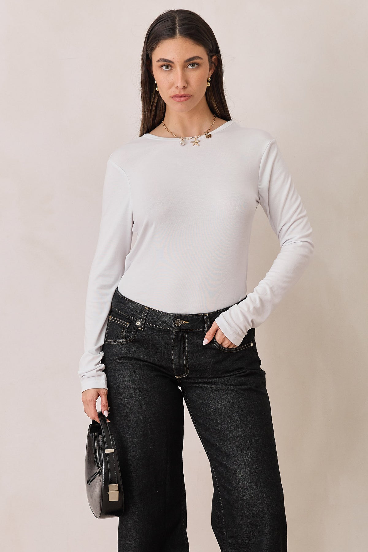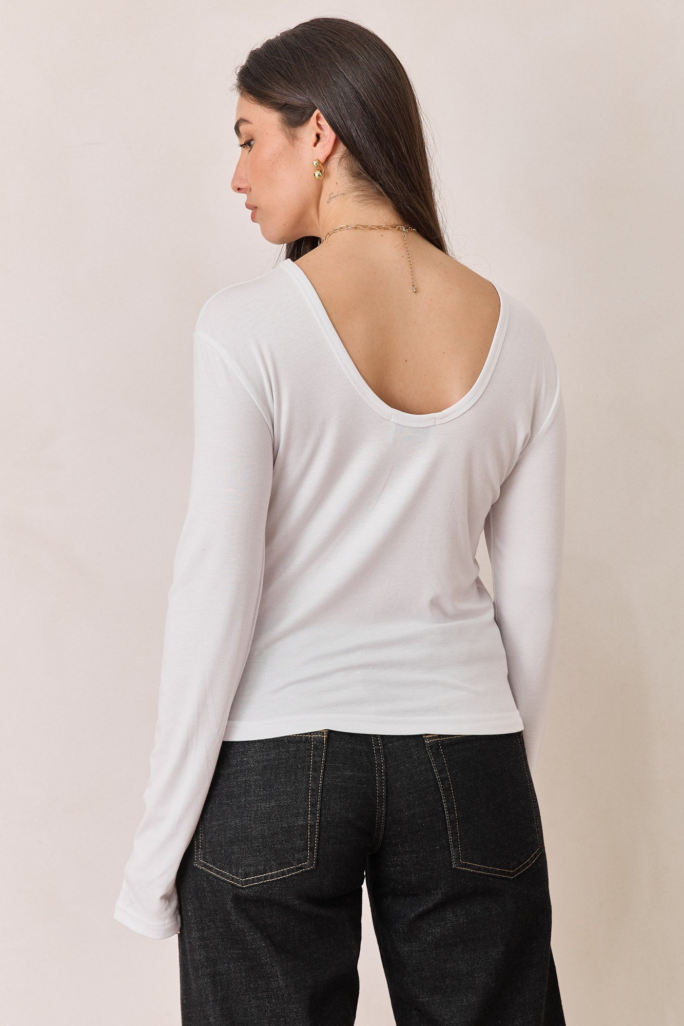 חולצת בייסיק עם שרוולים ארוכים ומחשוף גב עגול