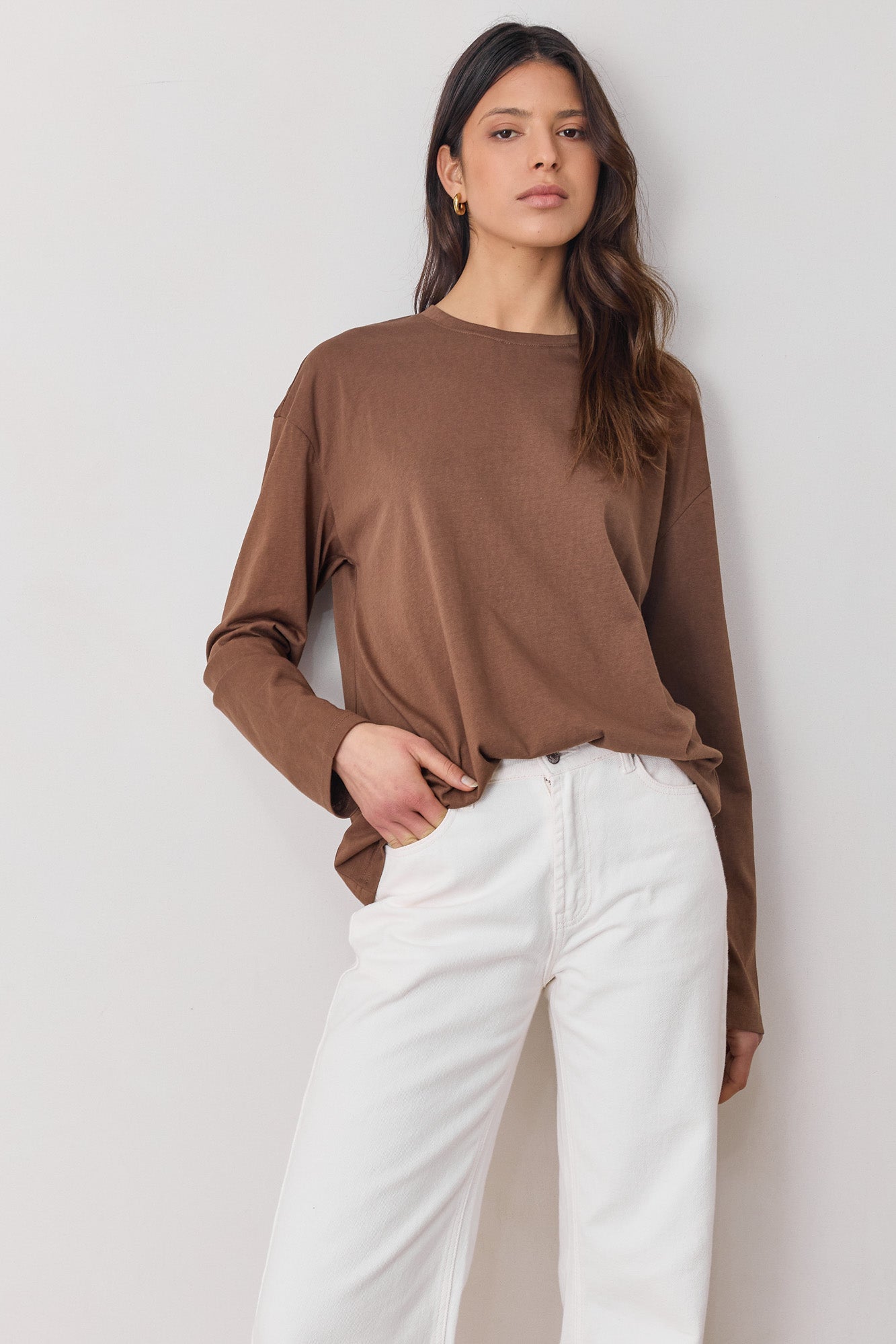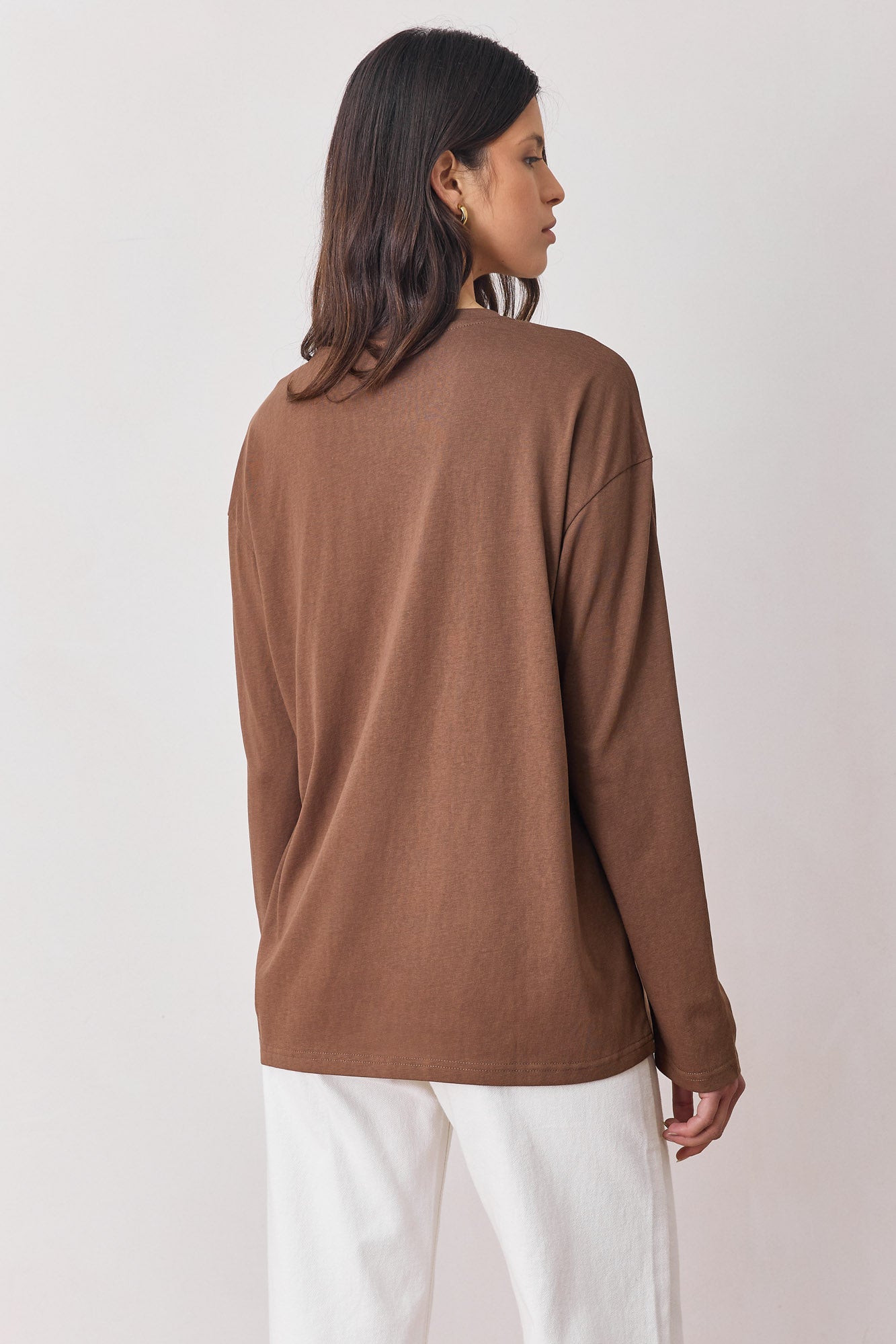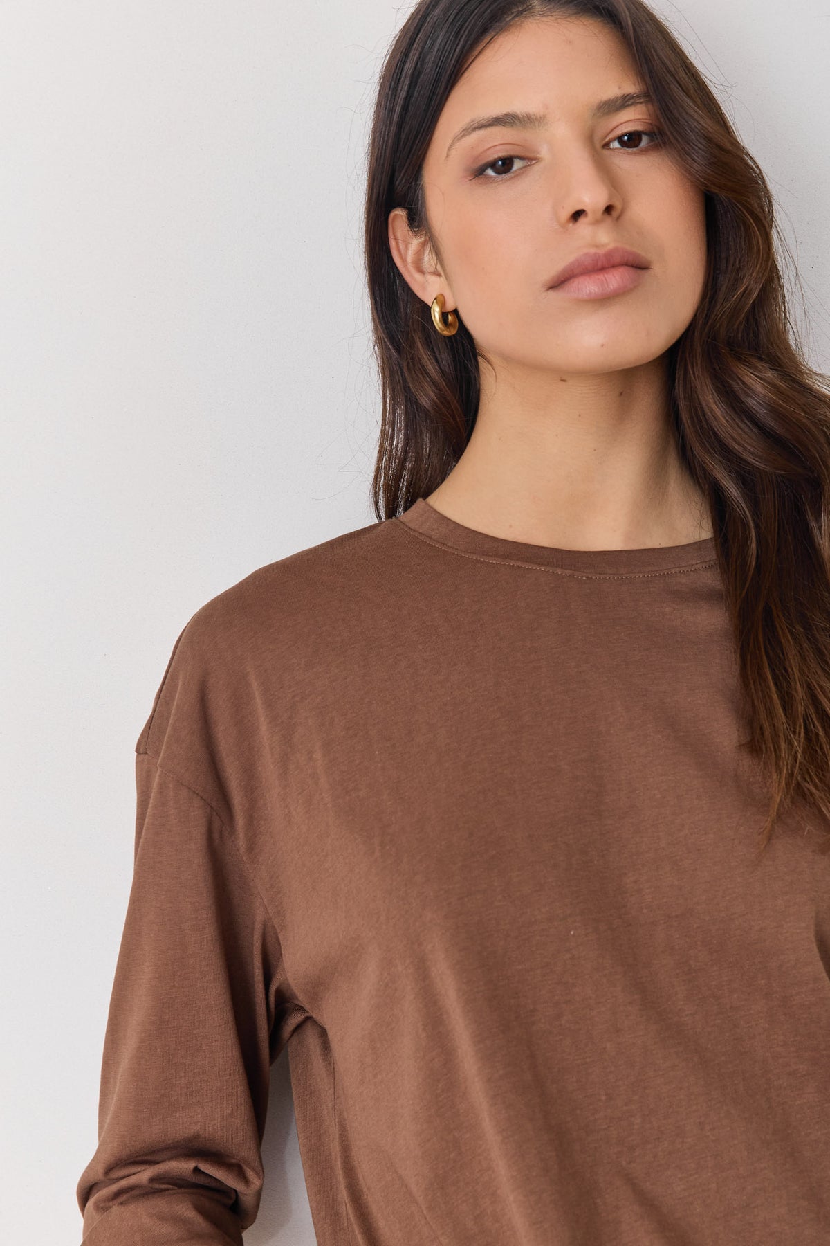טי שירט בייסיק מדיסון שרוול ארוך | חום