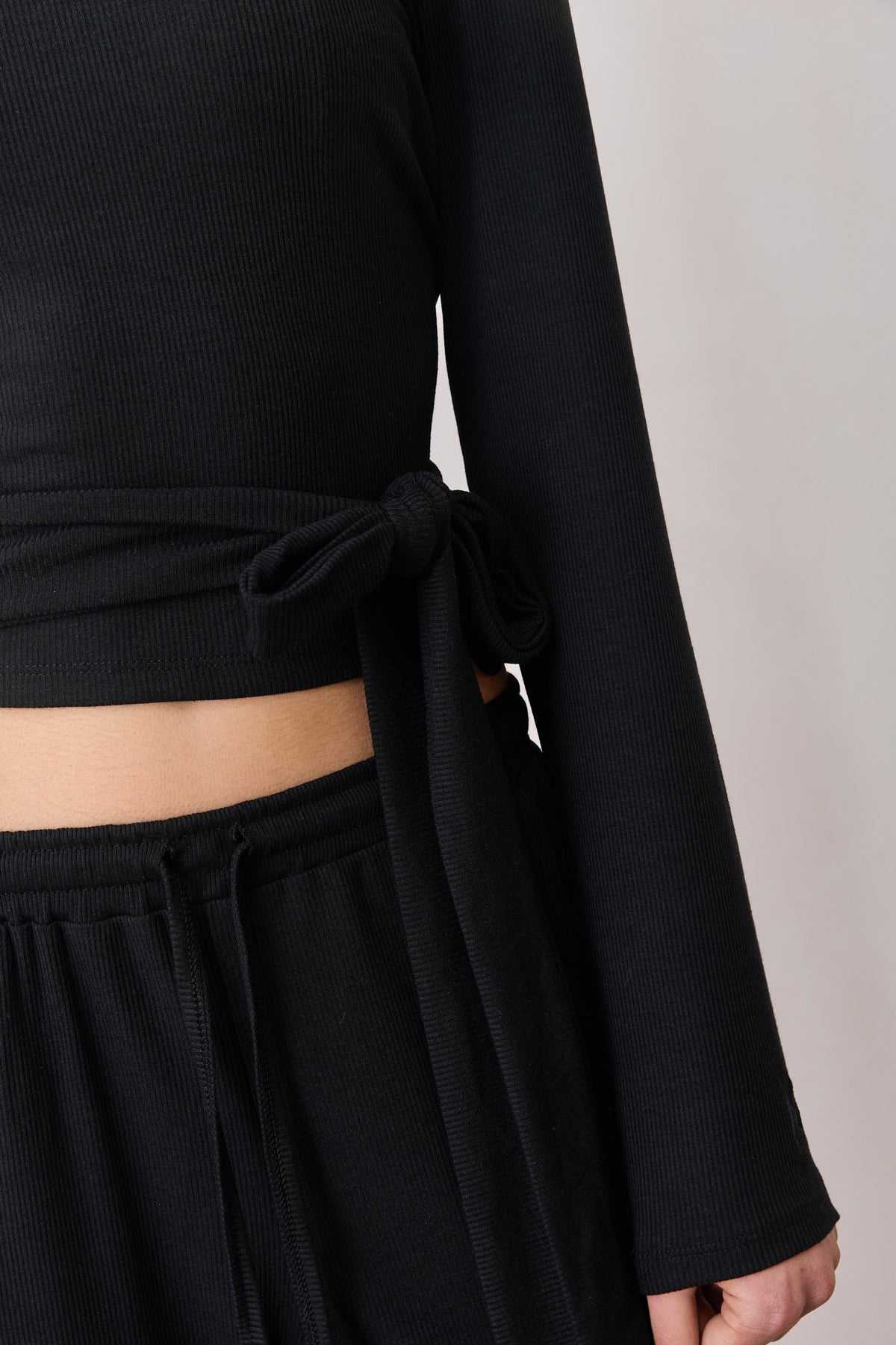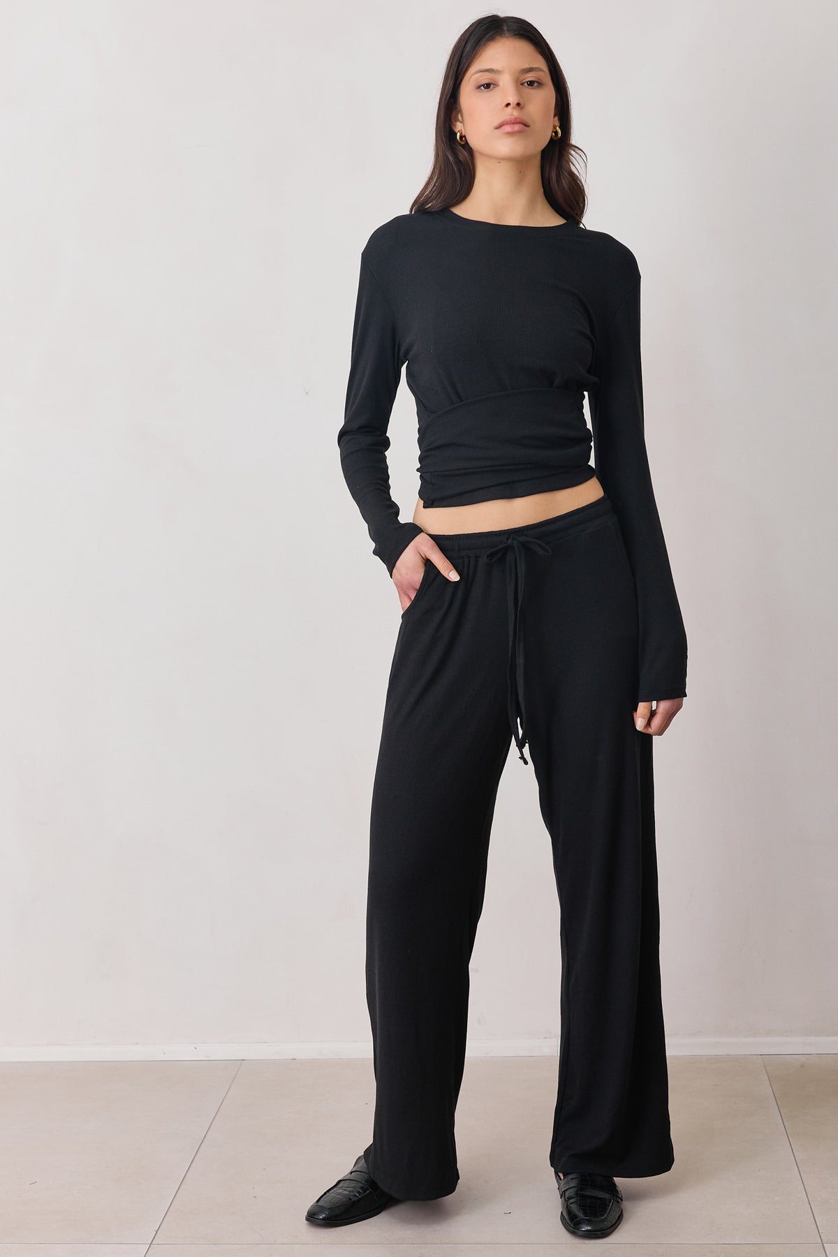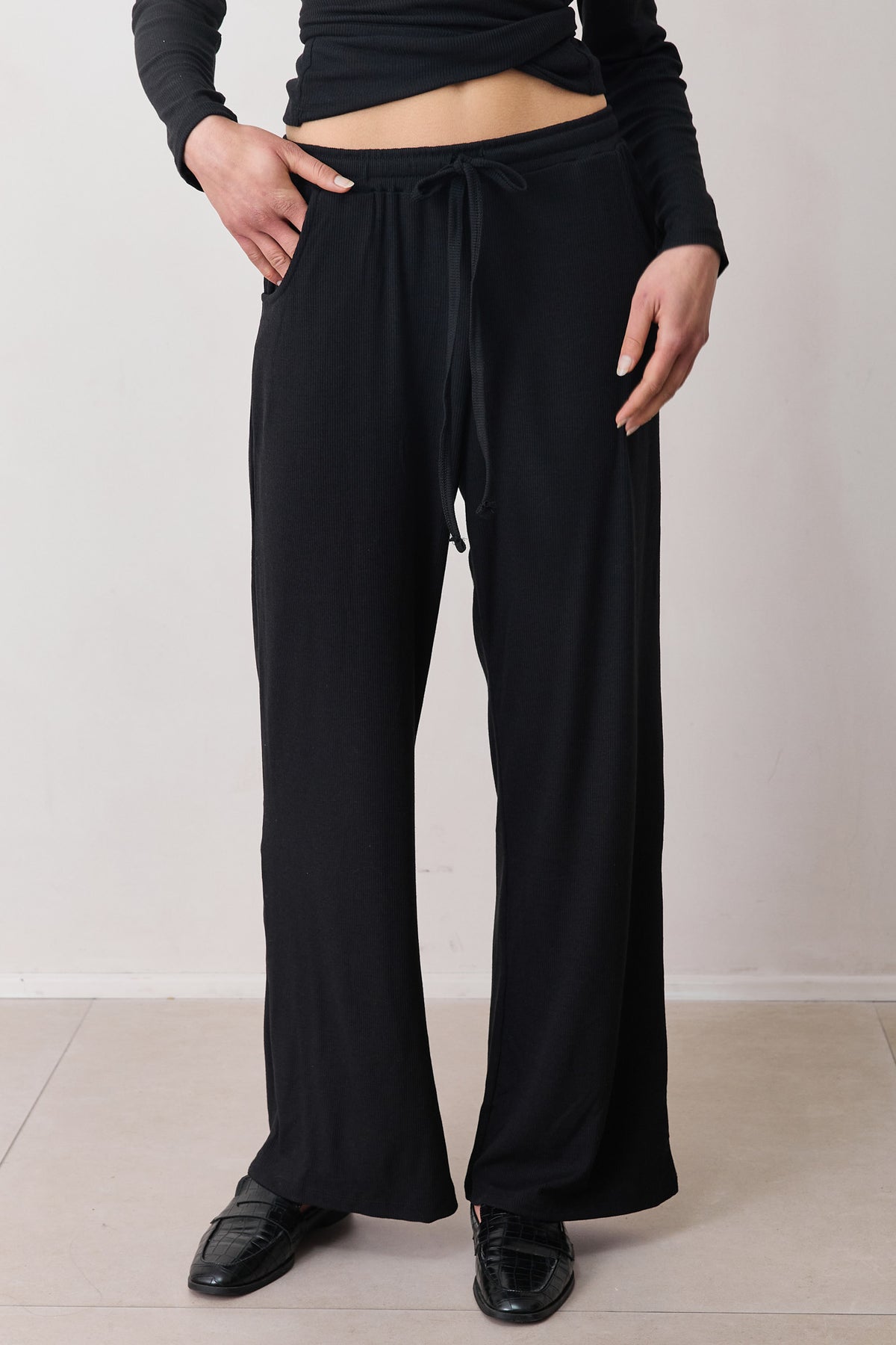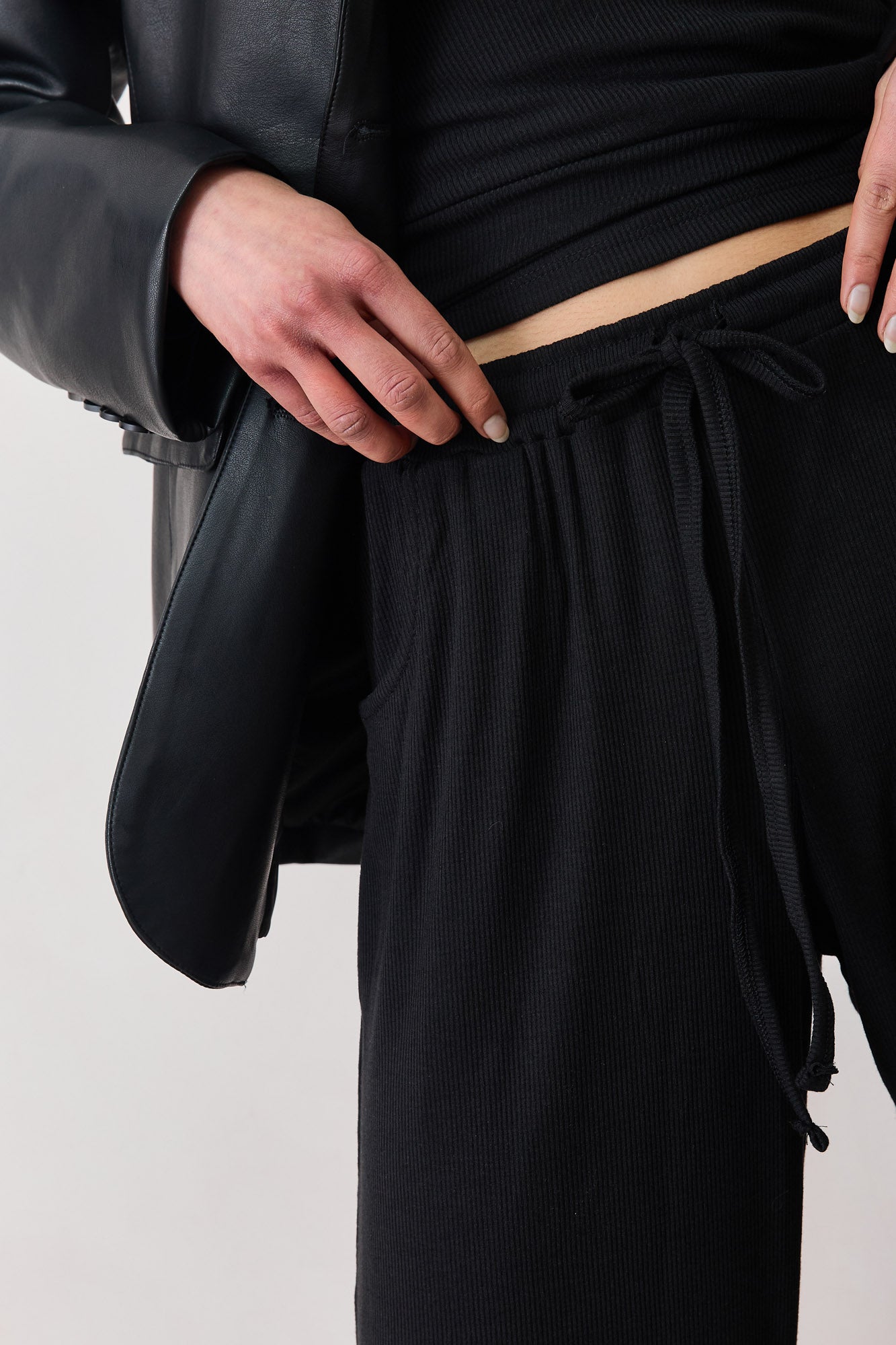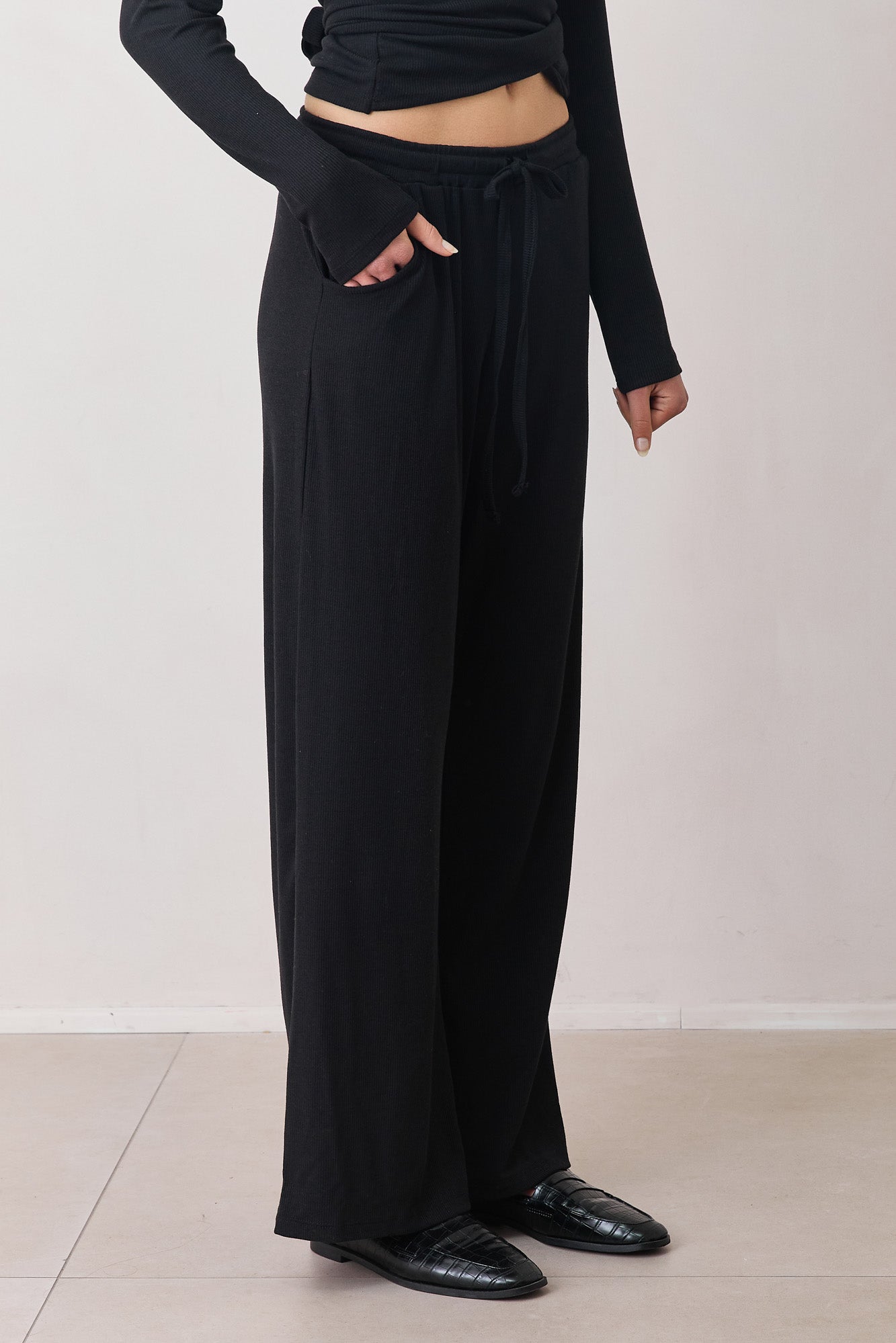 מכנסי ריב ארוכים בגזרה ישרה עם גומי במותן, כיסים וקשירה