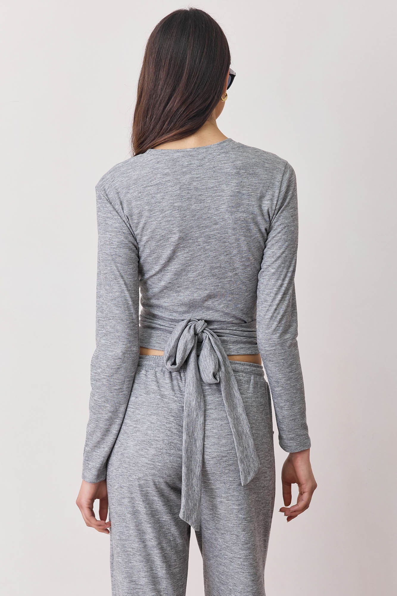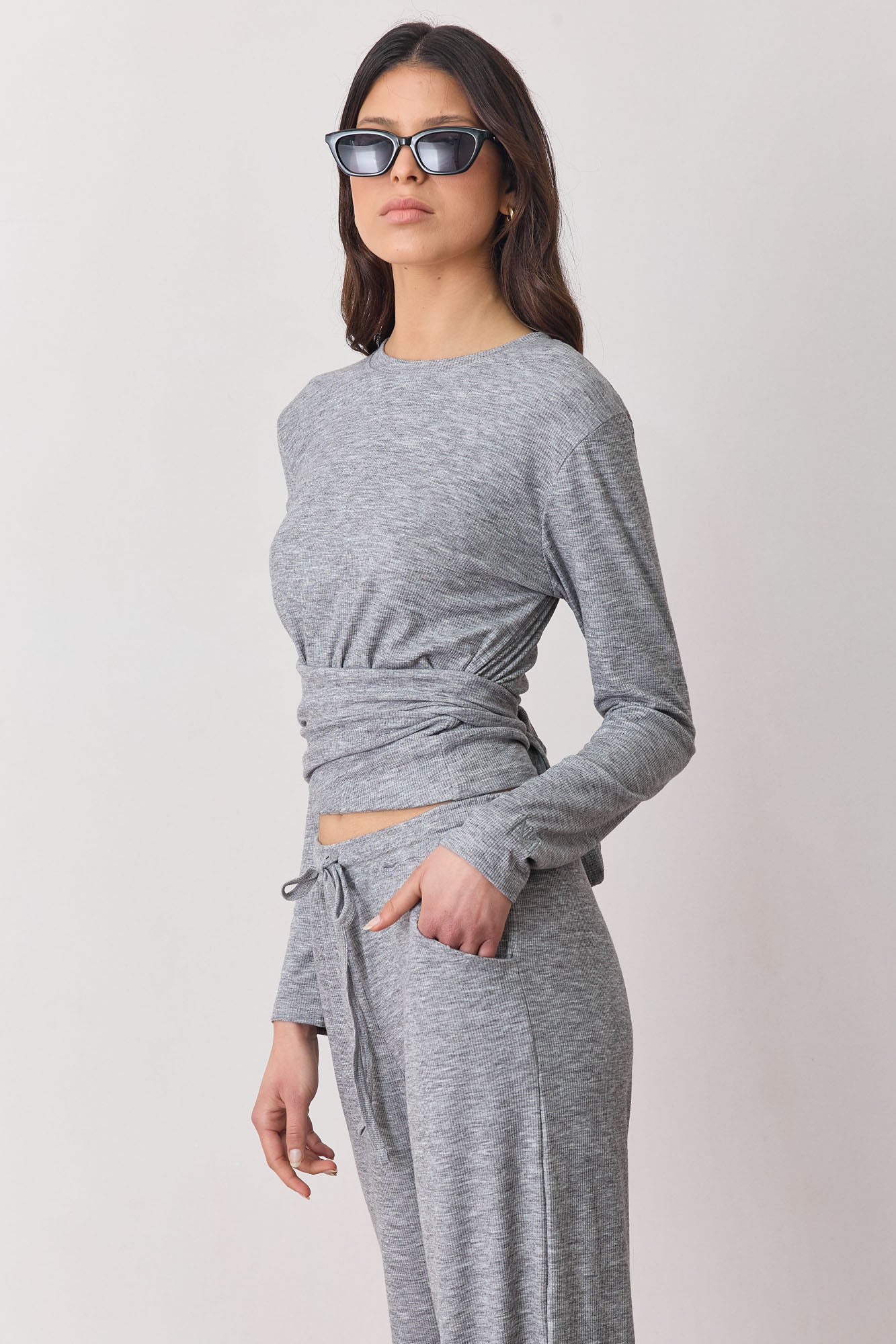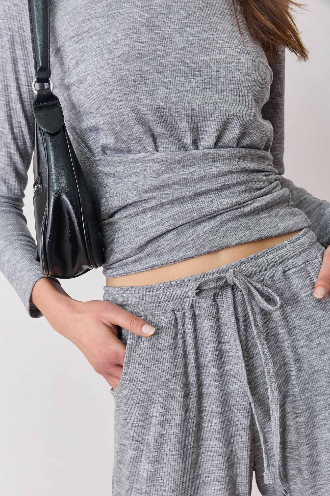 חולצה מבד ריב עם שרוולים ארוכים וחגורת קשירה במותן