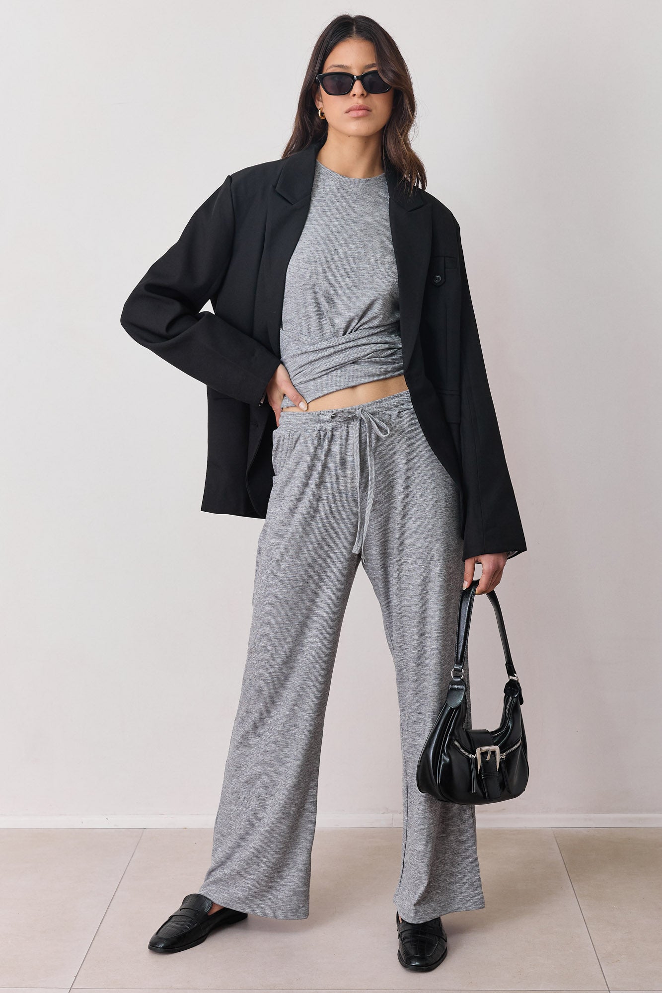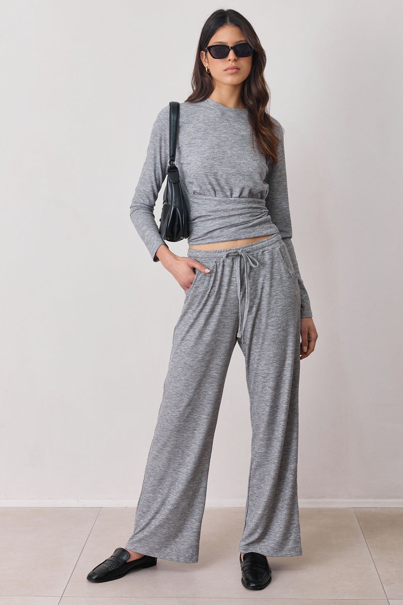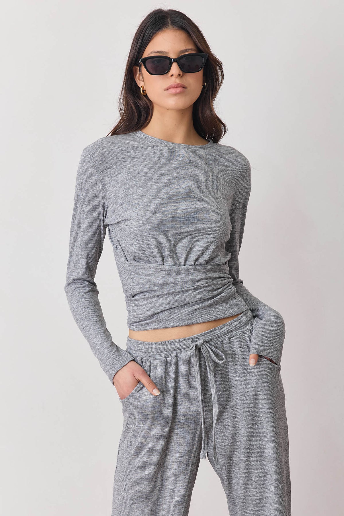 חולצה מבד ריב עם שרוולים ארוכים וחגורת קשירה במותן