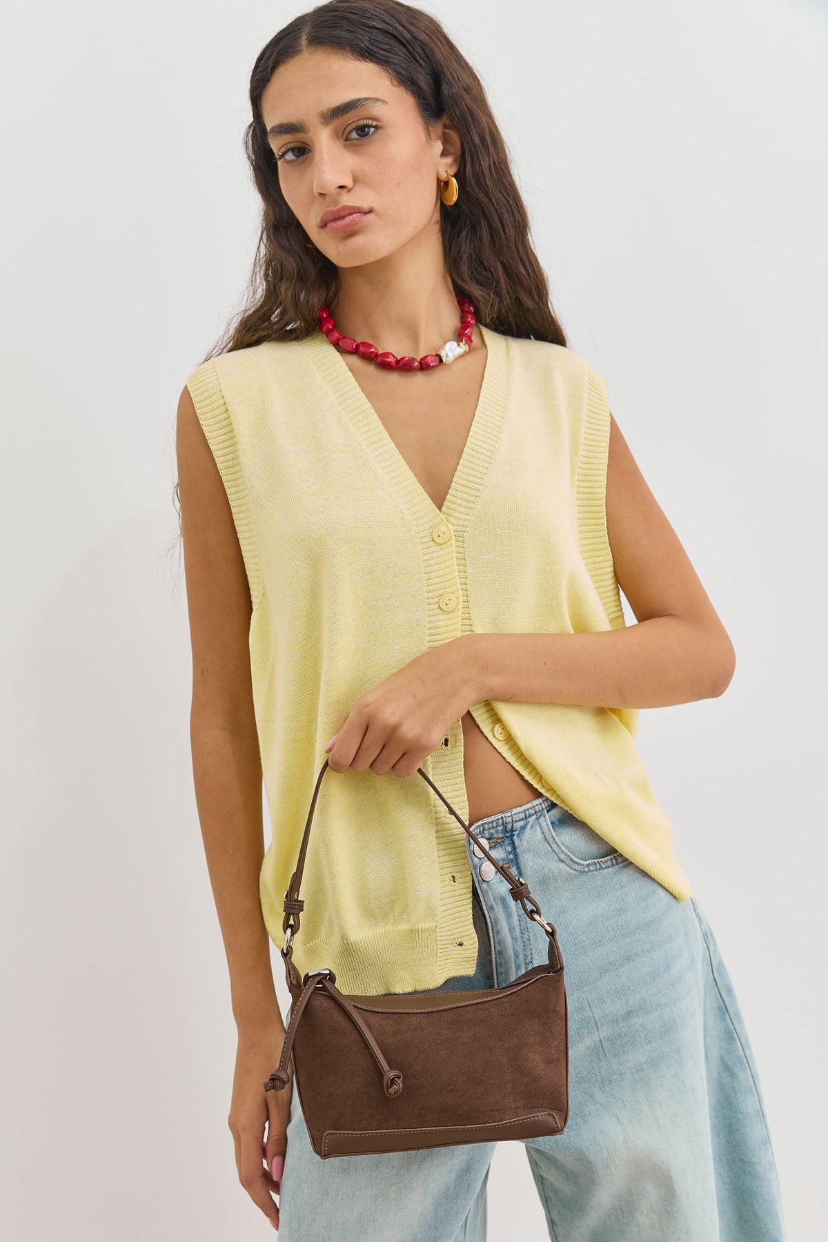 תיק כתף דמוי זמש ורצועות דקות לתיק תא אחסון יחיד וסגירת רוכסן