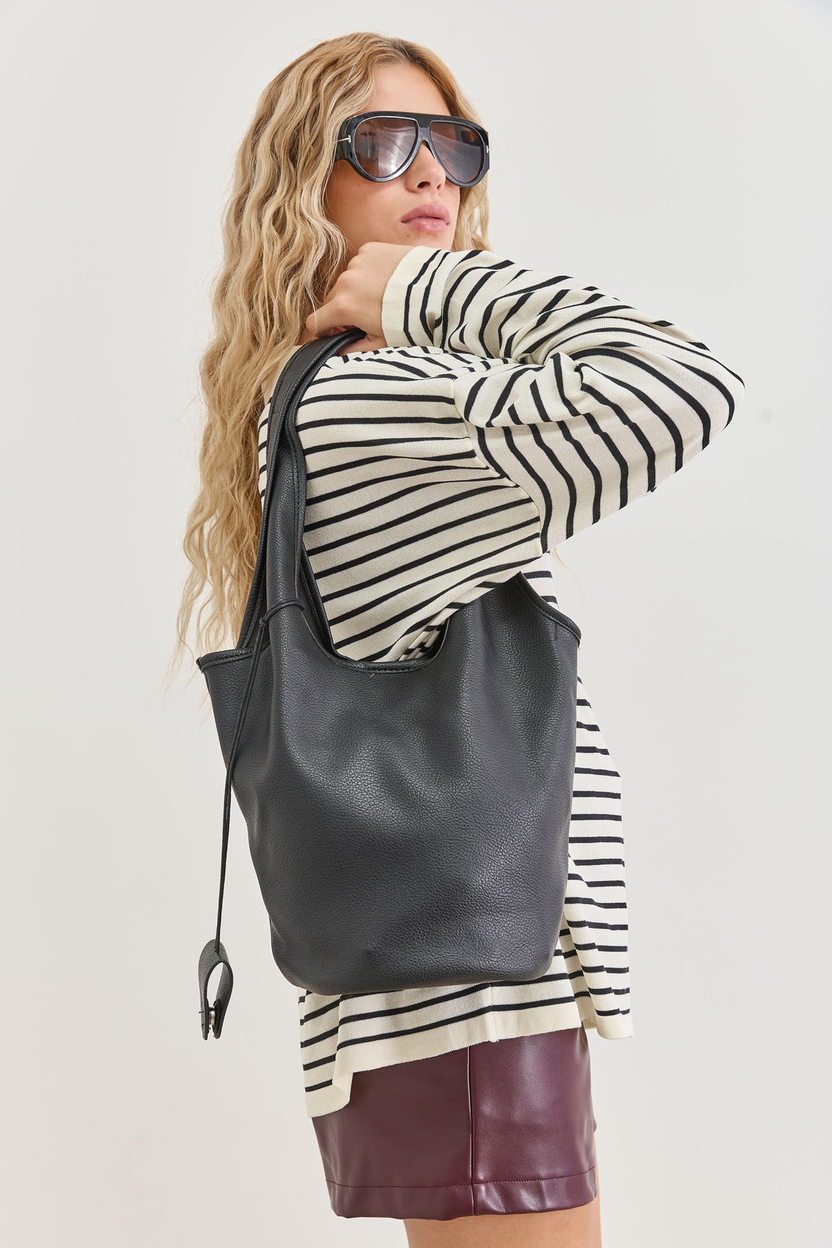 תיק כתף דמוי עור עם רצועה עבה ותא אחסון פנימי בסגירת כפתור מגנטי