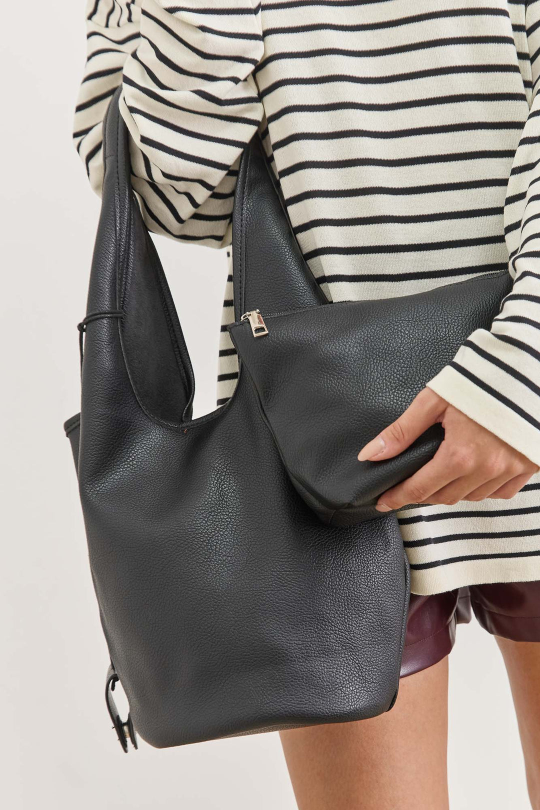 תיק זמש מייסי בשילוב פרנזים |שחור