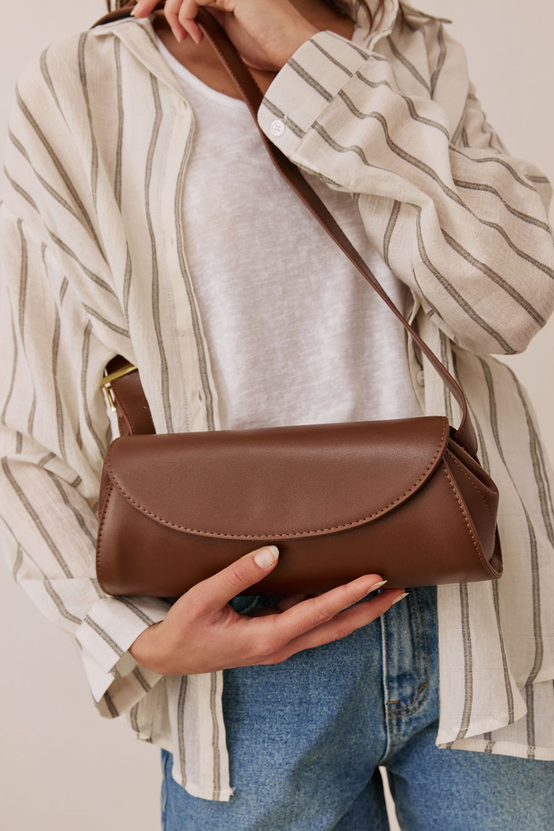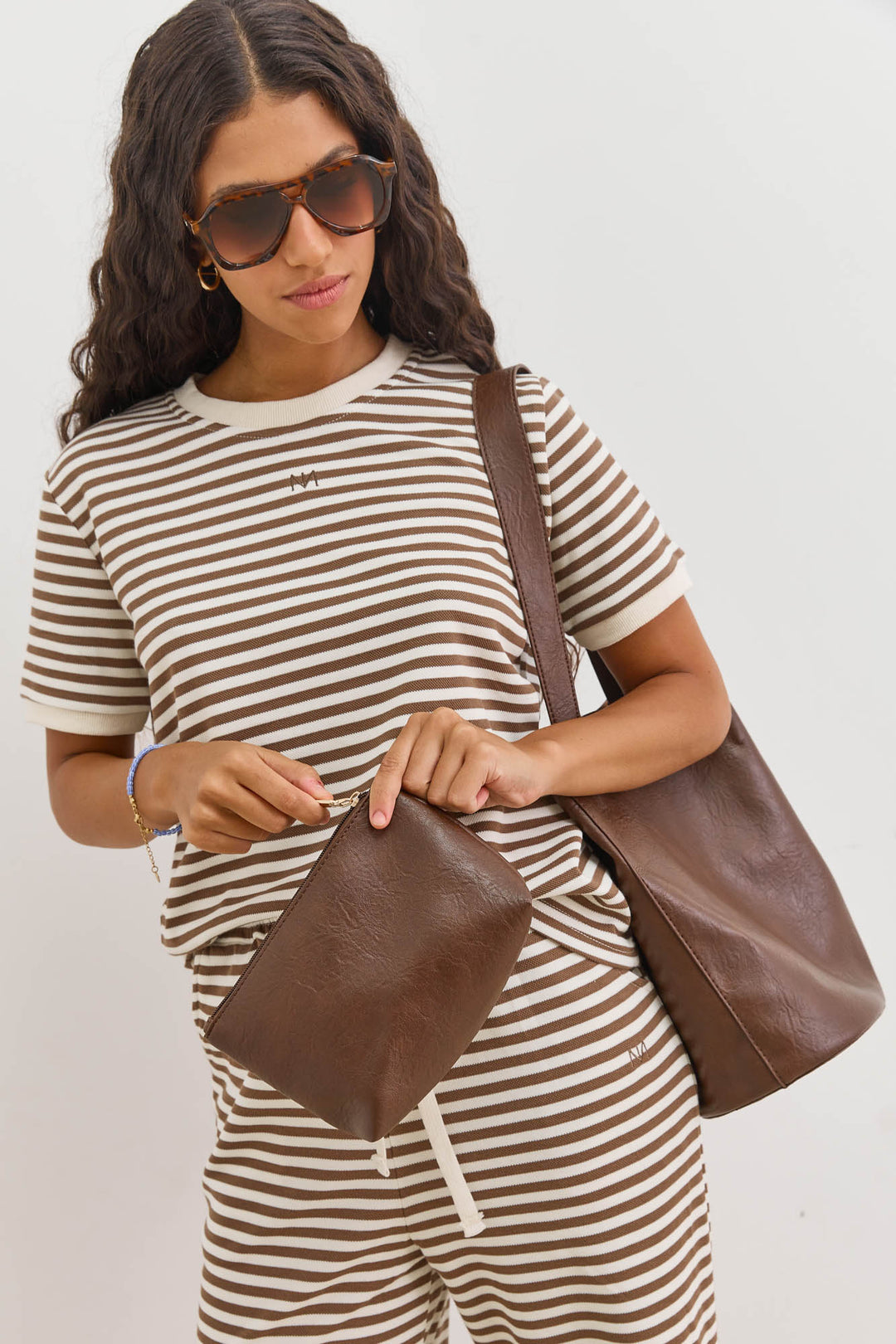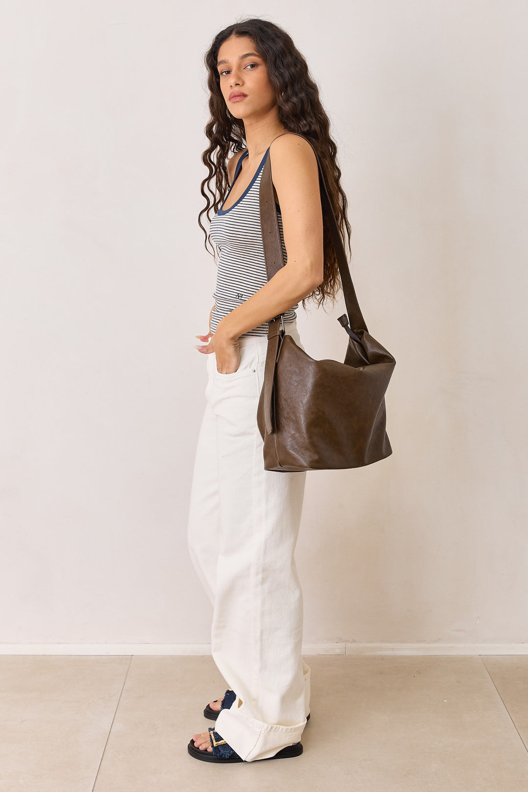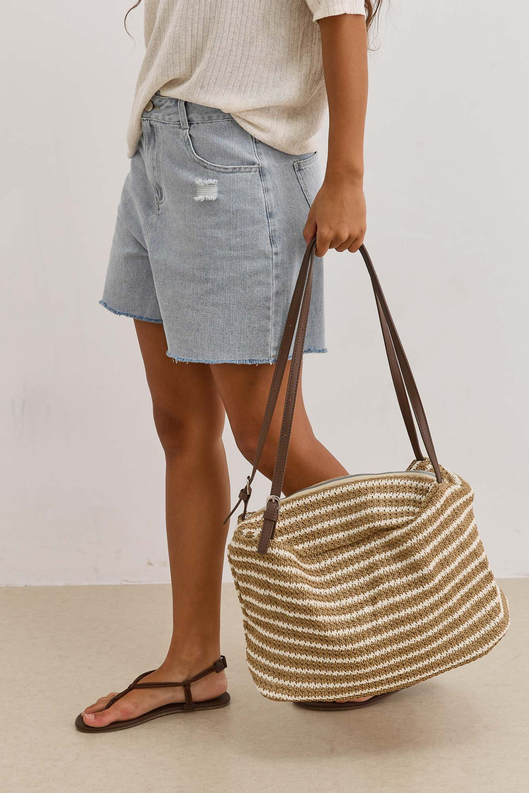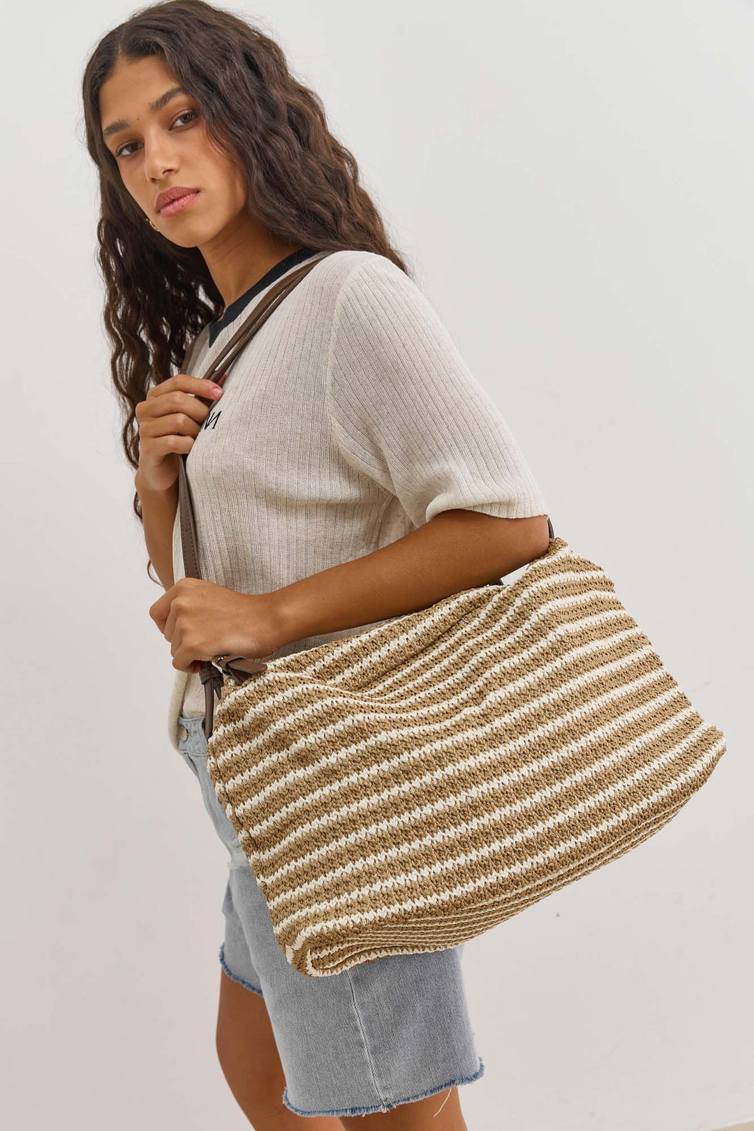 תיק קלוע סנדי סטרייפס | בז'/חום