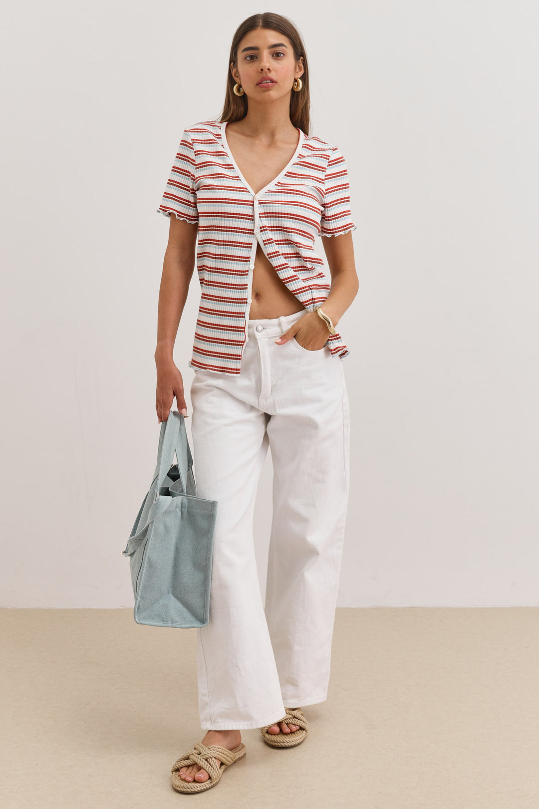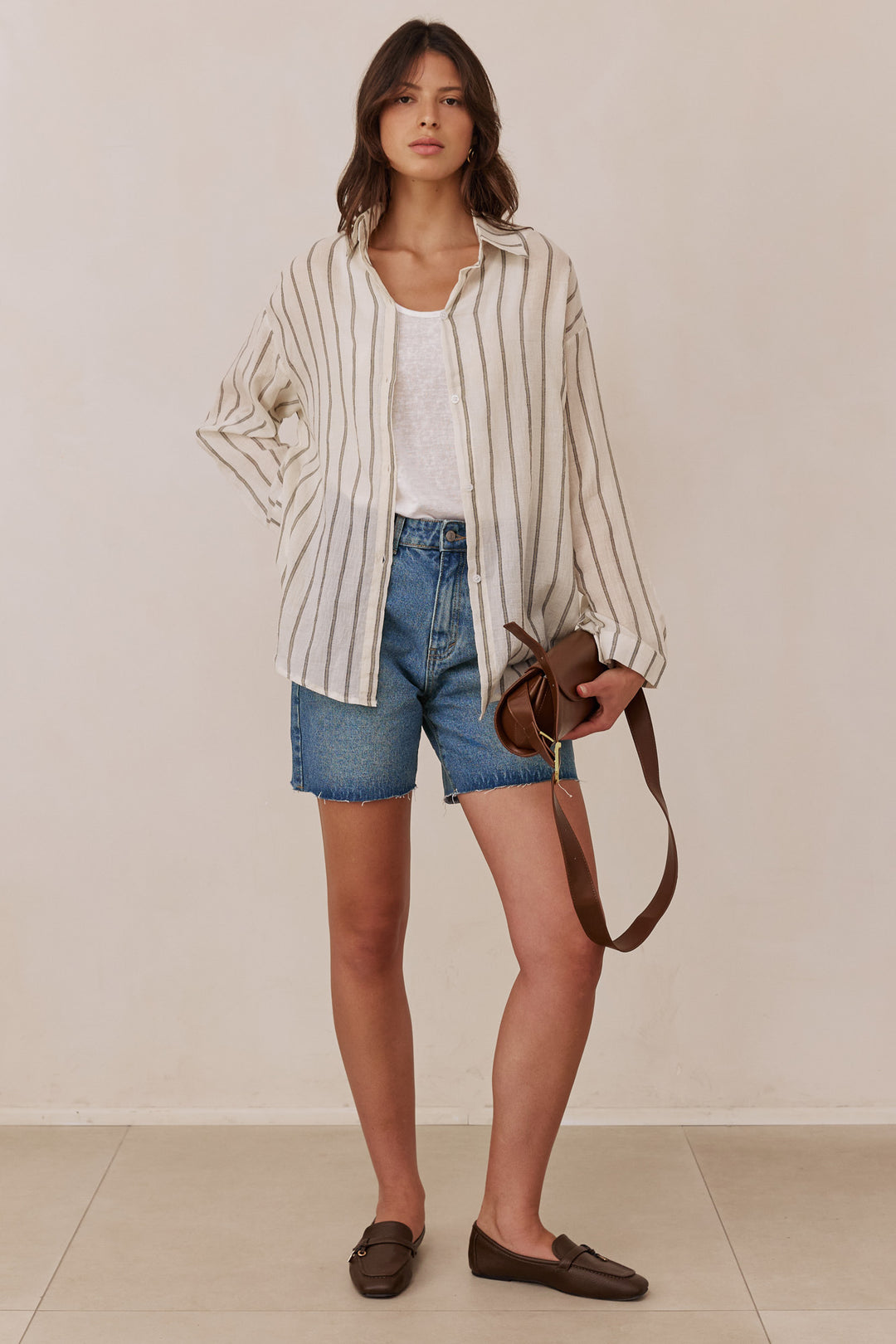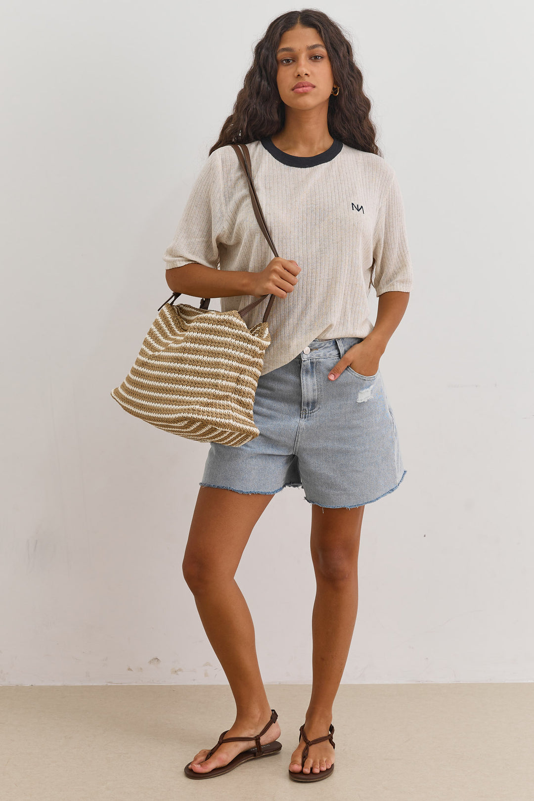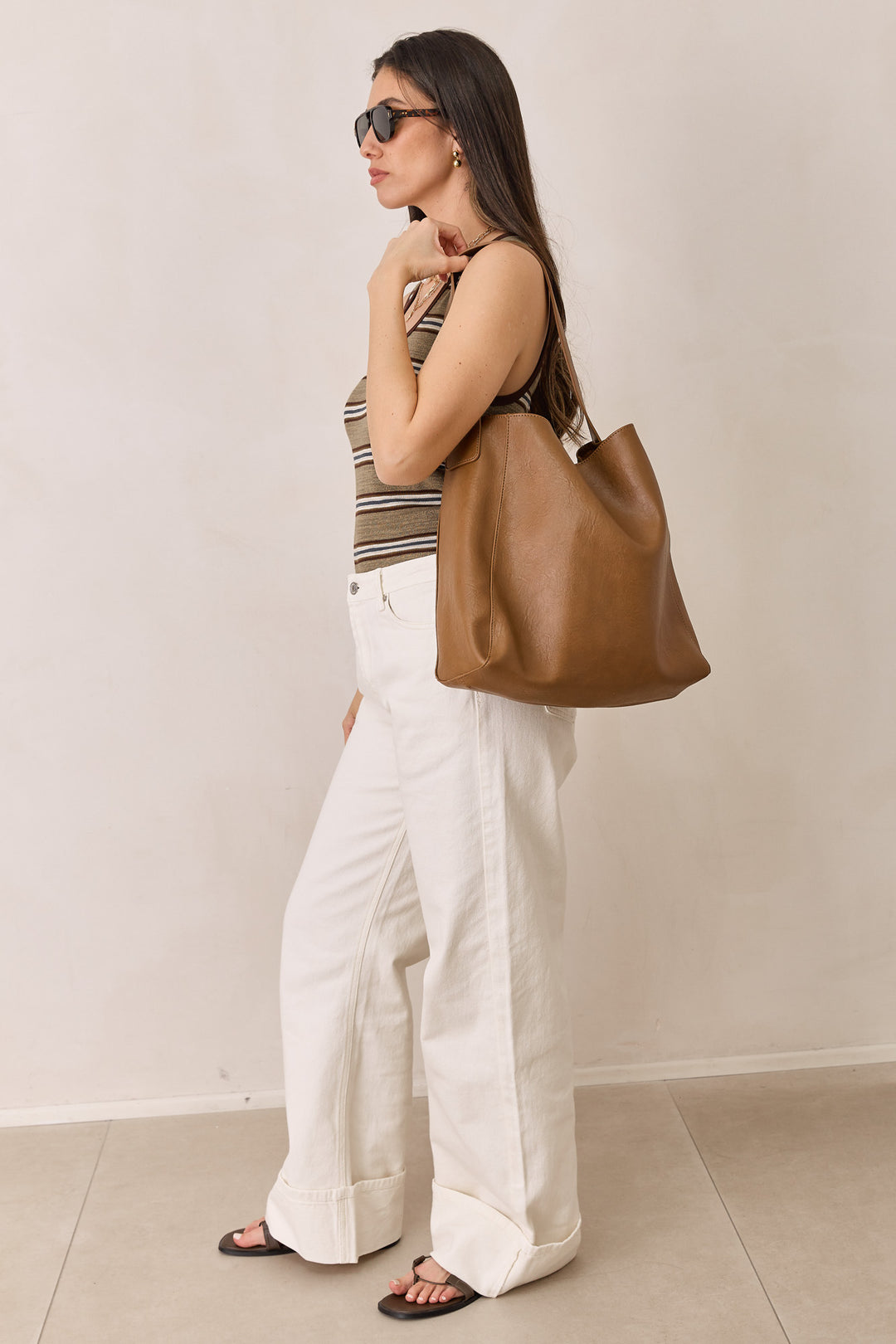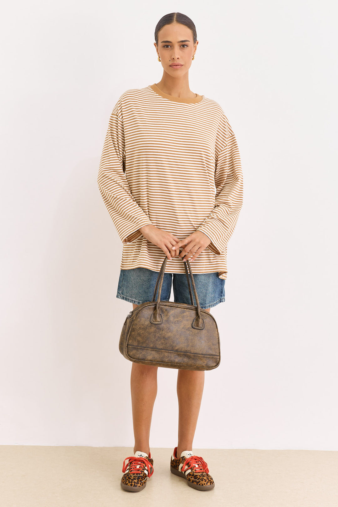 תיק קלוע סנדי סטרייפס | בז'/חום