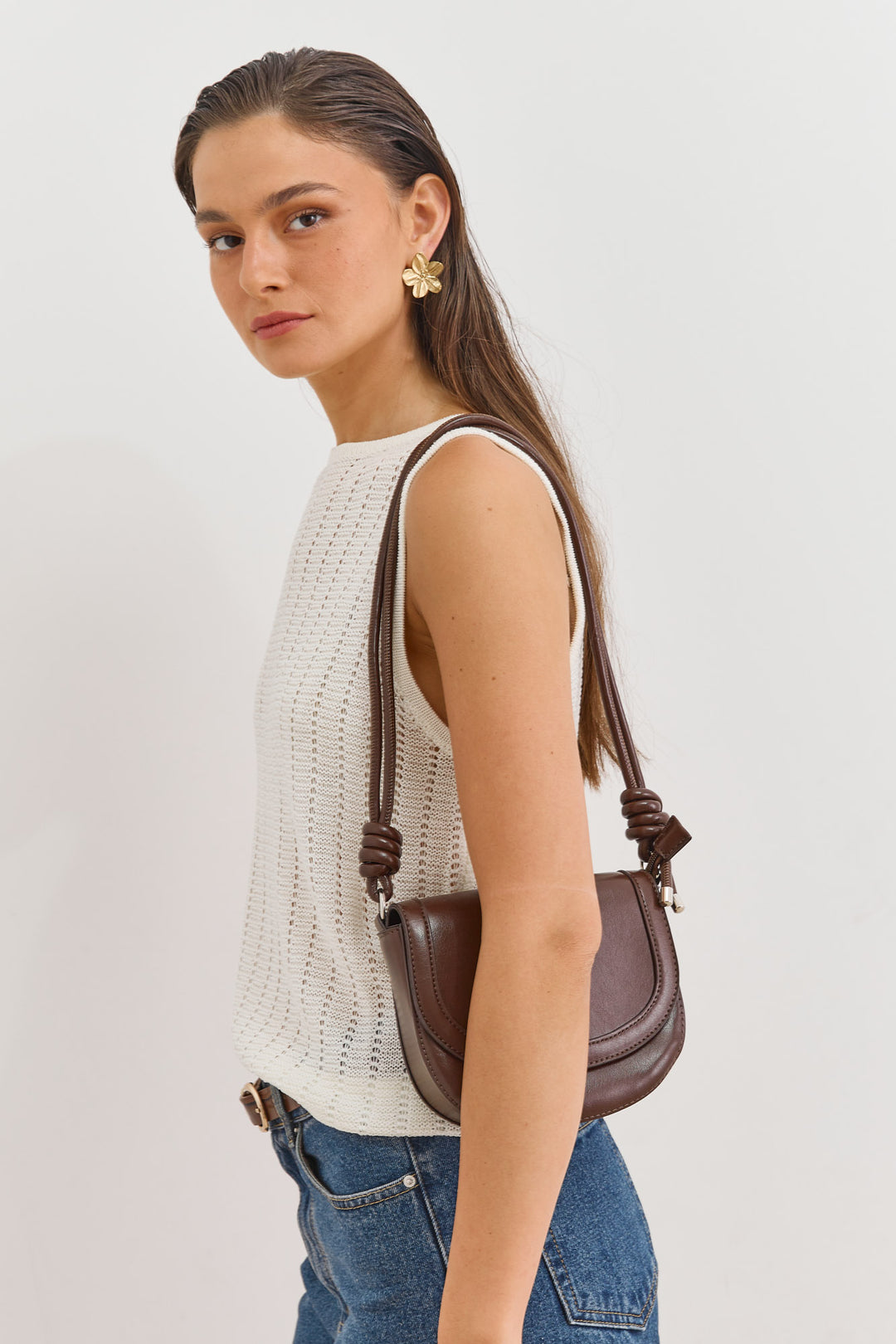 תיק כתף דונה עם כיסים | חום