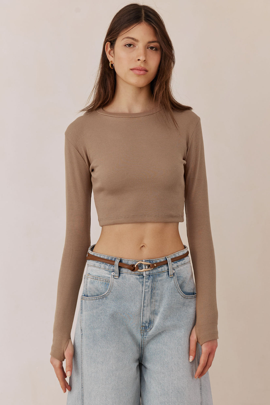 חגורת מתיו דקה תיפורים בולטים | מוקה