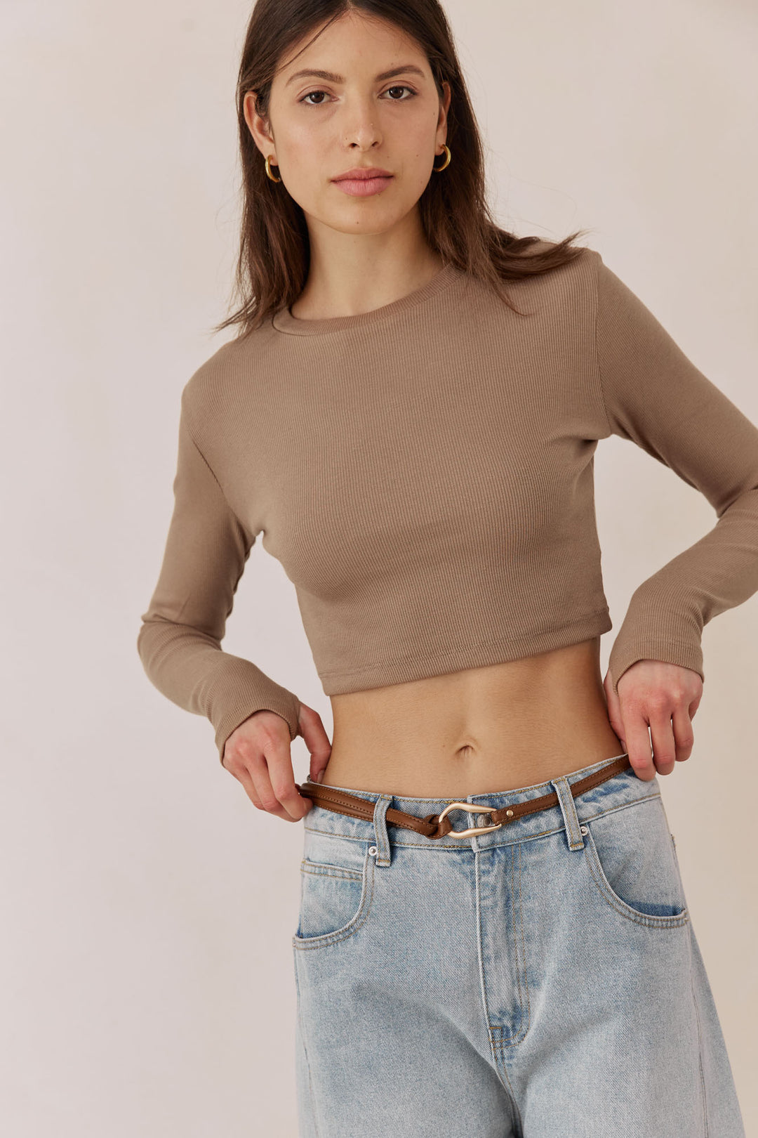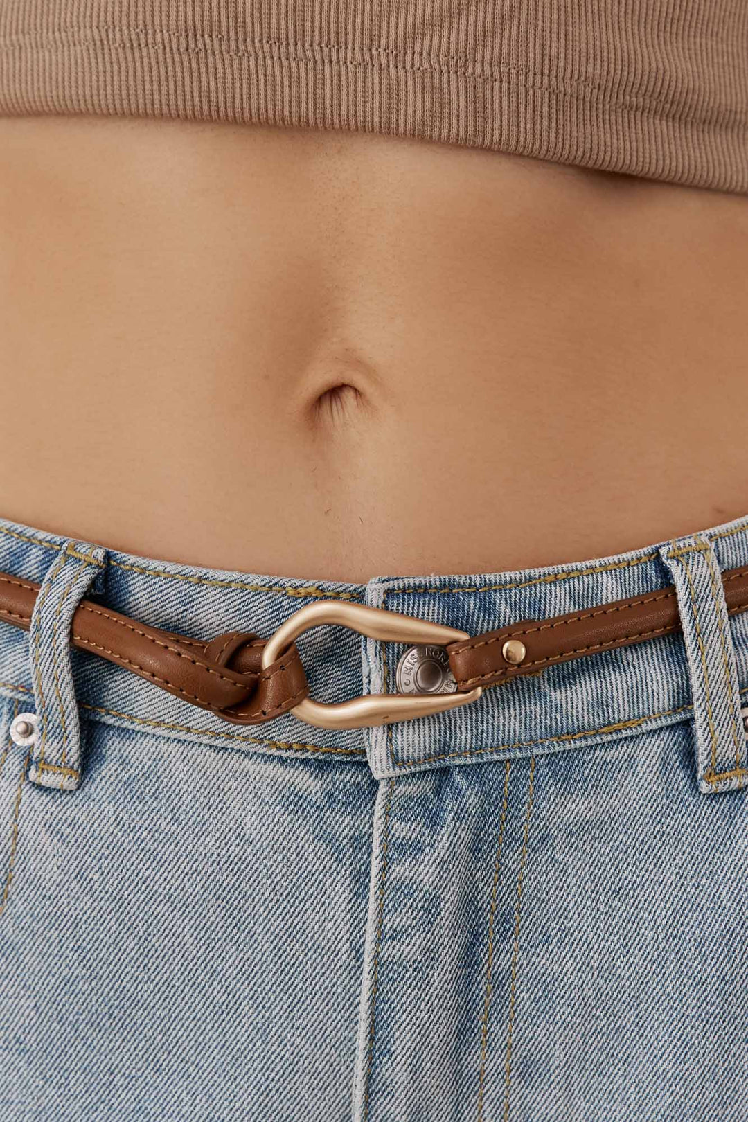 חגורה דקה אריקה בשילוב אבזם | חום כהה