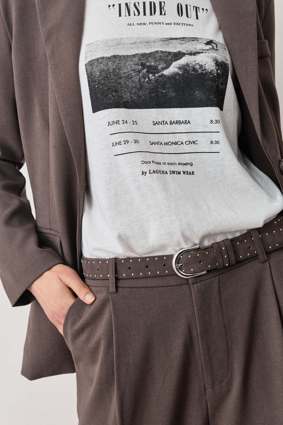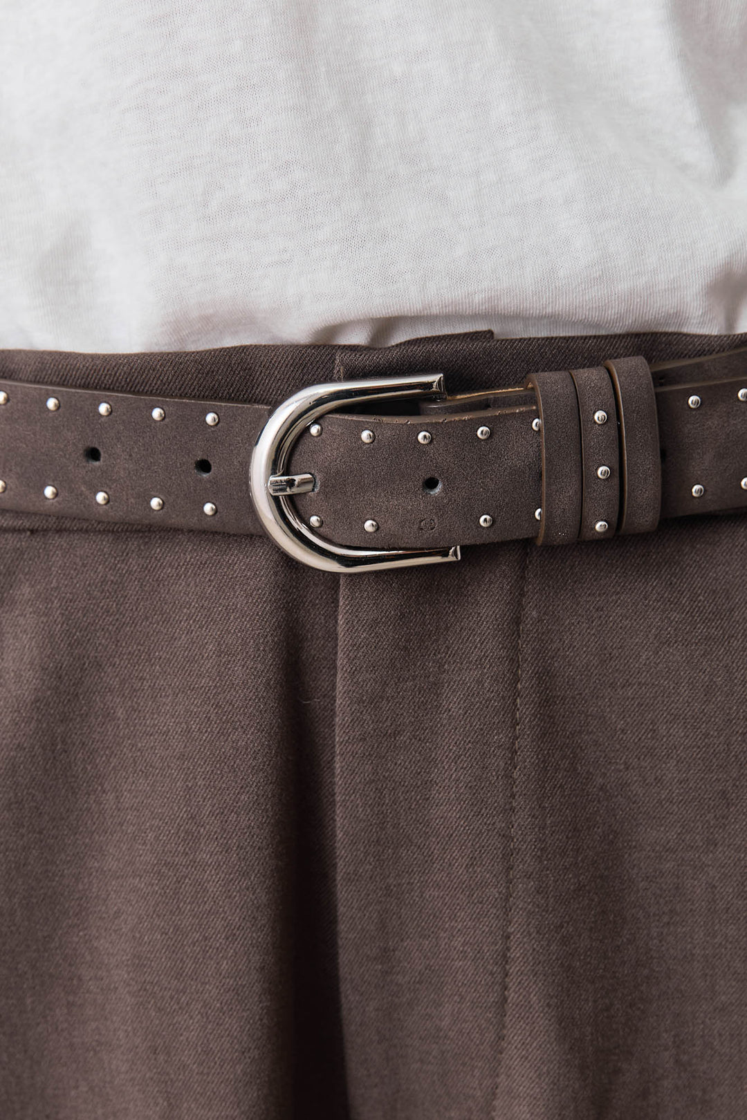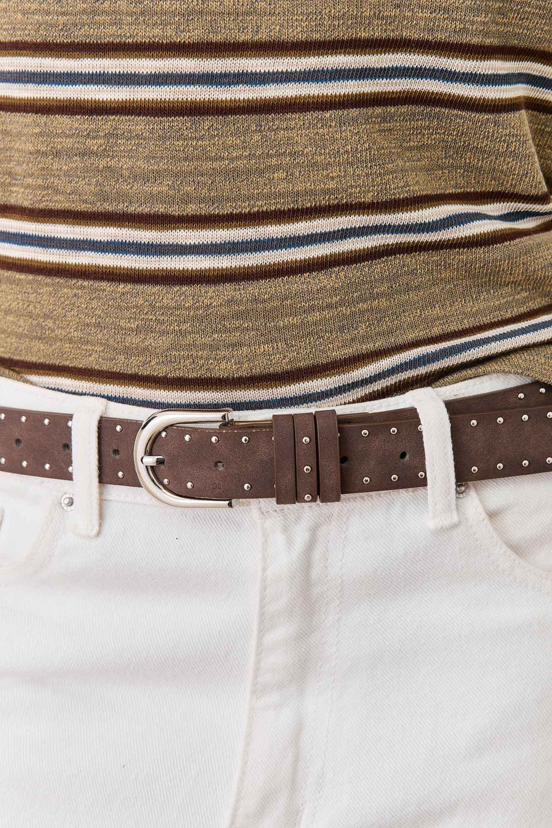 חגורת זמש ניקולס ניטים כסופים | חום כהה