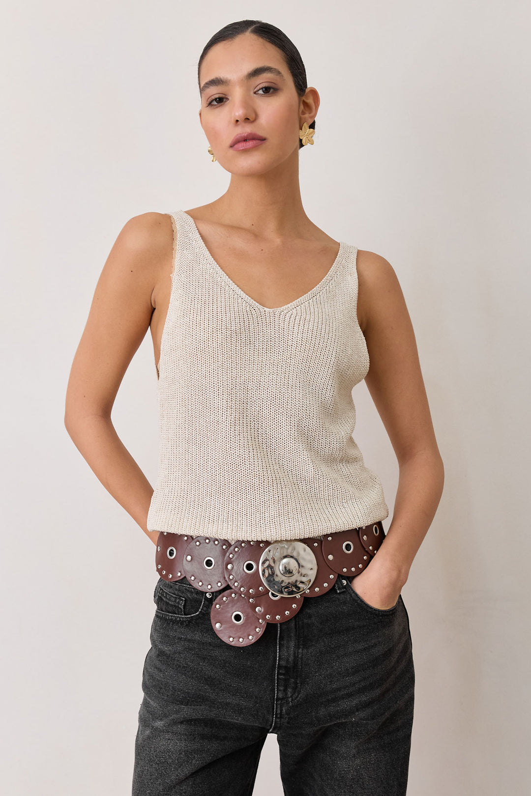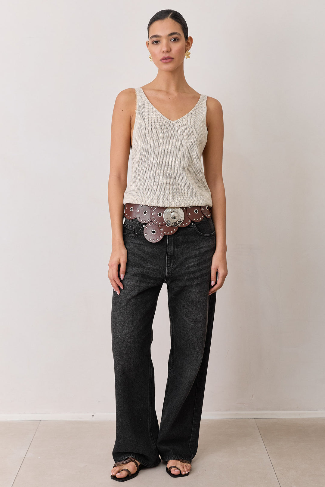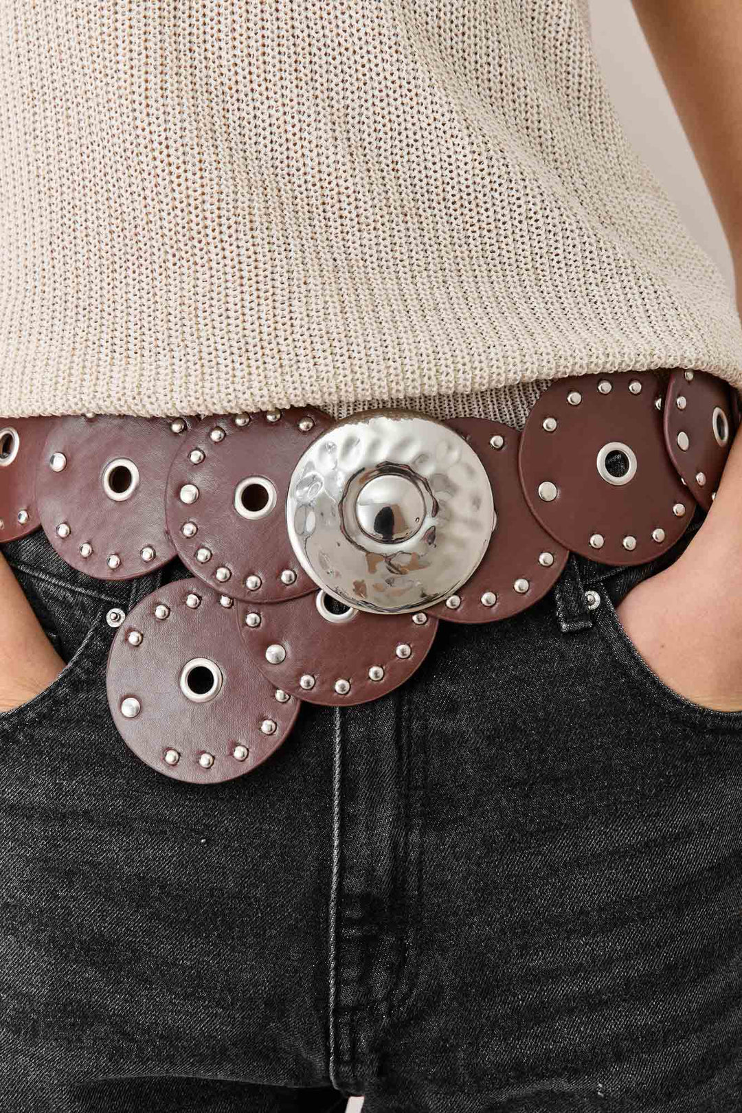 חגורת בוהו דמוי עור עם ניטים | חום כהה