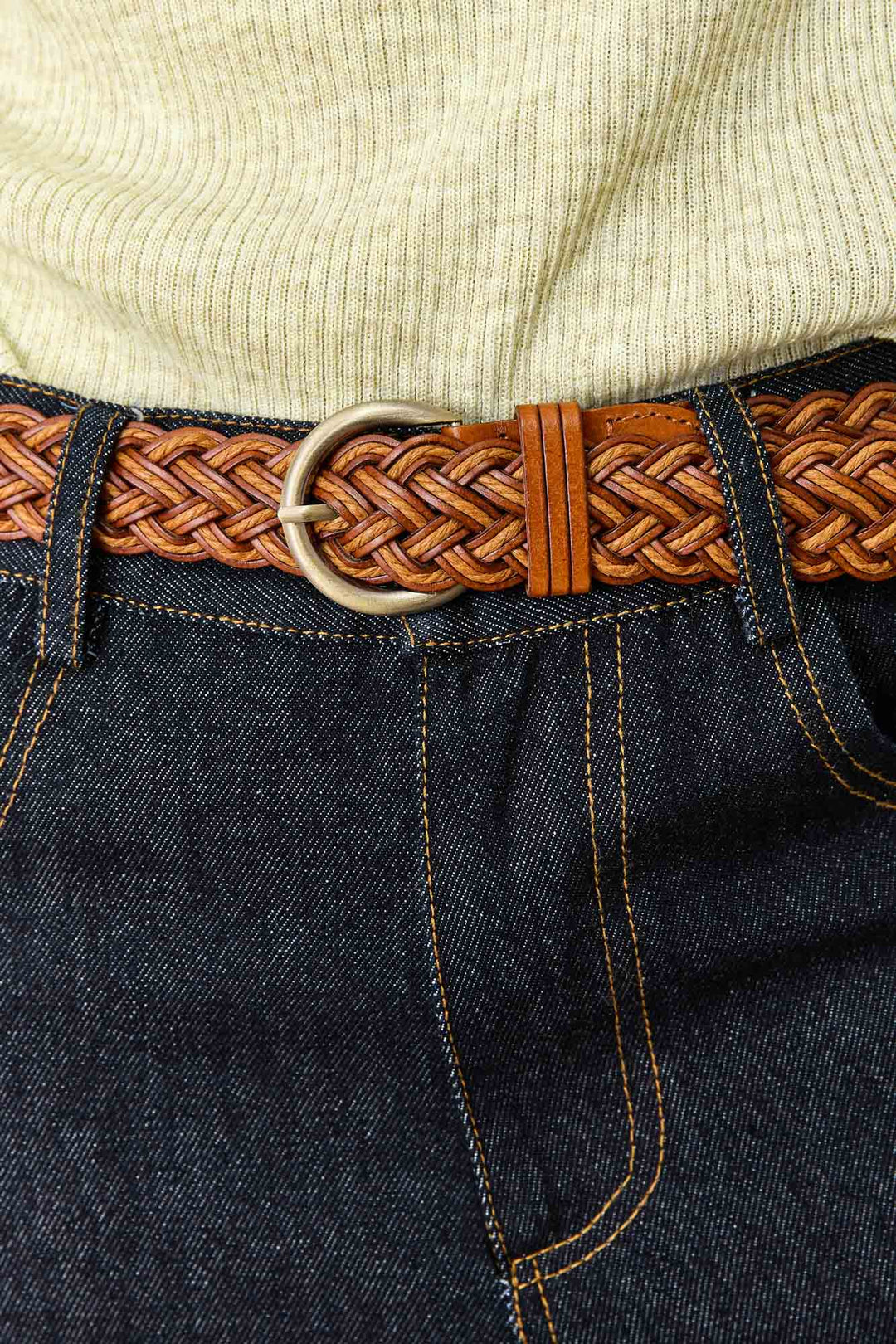 חגורה קלועה ארי בשילוב אבזם כסוף | חום