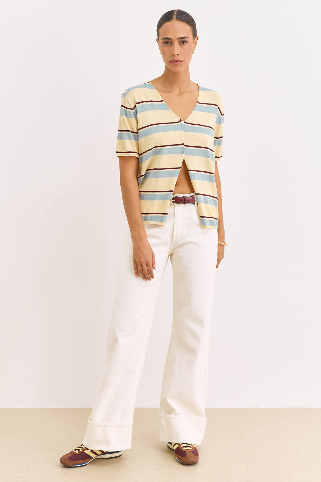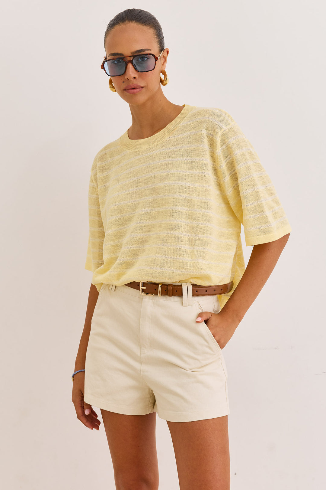 בלייזר מינדי סטרייפס בשילוב צעיף