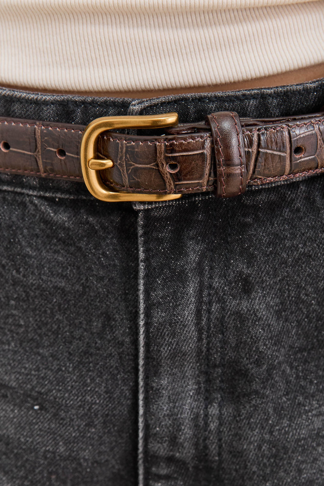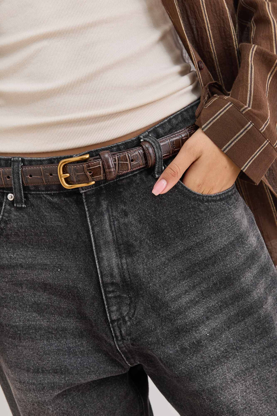 חגורת מרתה טקסטורת קרוקו | חום כהה