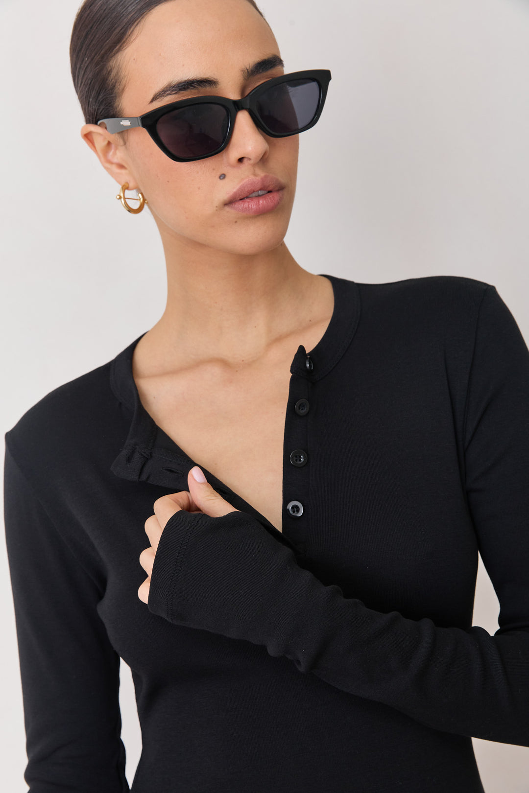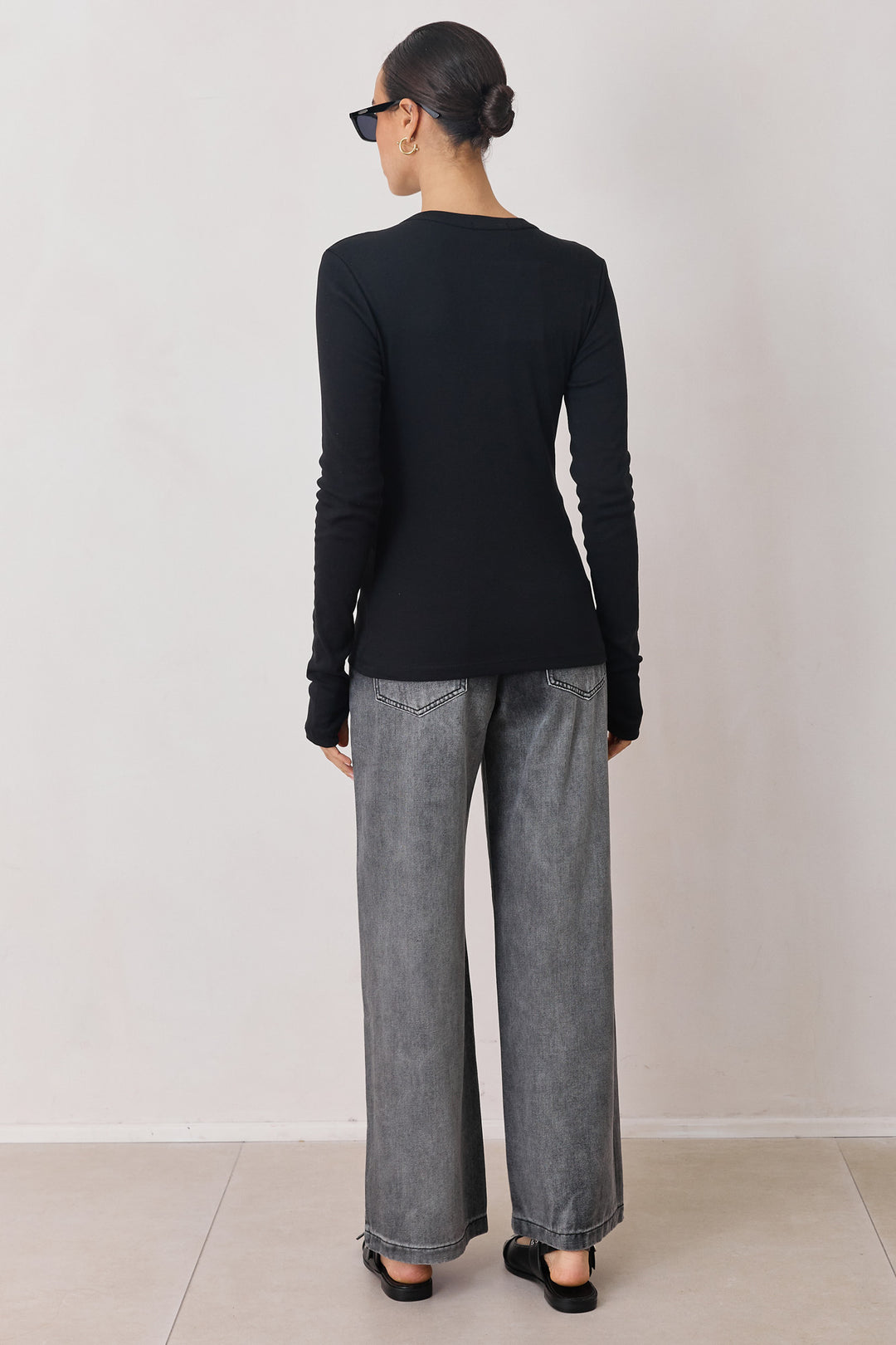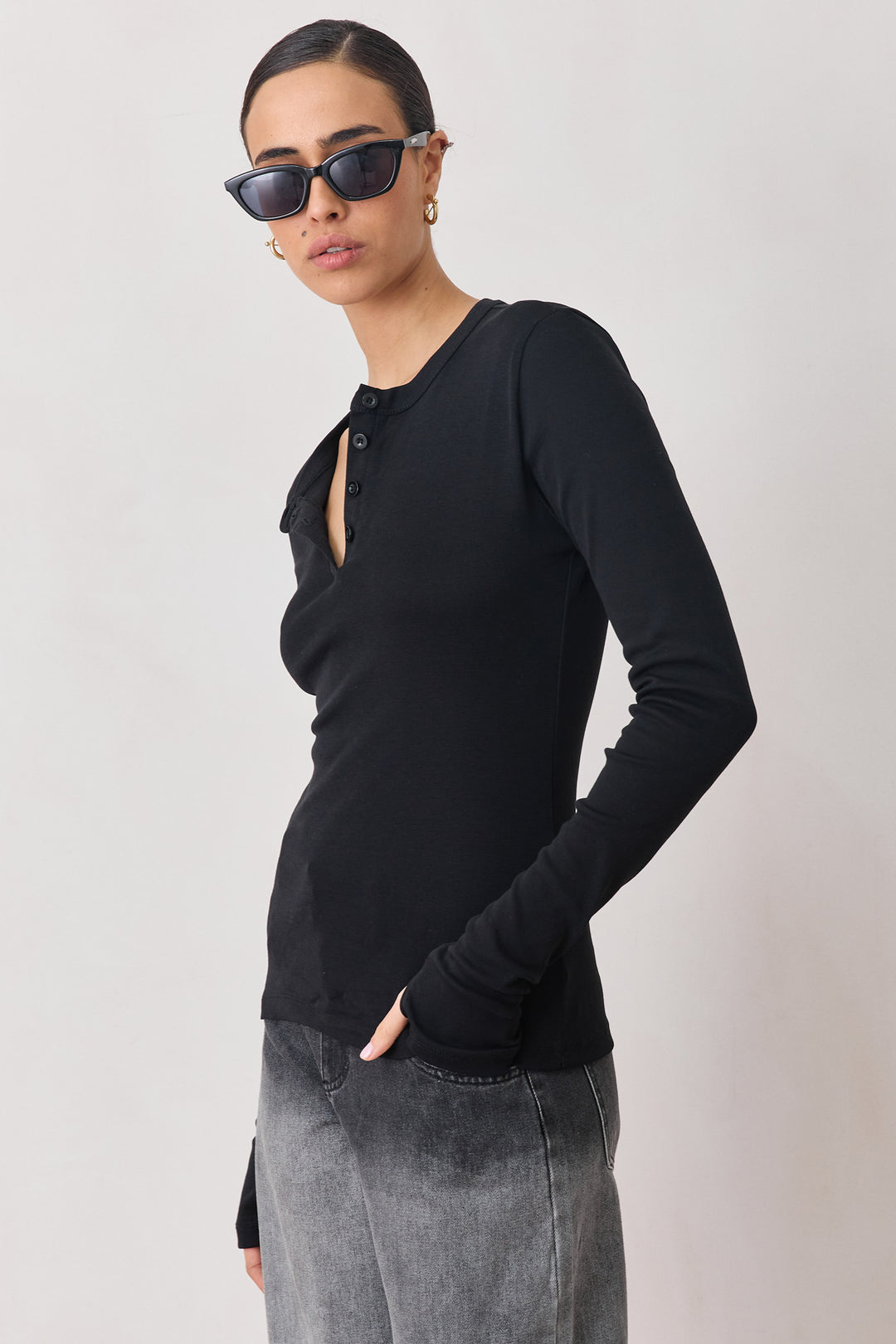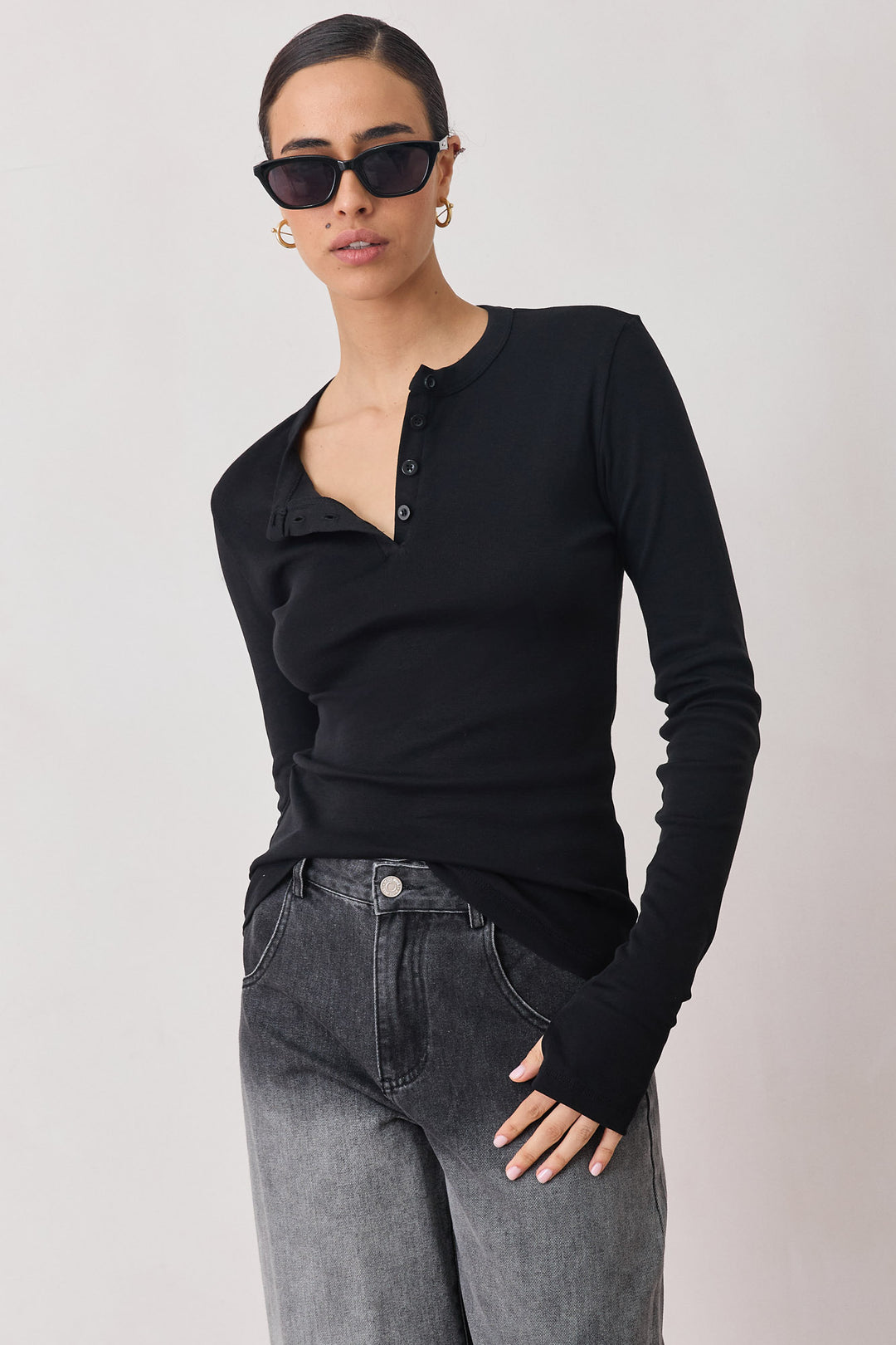 טי שירט בייסיק מדיסון שרוול ארוך | שחור