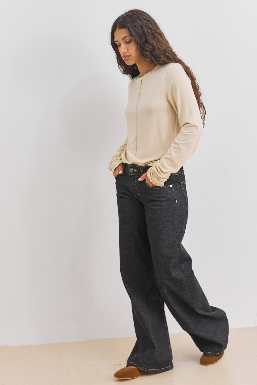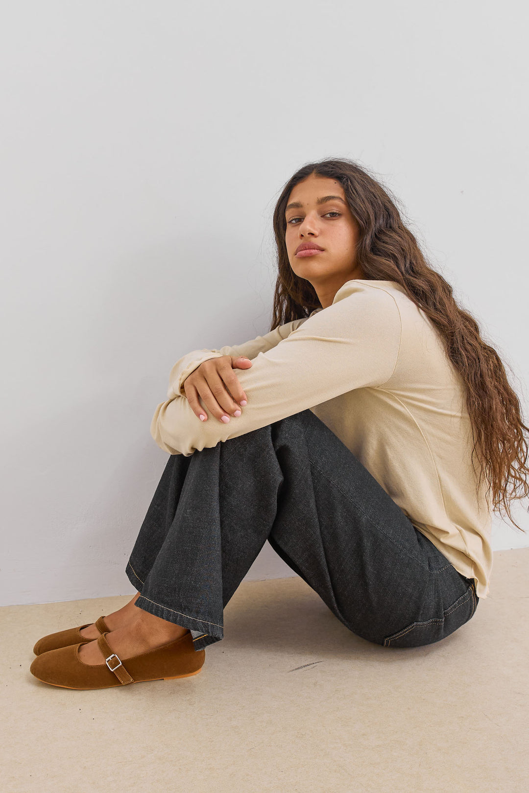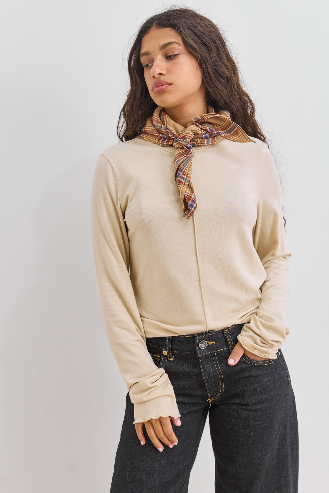 חולצת בייסיק לני שרוול כפפה | בז׳
