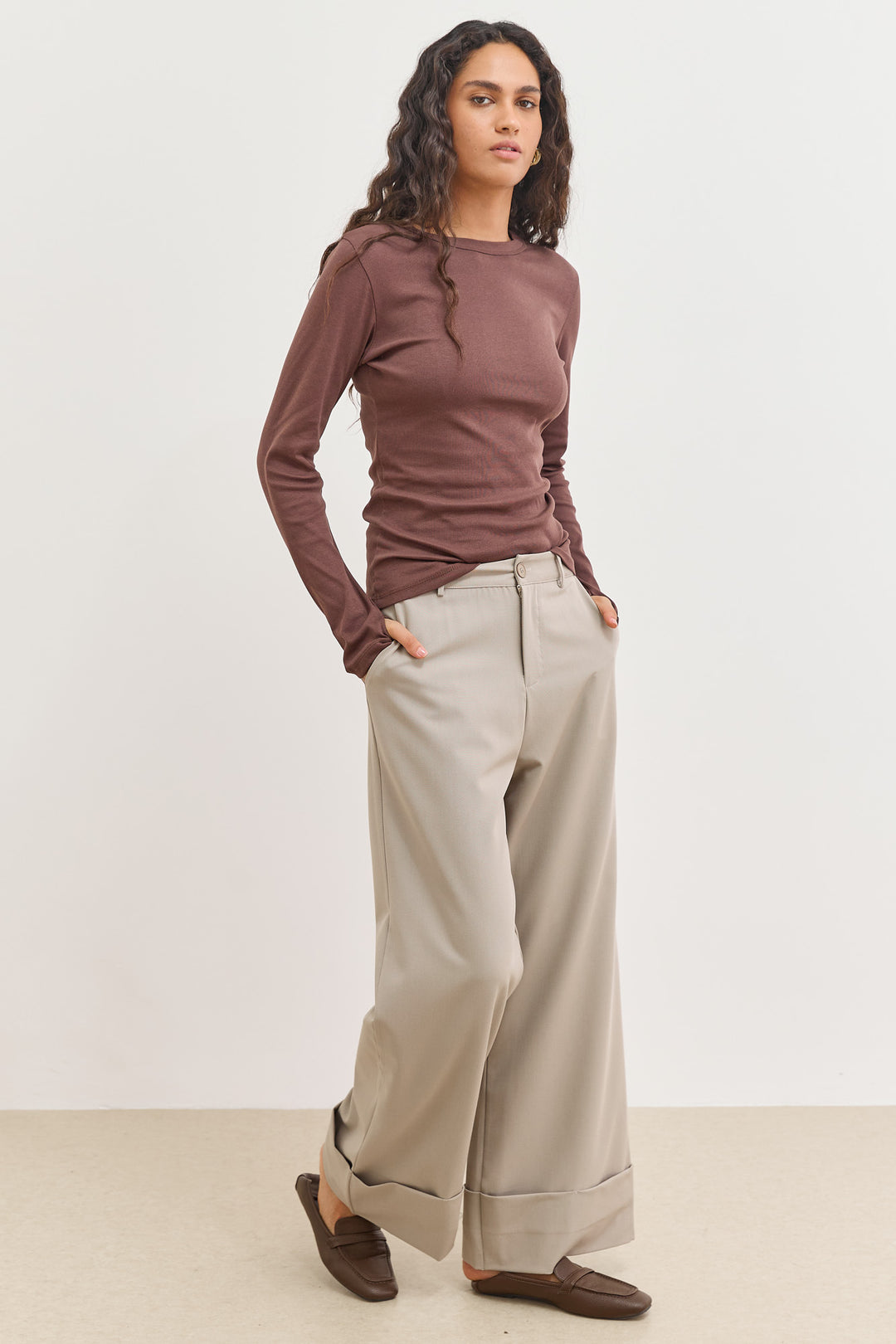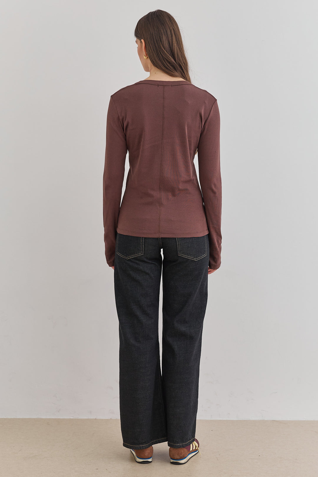טי שירט בייסיק מדיסון שרוול ארוך | חום