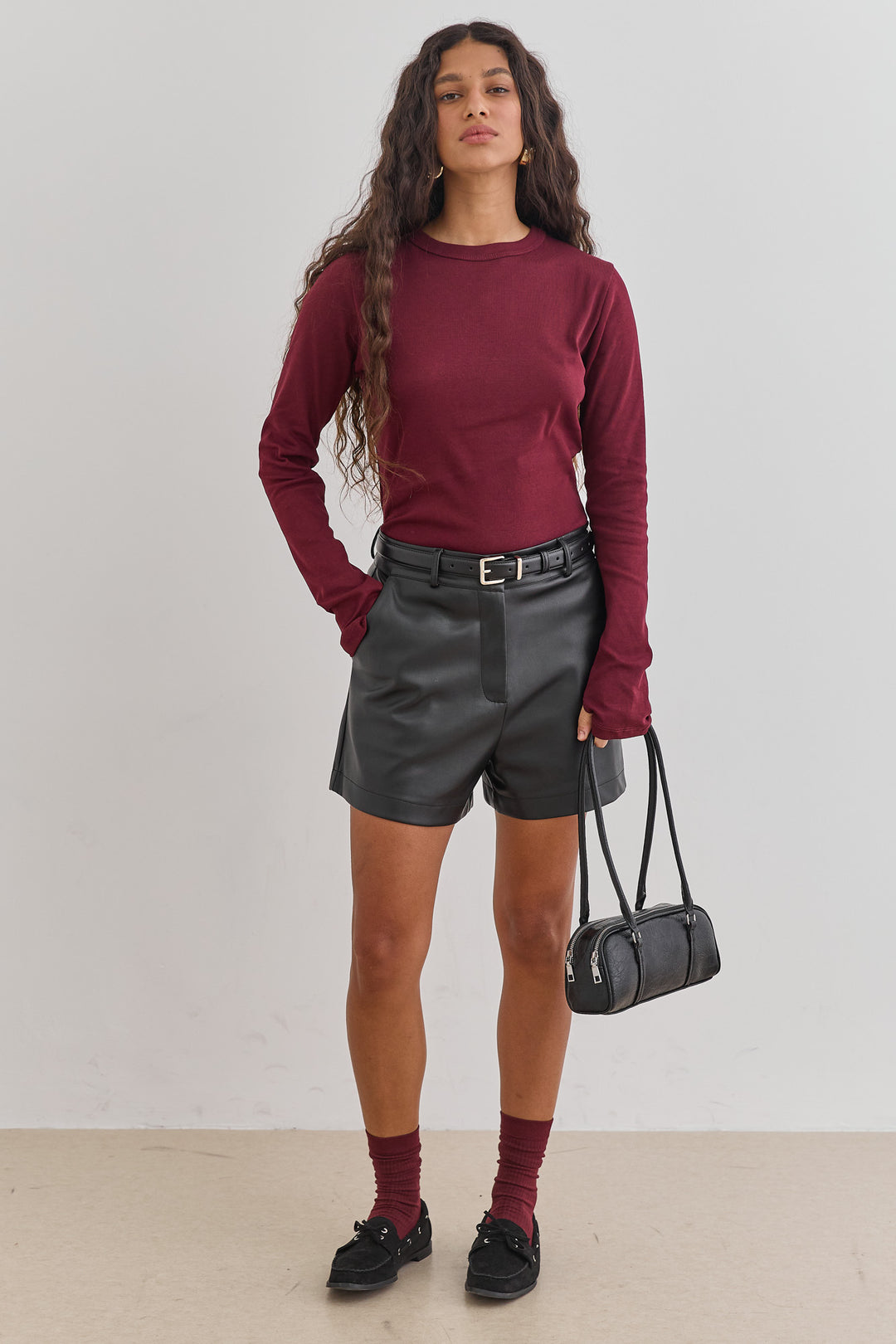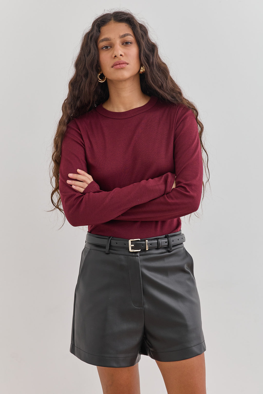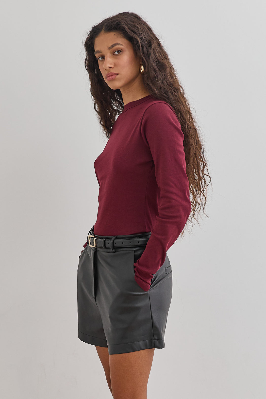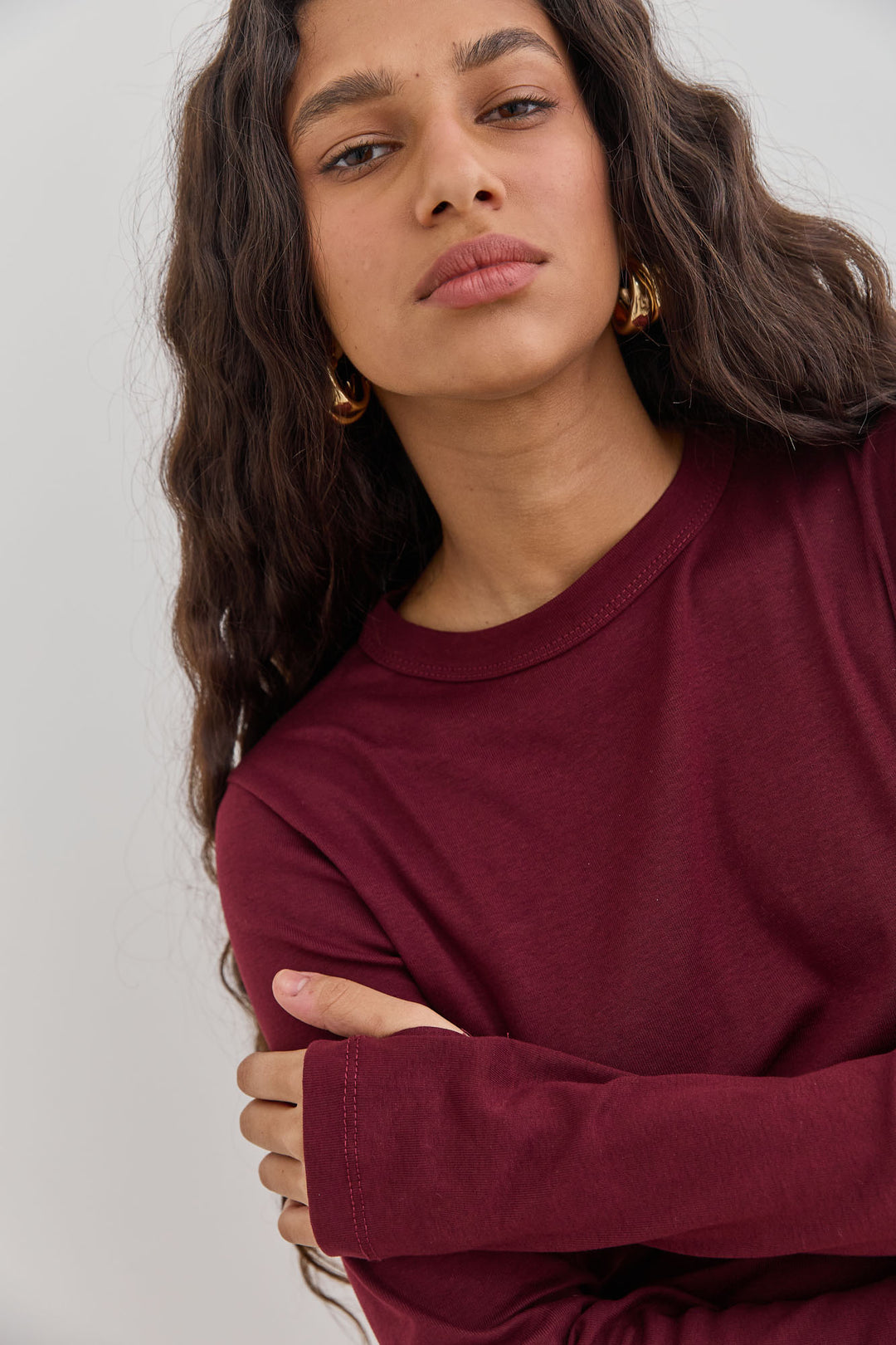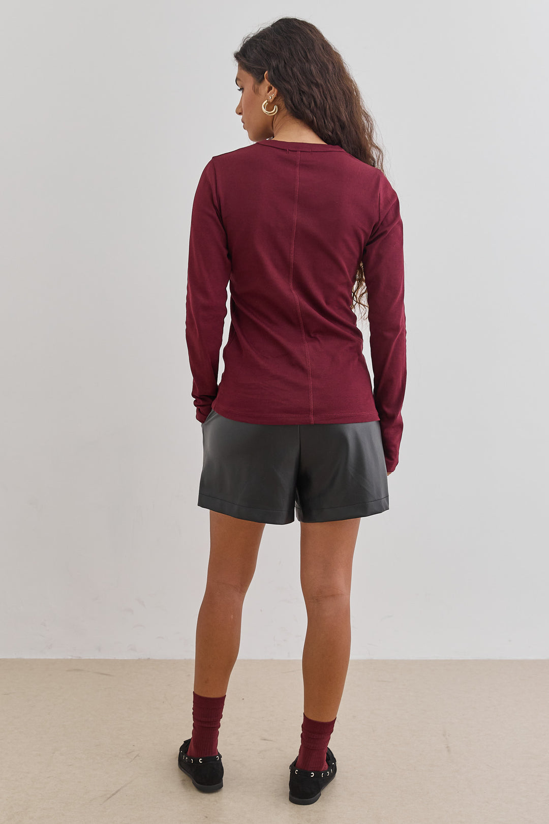 חולצת בייסיק לני שרוול כפפה | בורדו