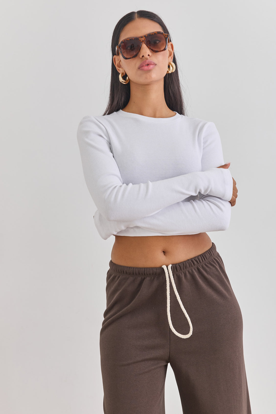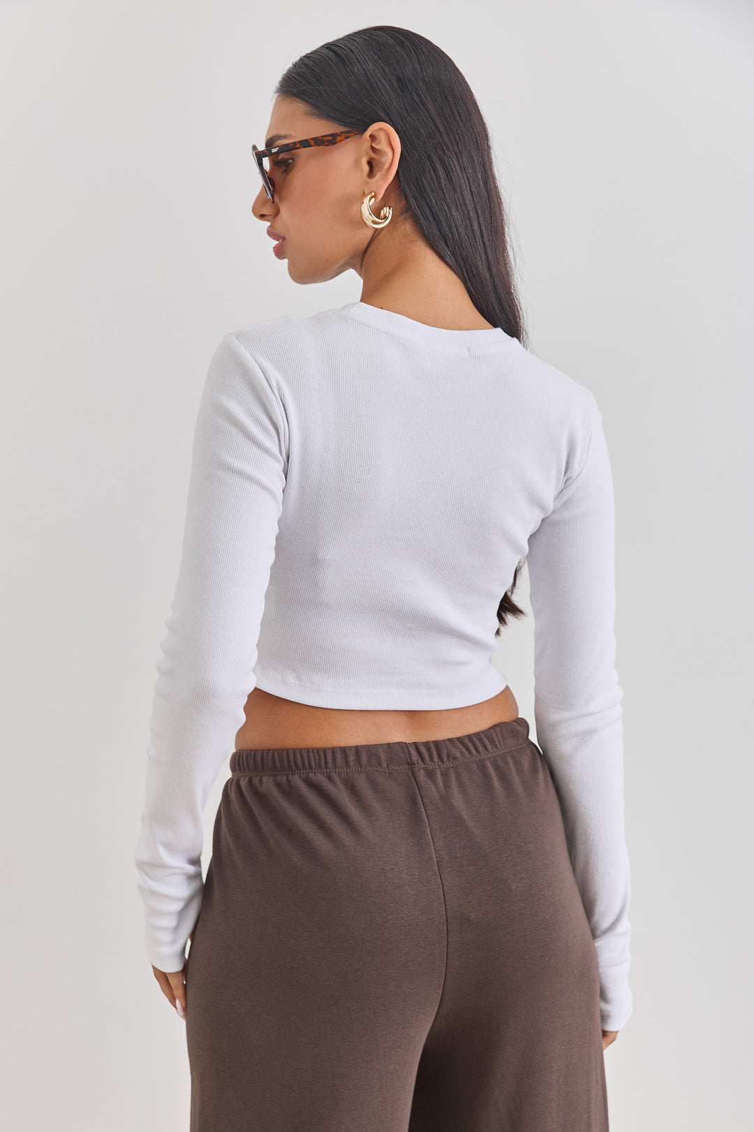 טי שירט בייסיק מדיסון שרוול ארוך | לבן