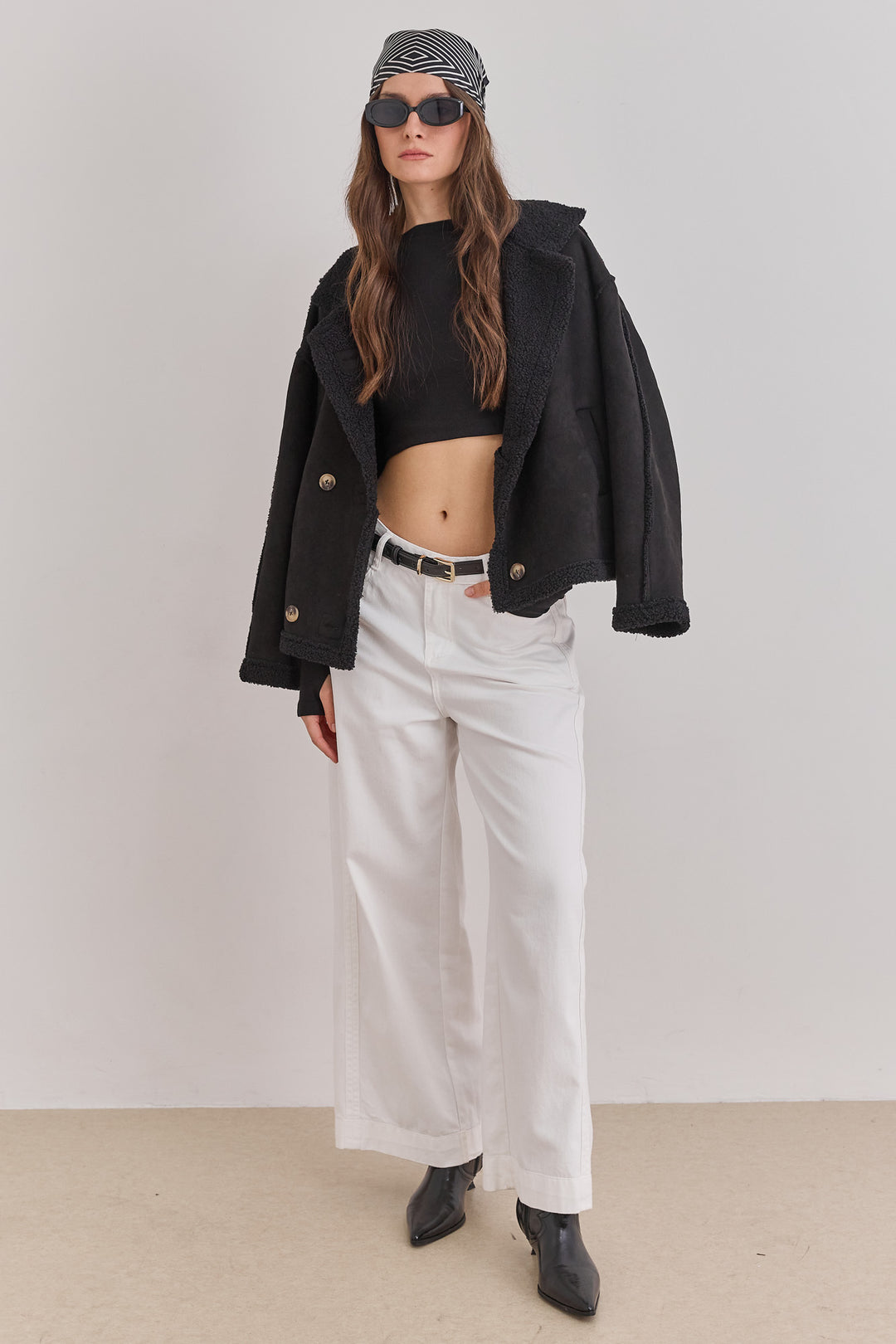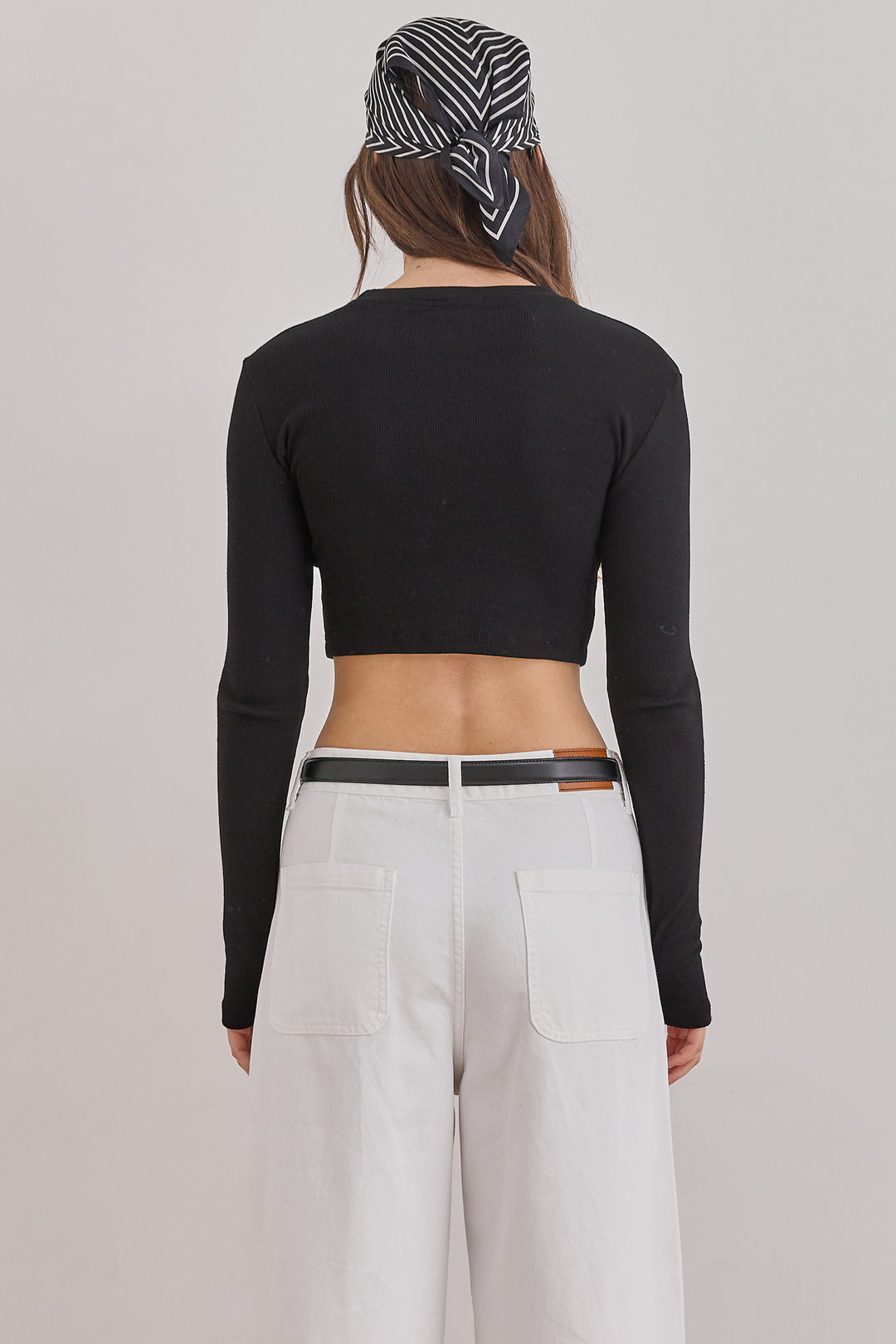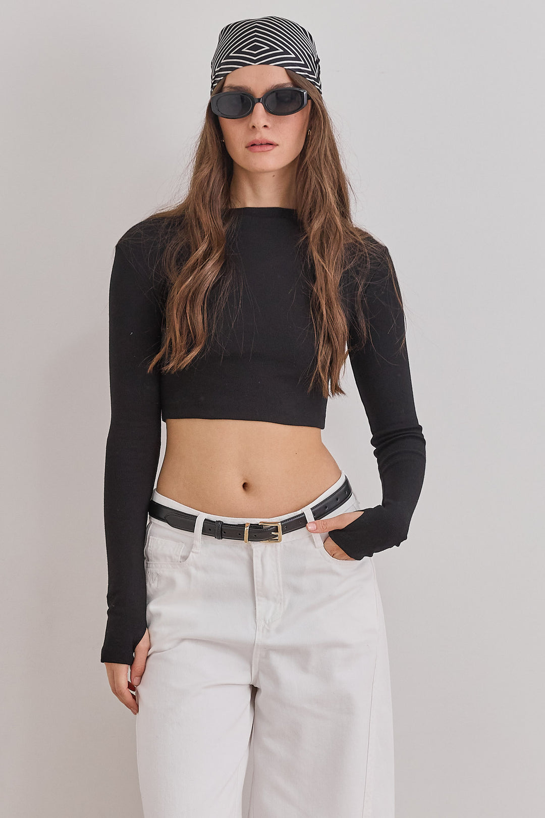 חולצת קרופ ויולט בד ריב שרוול כפפה | שחור