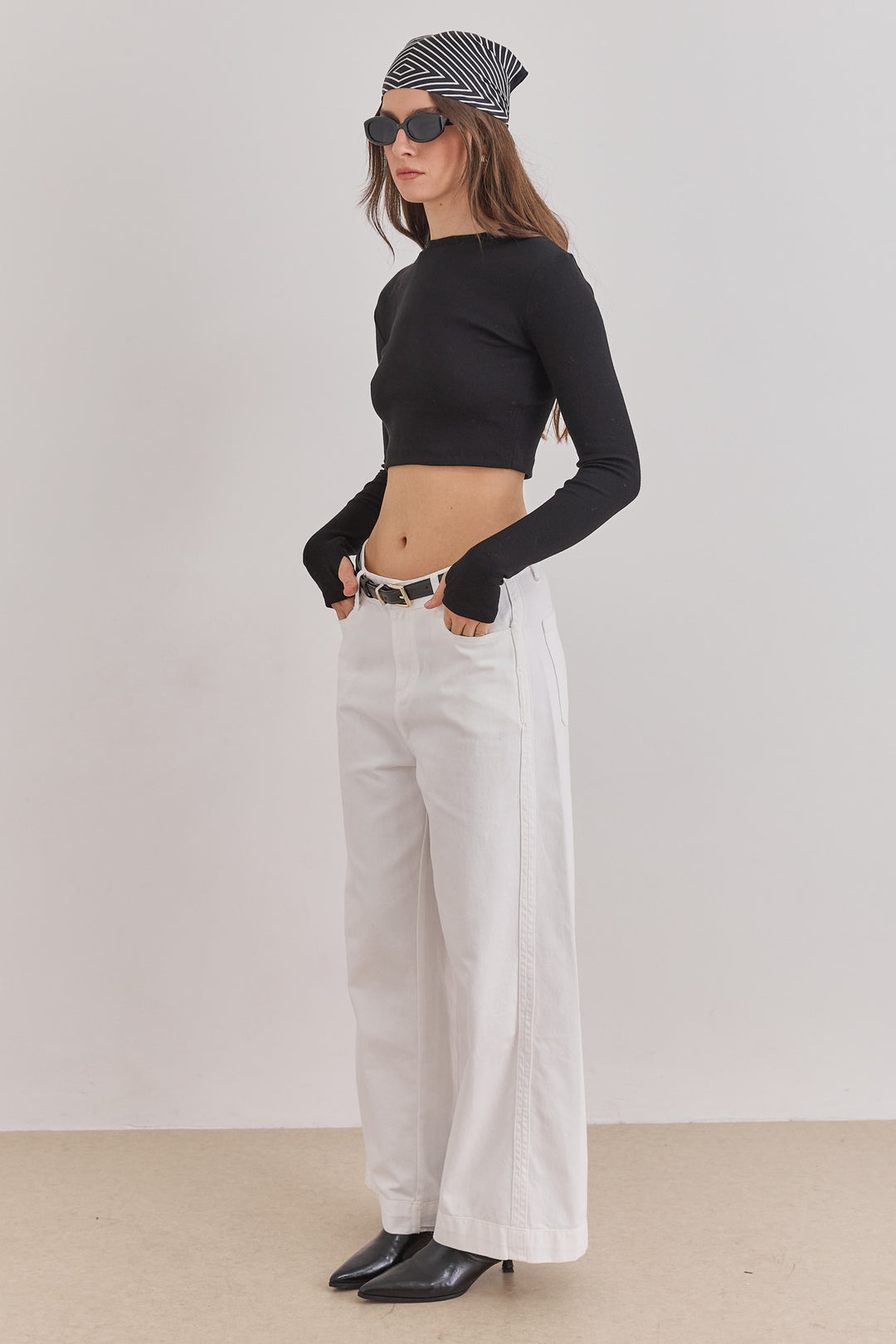חולצת קרופ ויולט בד ריב שרוול כפפה | לבן