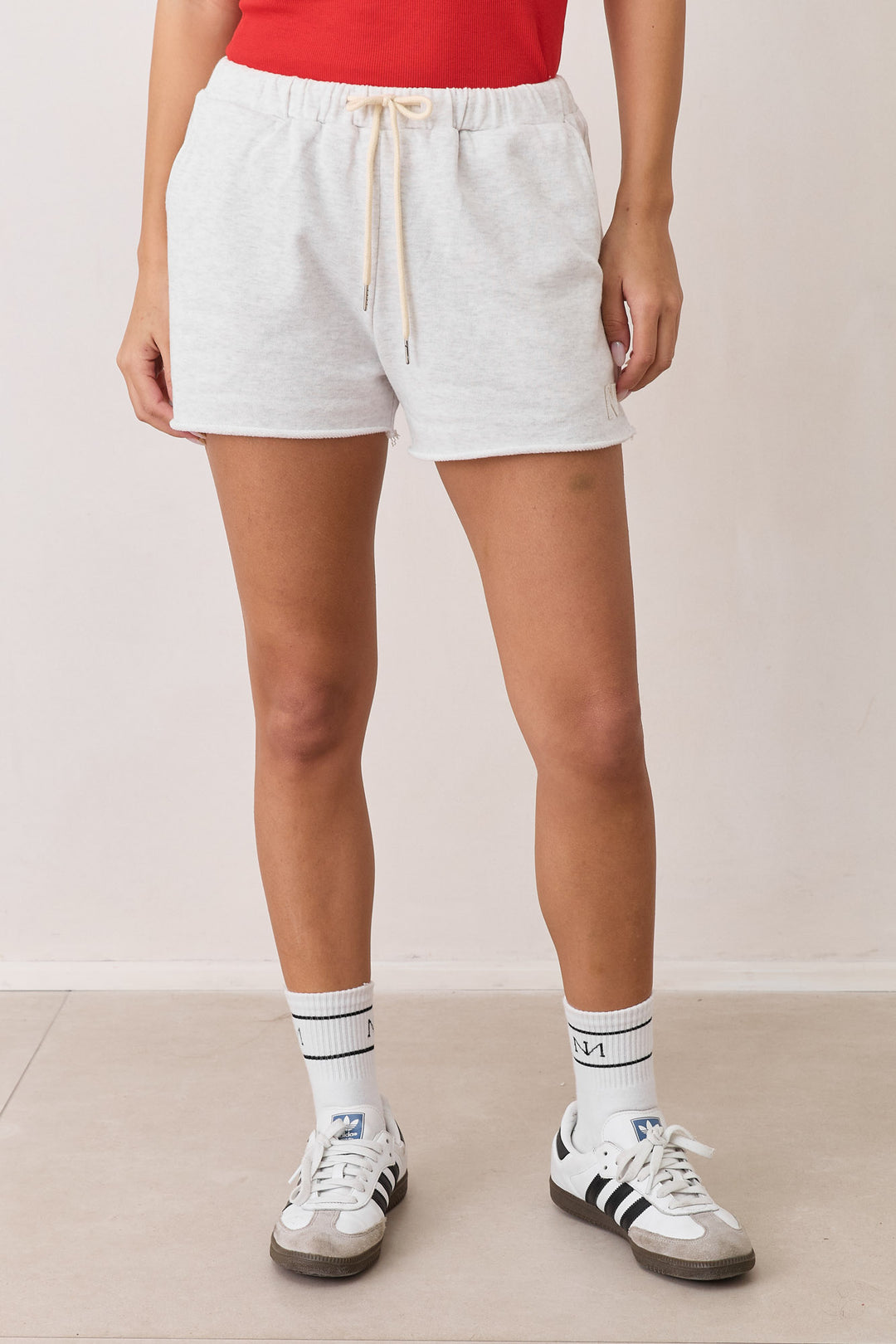 שורטס פרנץ' טרי אדל סיומת גזורה | אפור בהיר