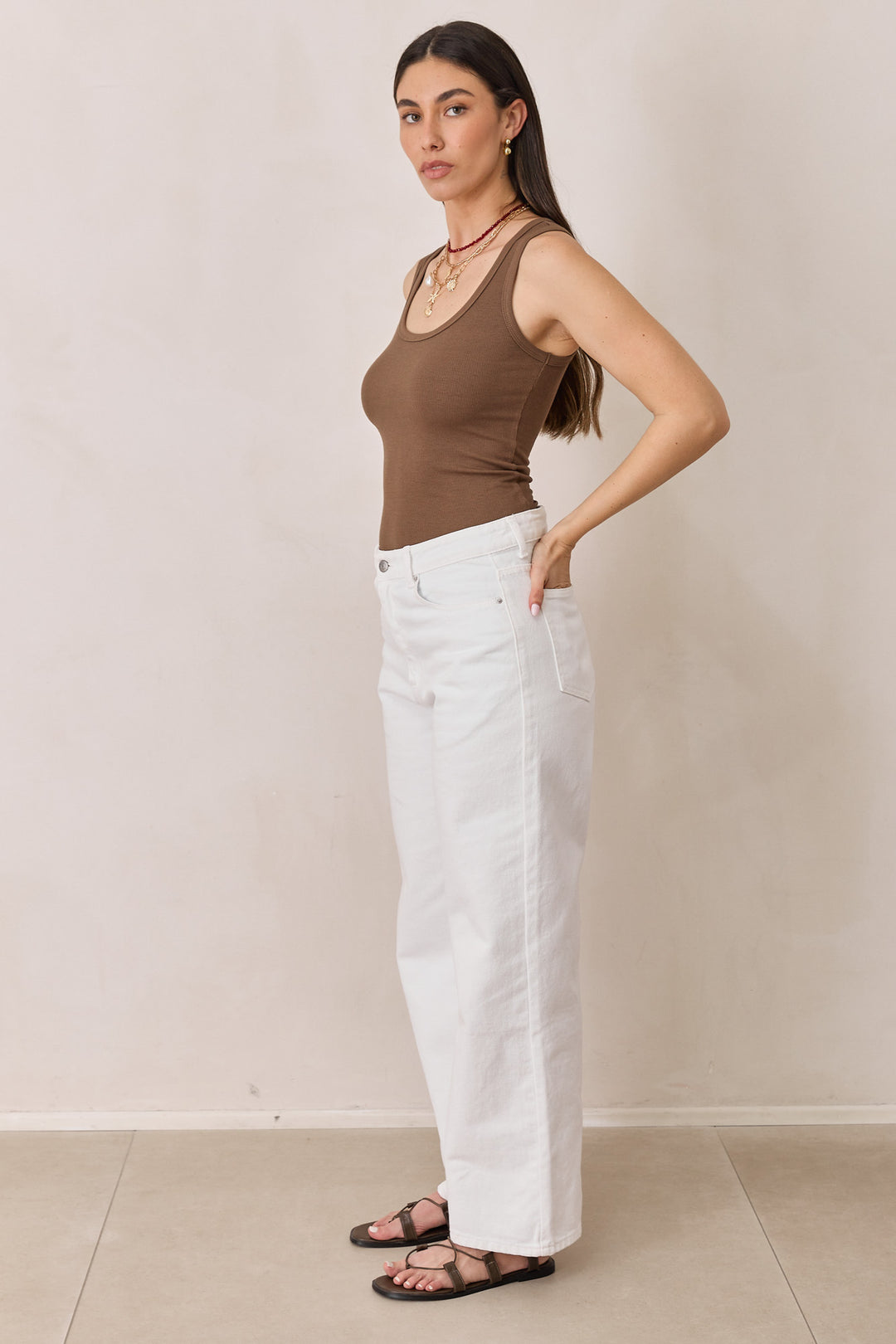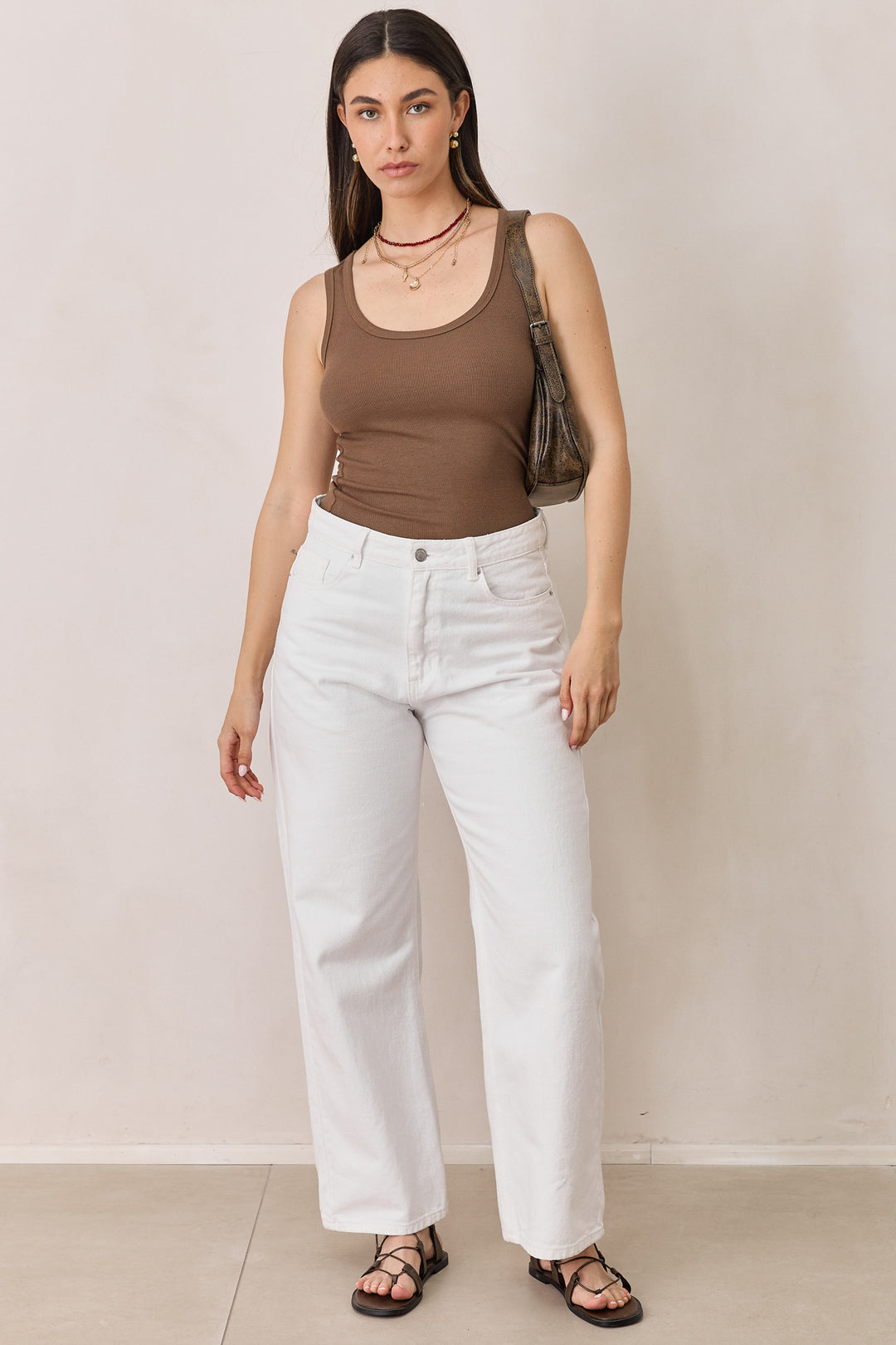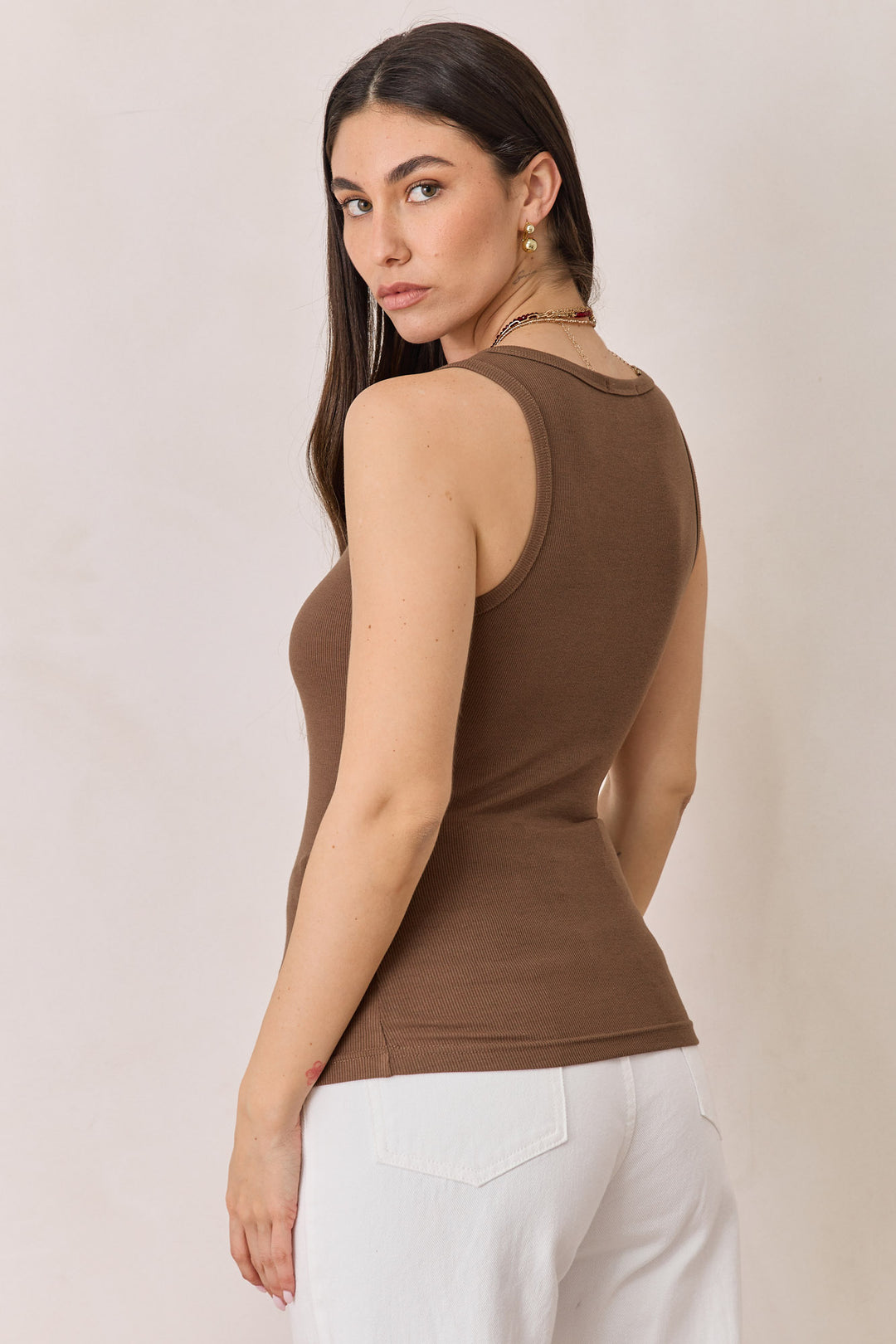 גופיית בייסיק סופי בד ריב דק | חום