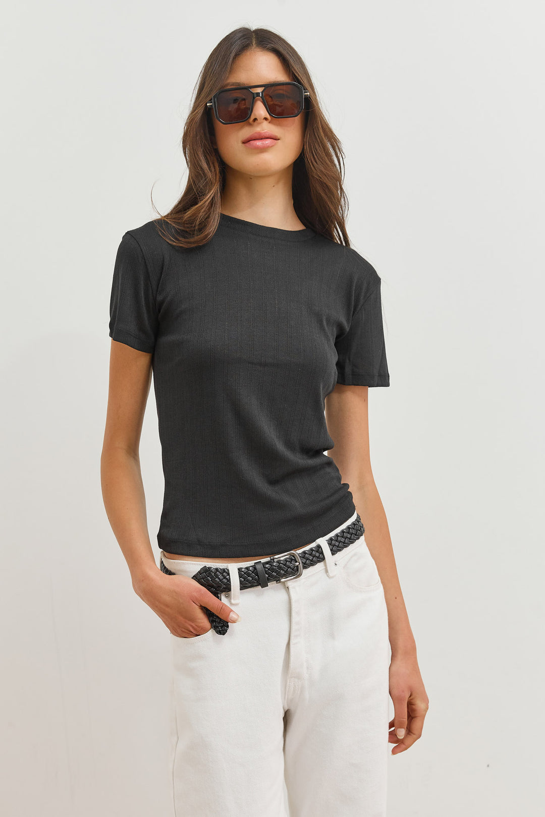 טי שירט ונוס עם טקסטורה | שחור