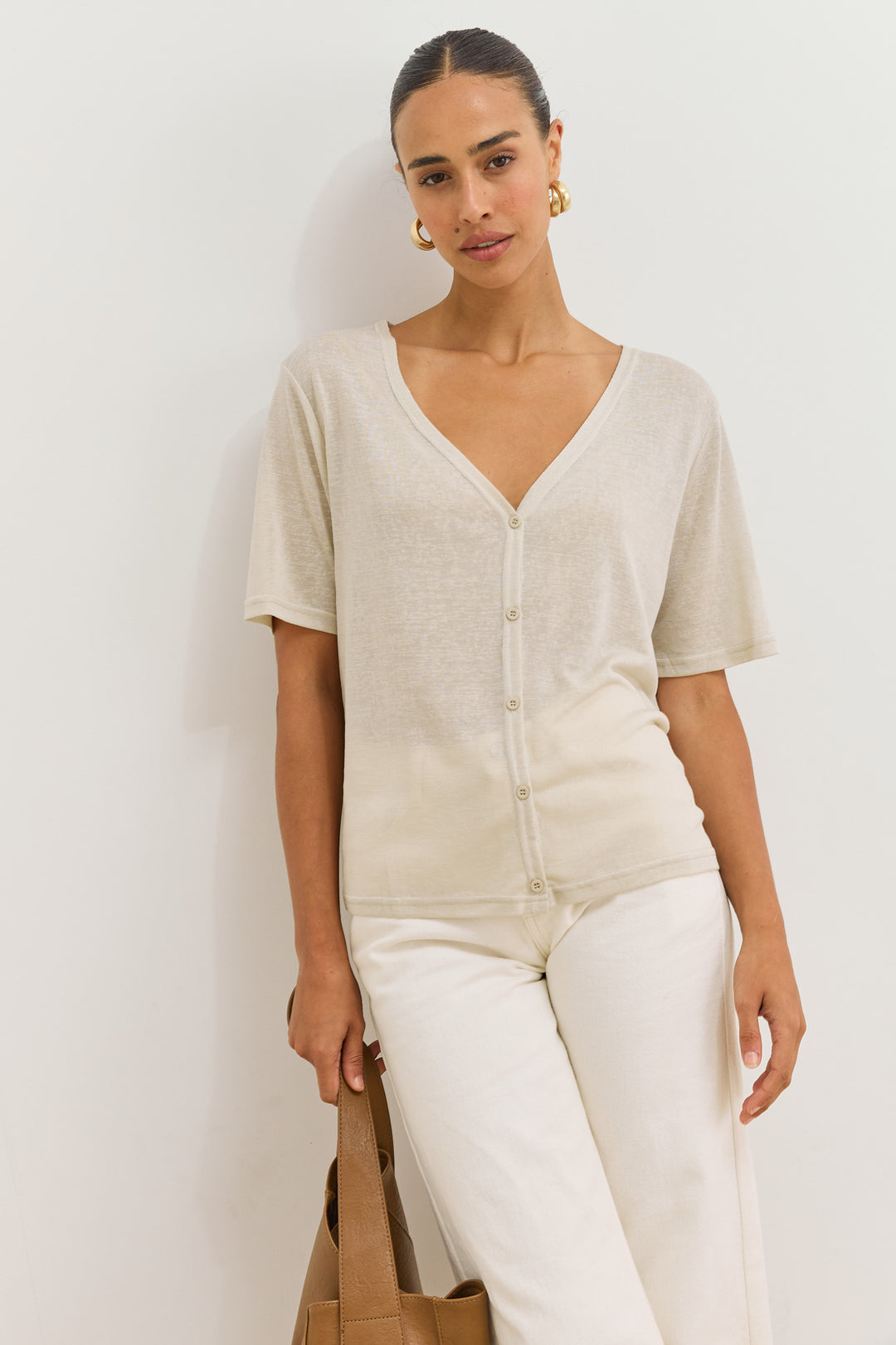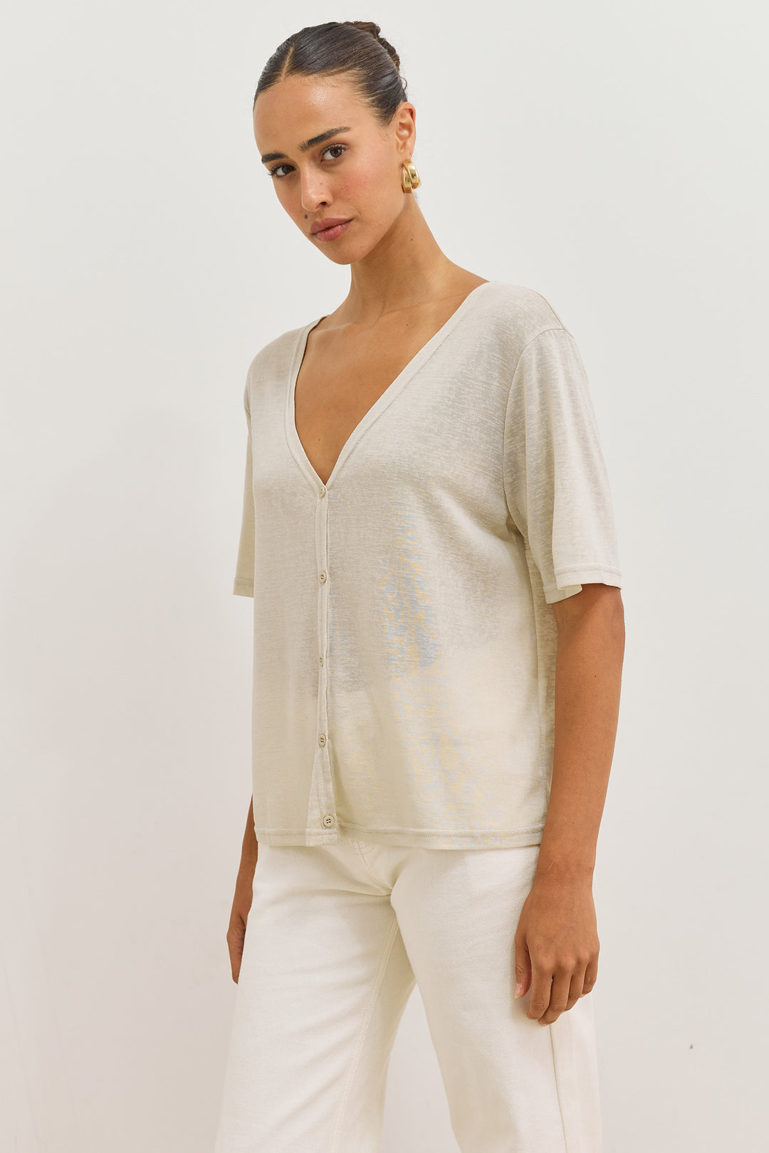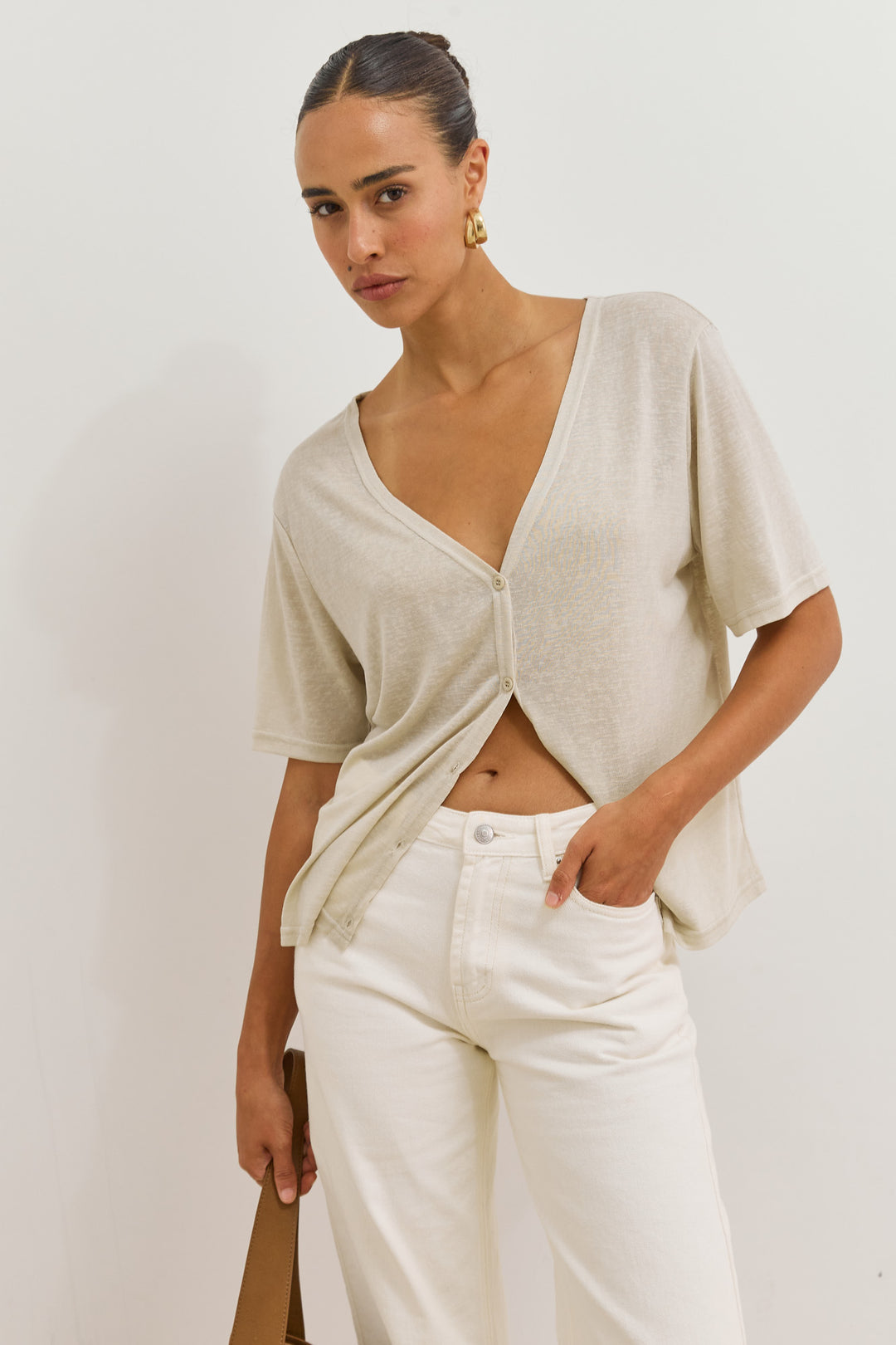 חולצת כפתורים בילי מחשוף וי | אבן