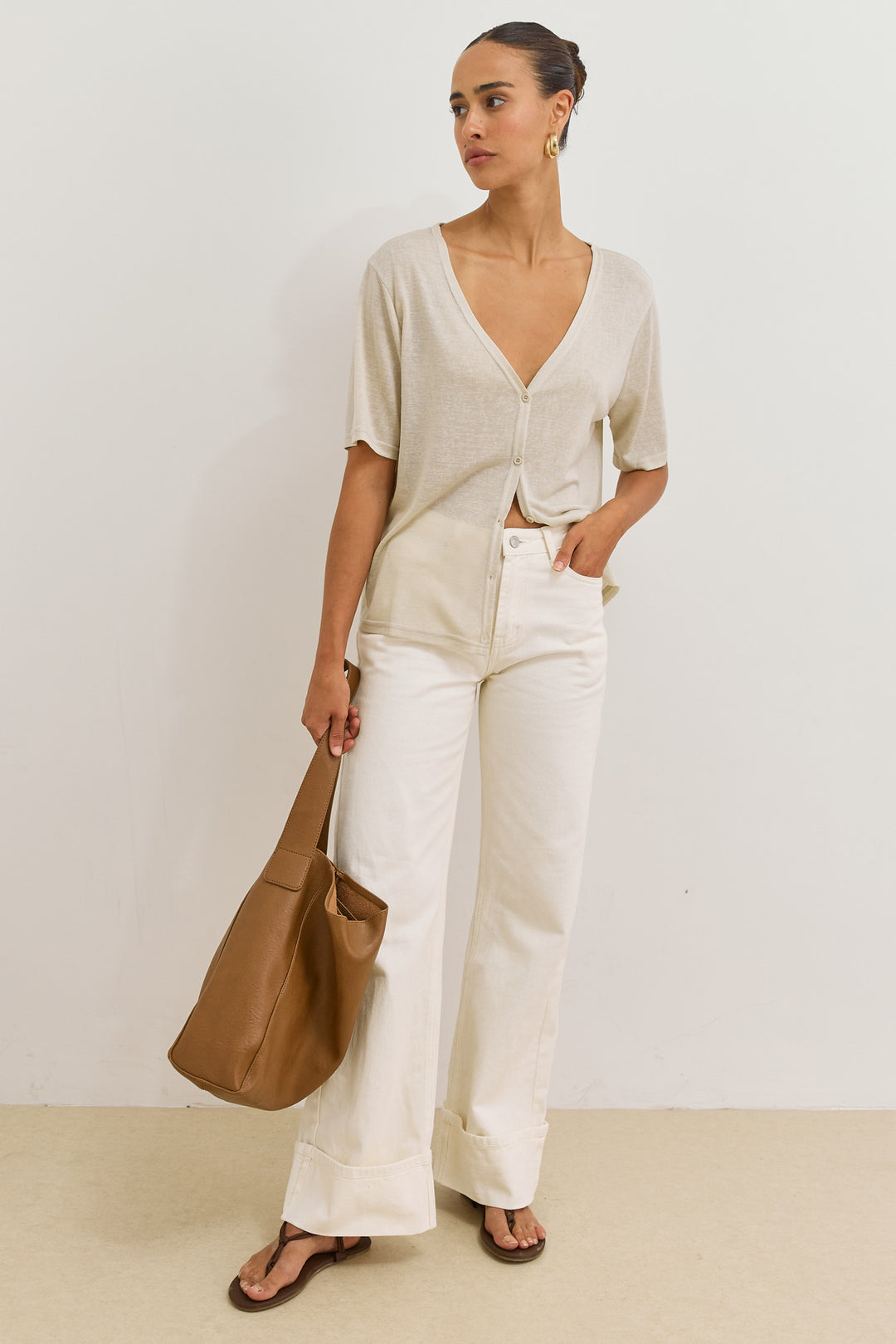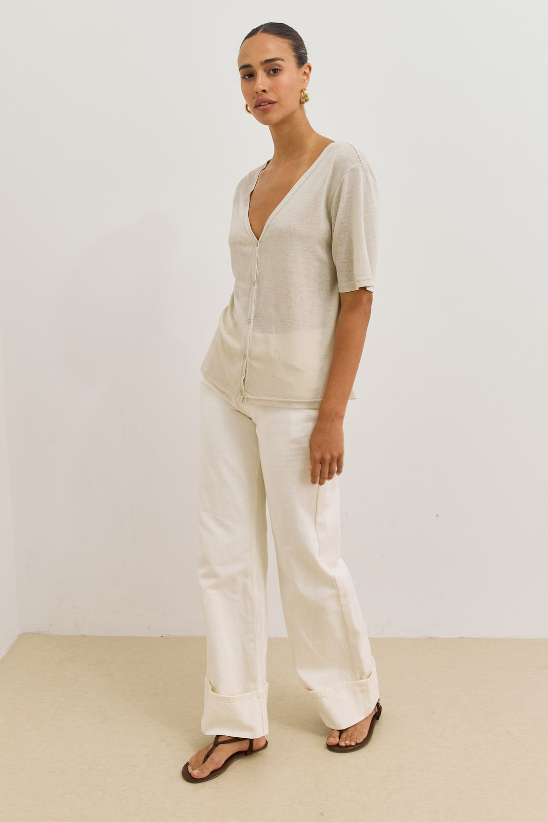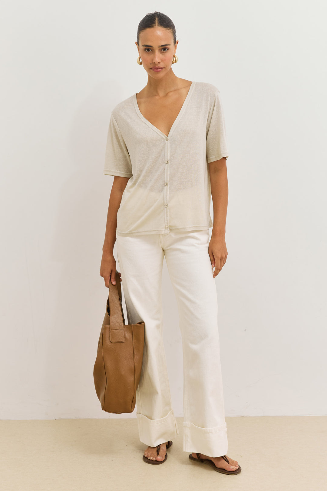 חולצת כפתורים בילי מחשוף וי | אבן