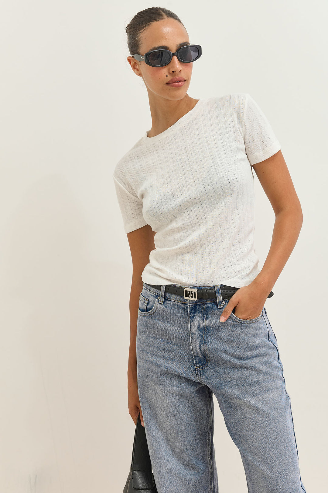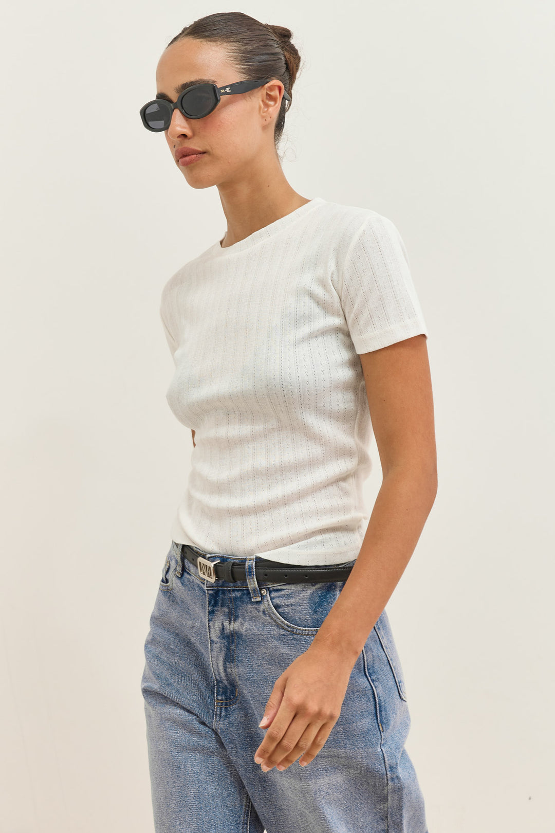 טי שירט ונוס עם טקסטורה | לבן