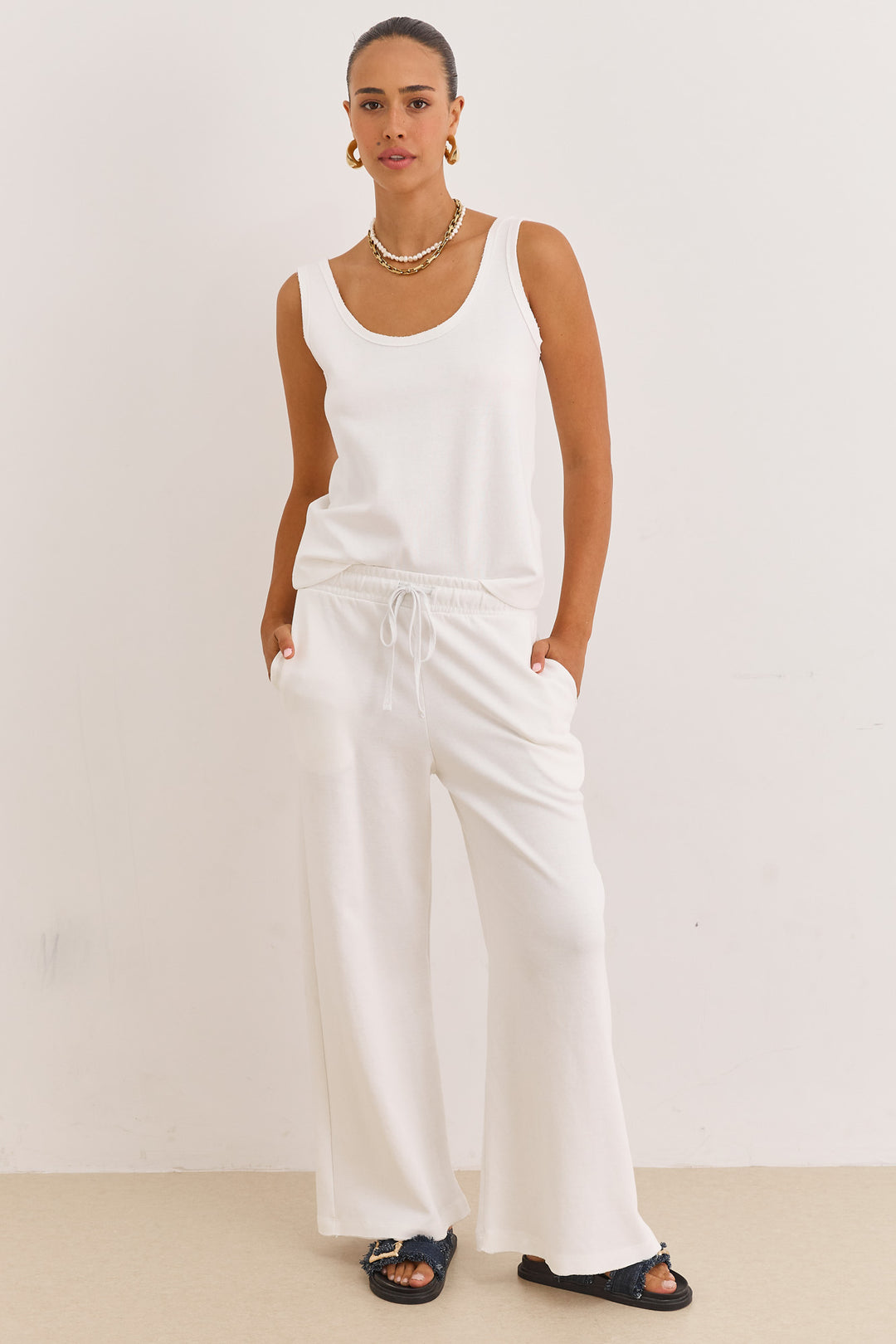 מכנסי אנוק סיומת גזורה | לבן