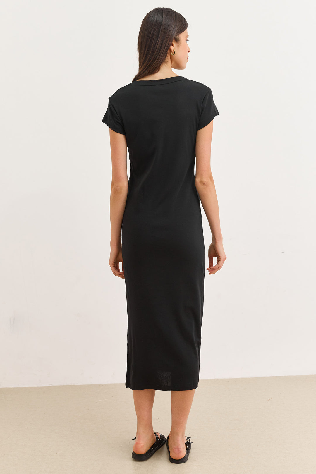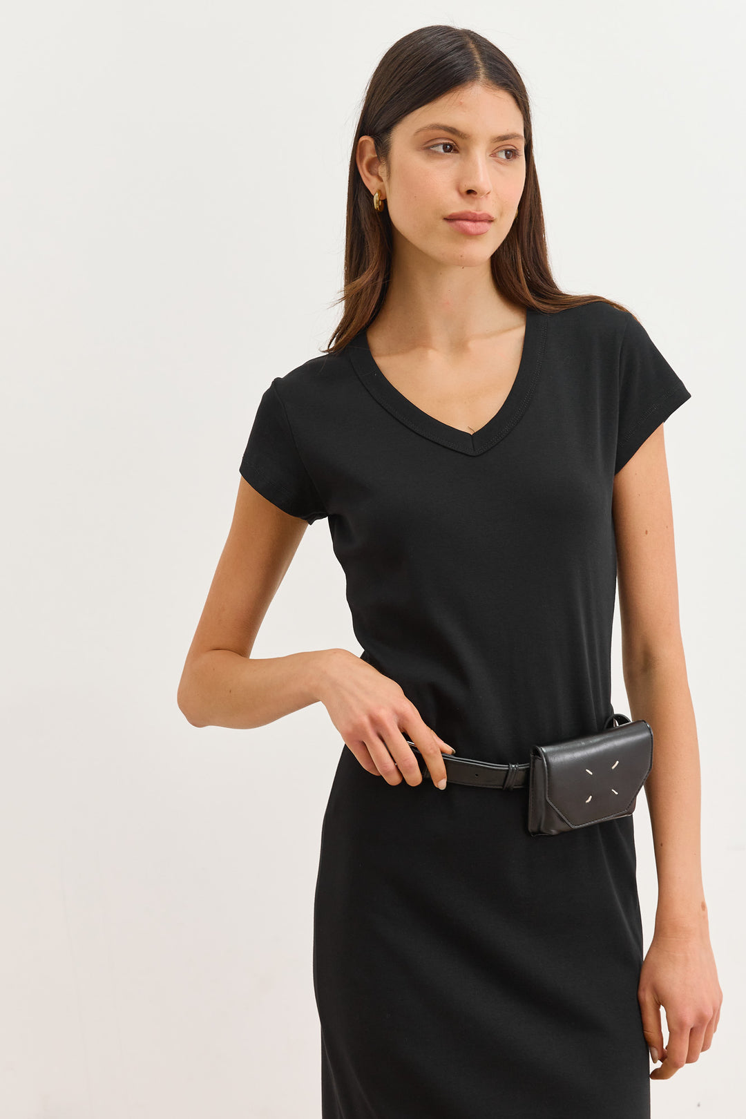 שמלת בייסיק ג'ני מחשוף וי | שחור