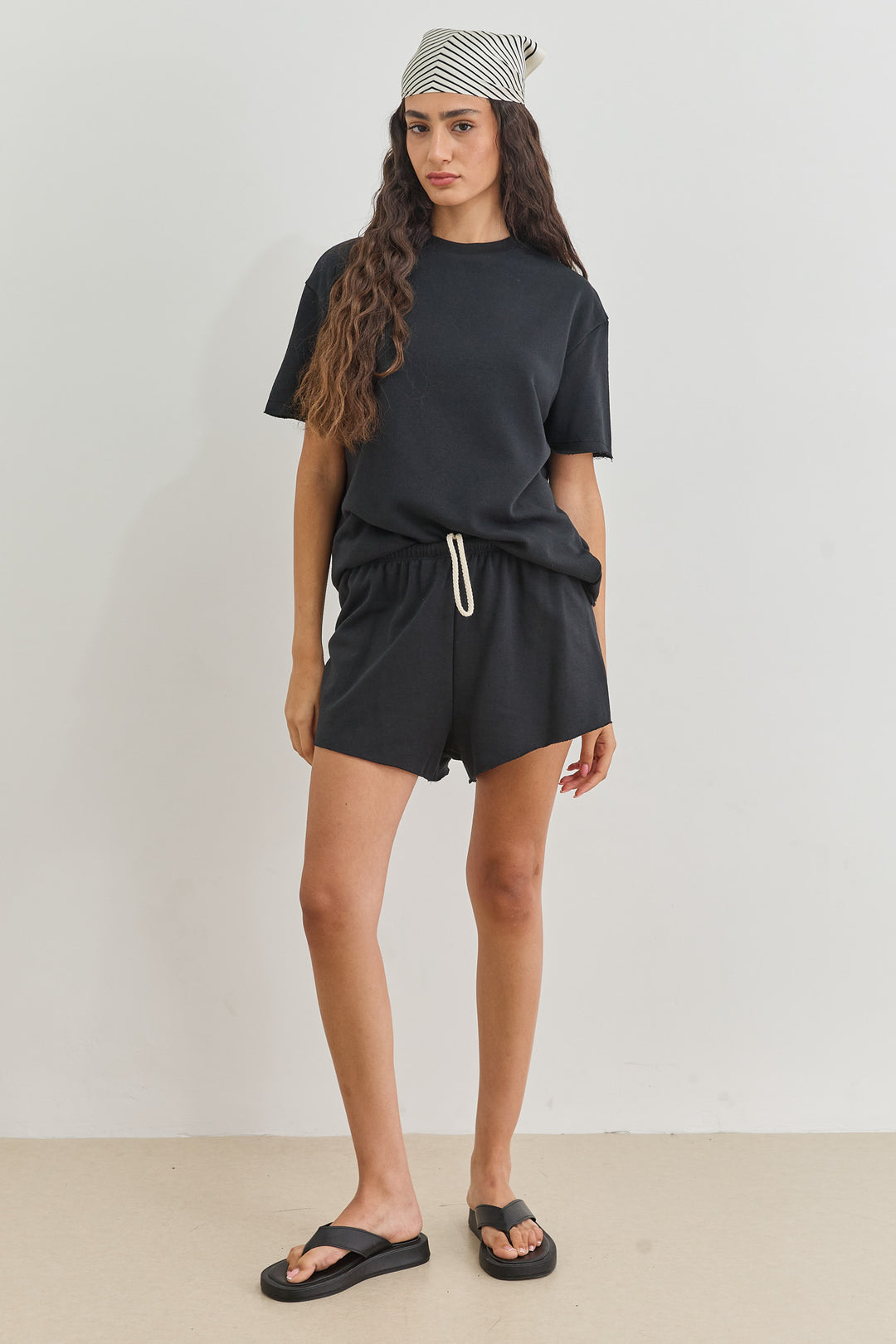 שורטס פרנץ' טרי אדל סיומת גזורה | שחור