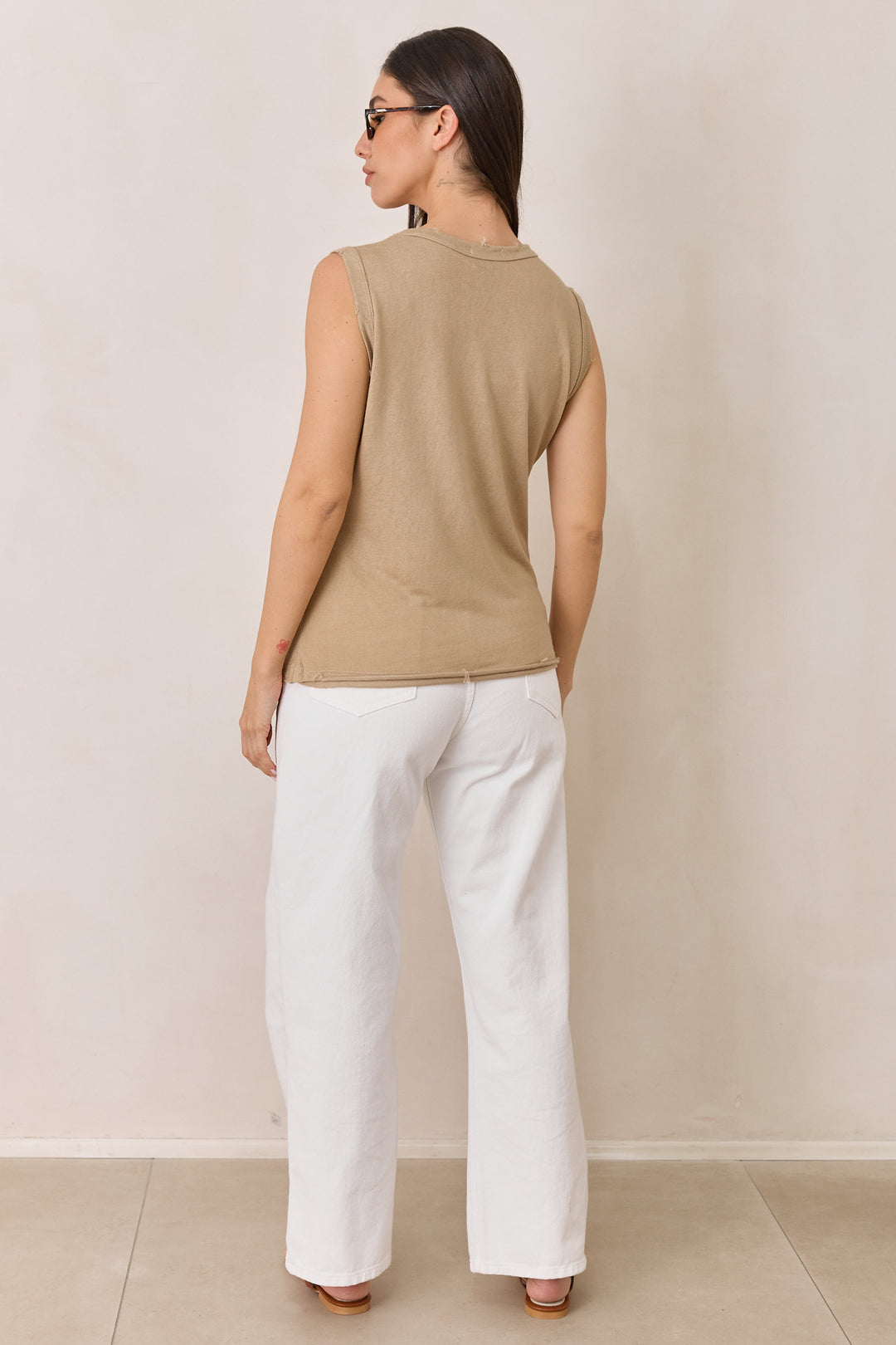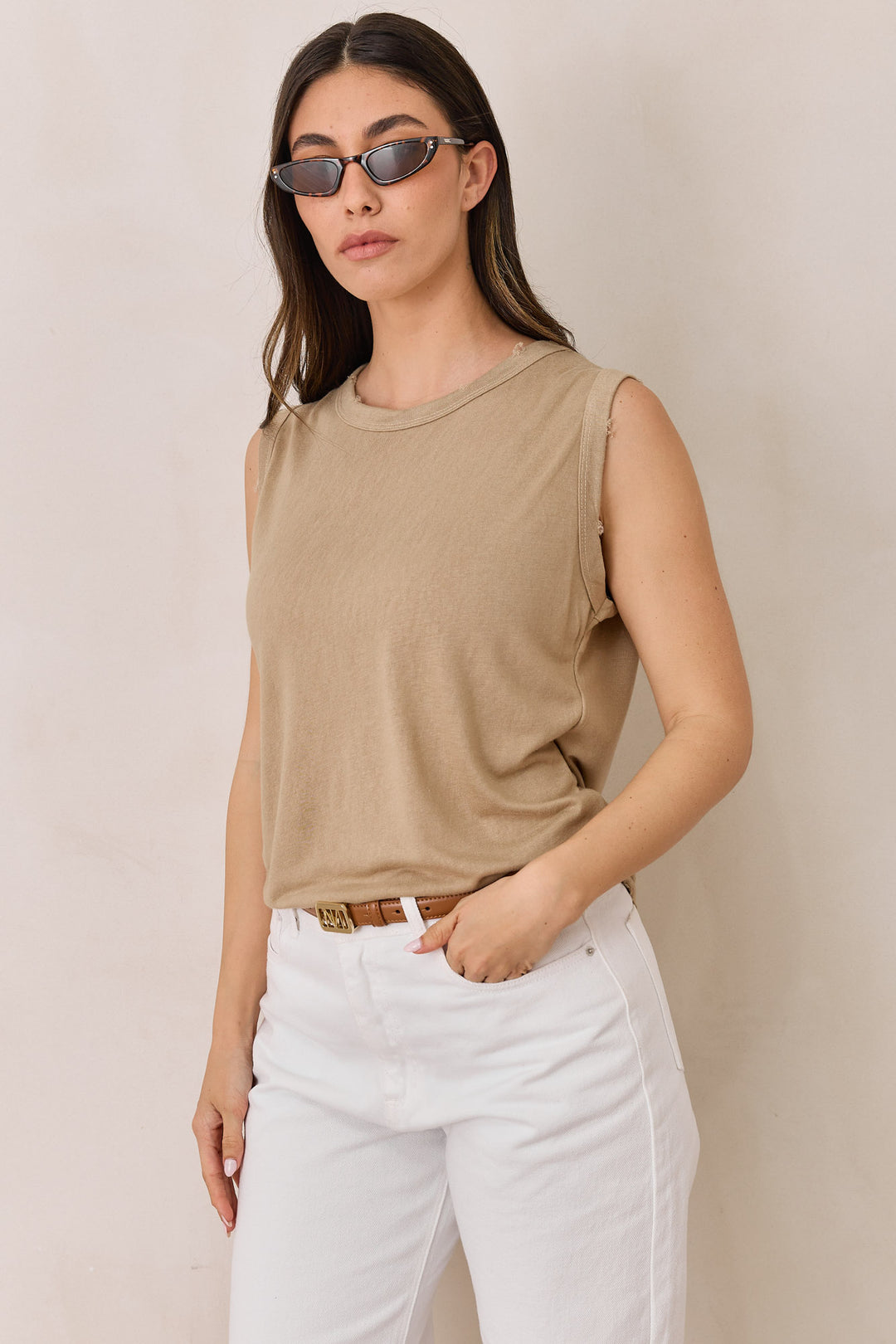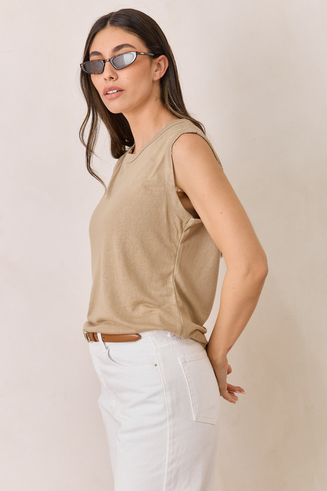 חולצת טיטו סריג פשתן ללא שרוול | מוקה