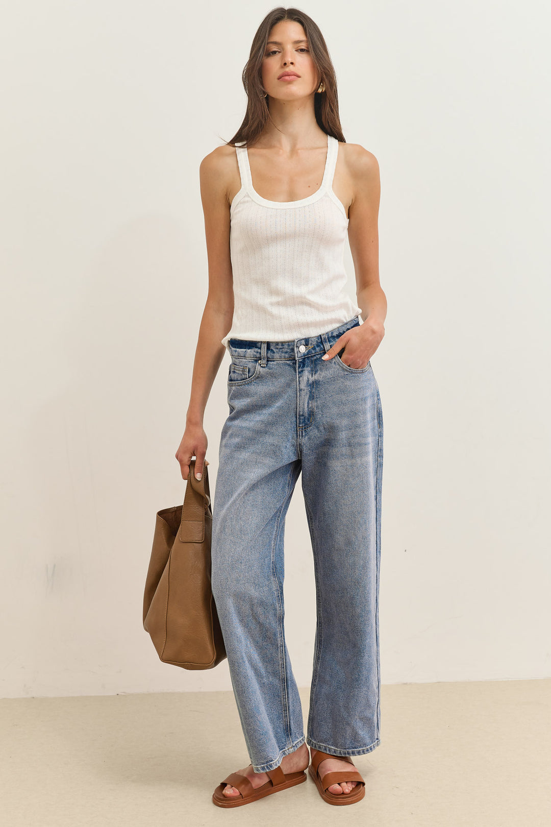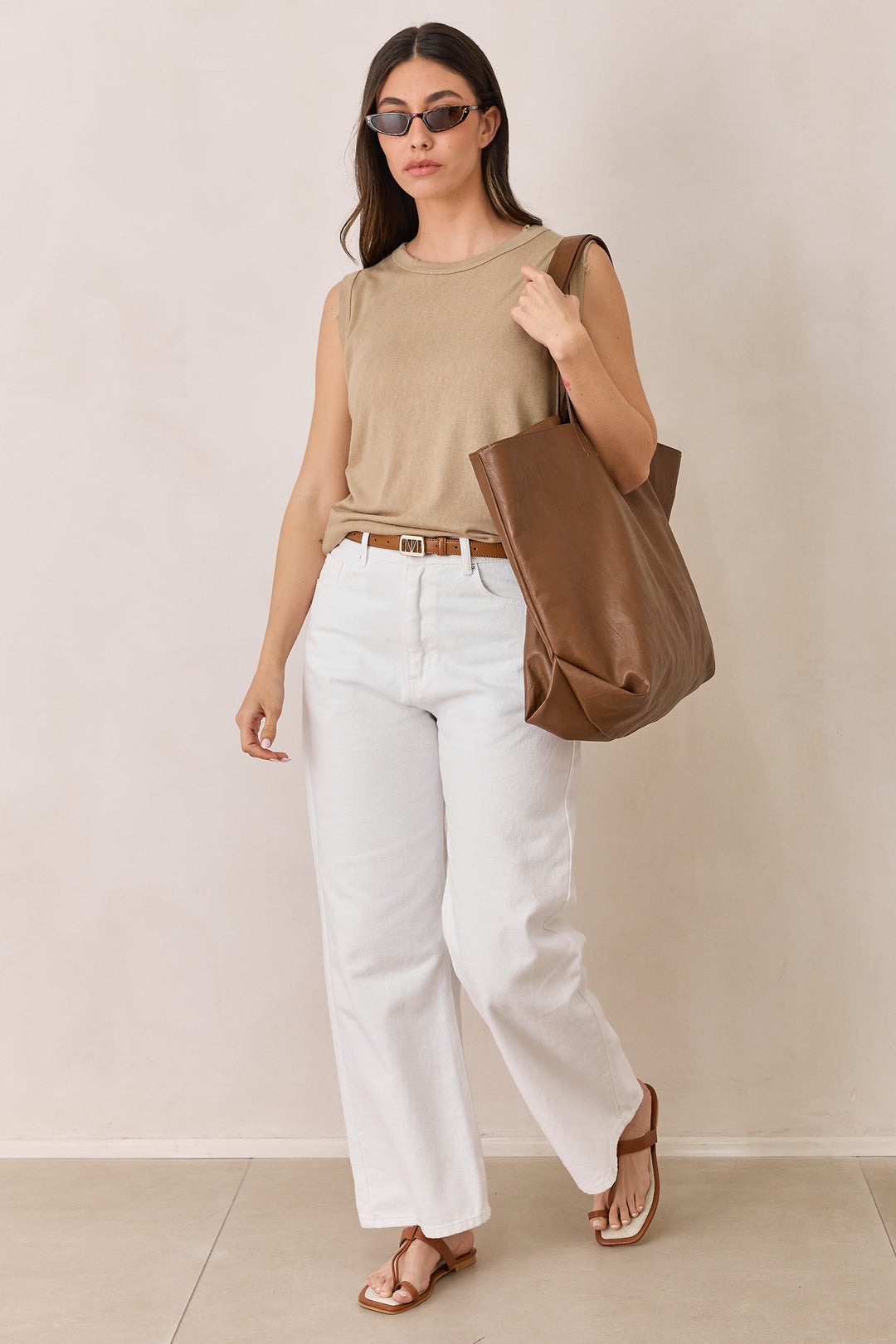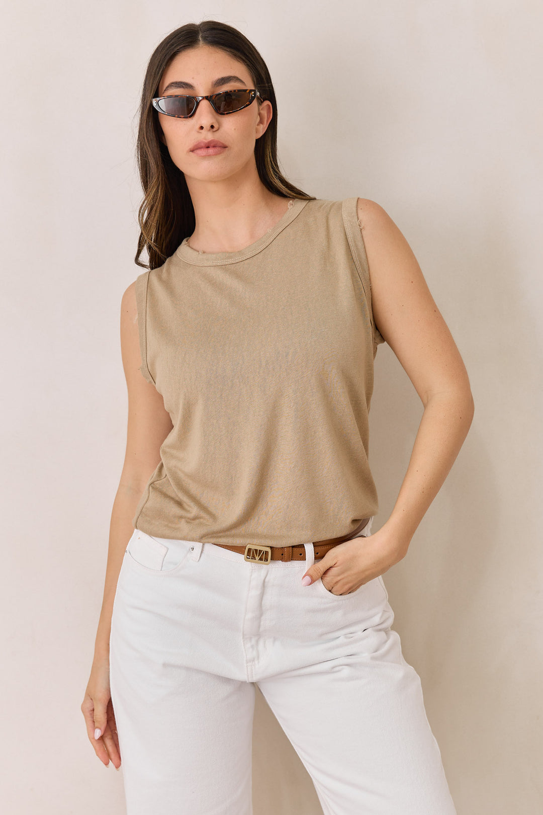 חולצת טיטו סריג פשתן ללא שרוול | מוקה