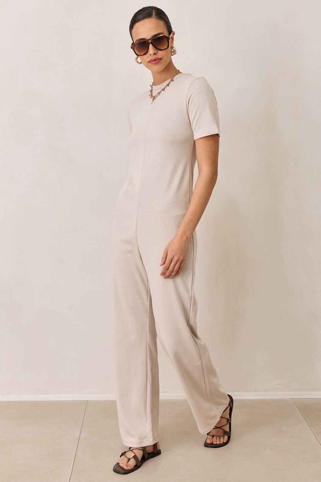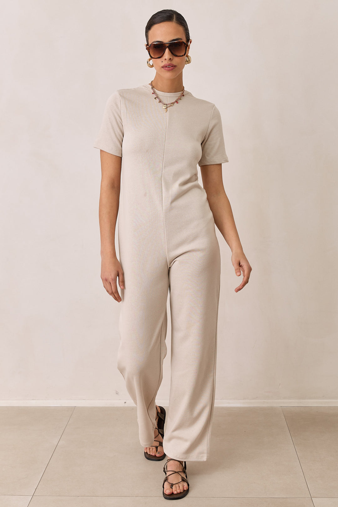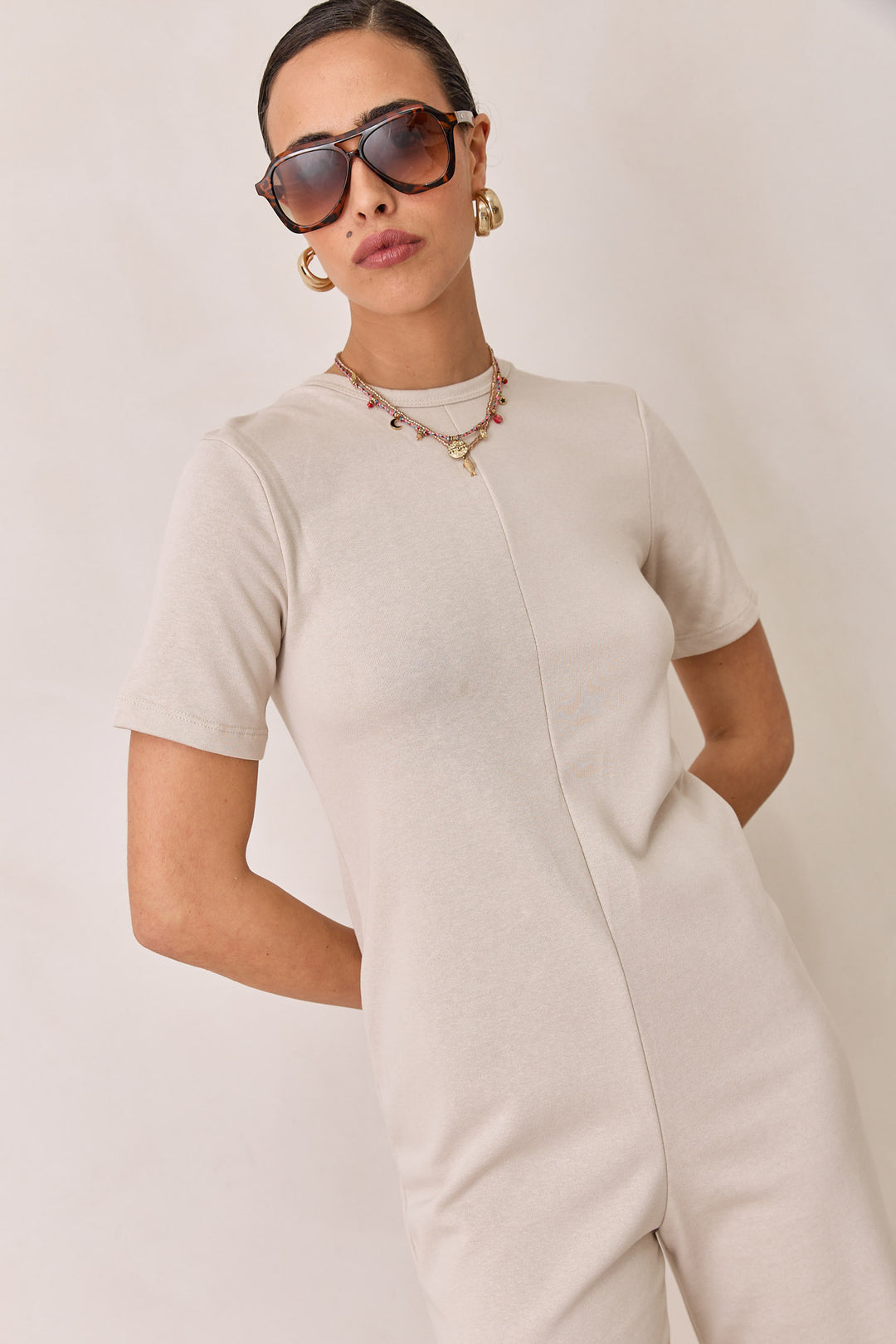 אוברול פרנץ' טרי שריל מחשוף גב | בז' מלאנז'