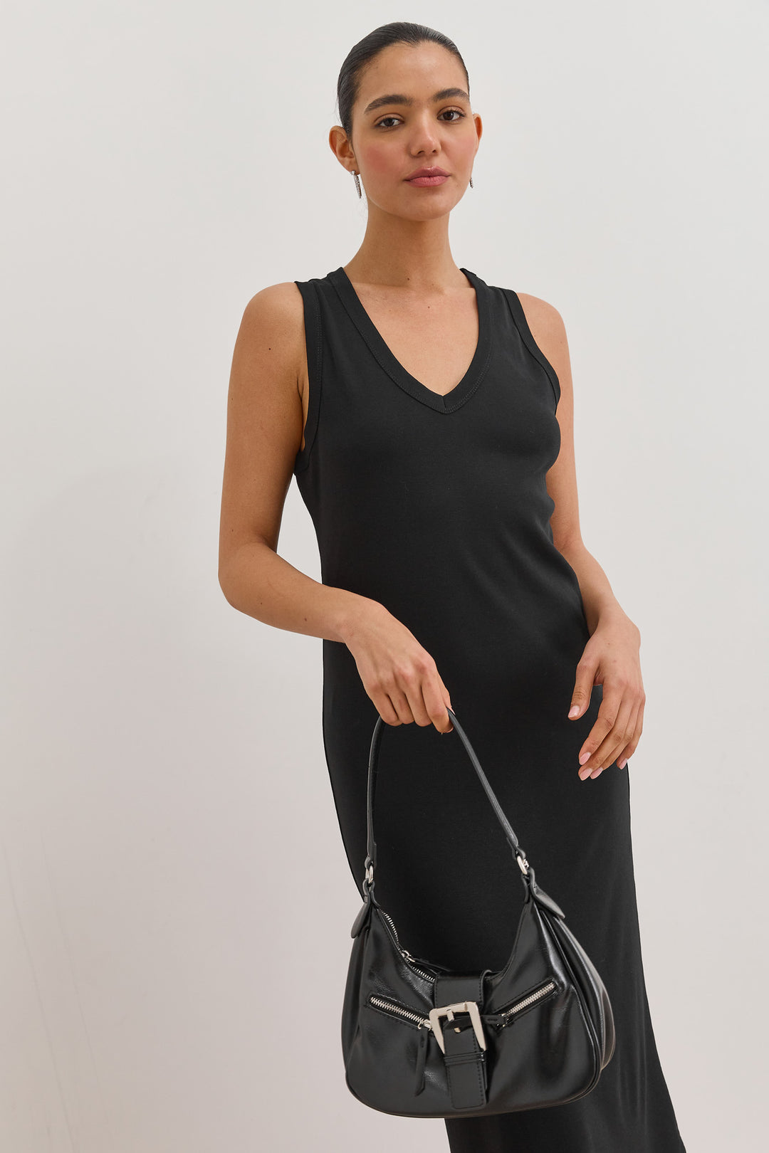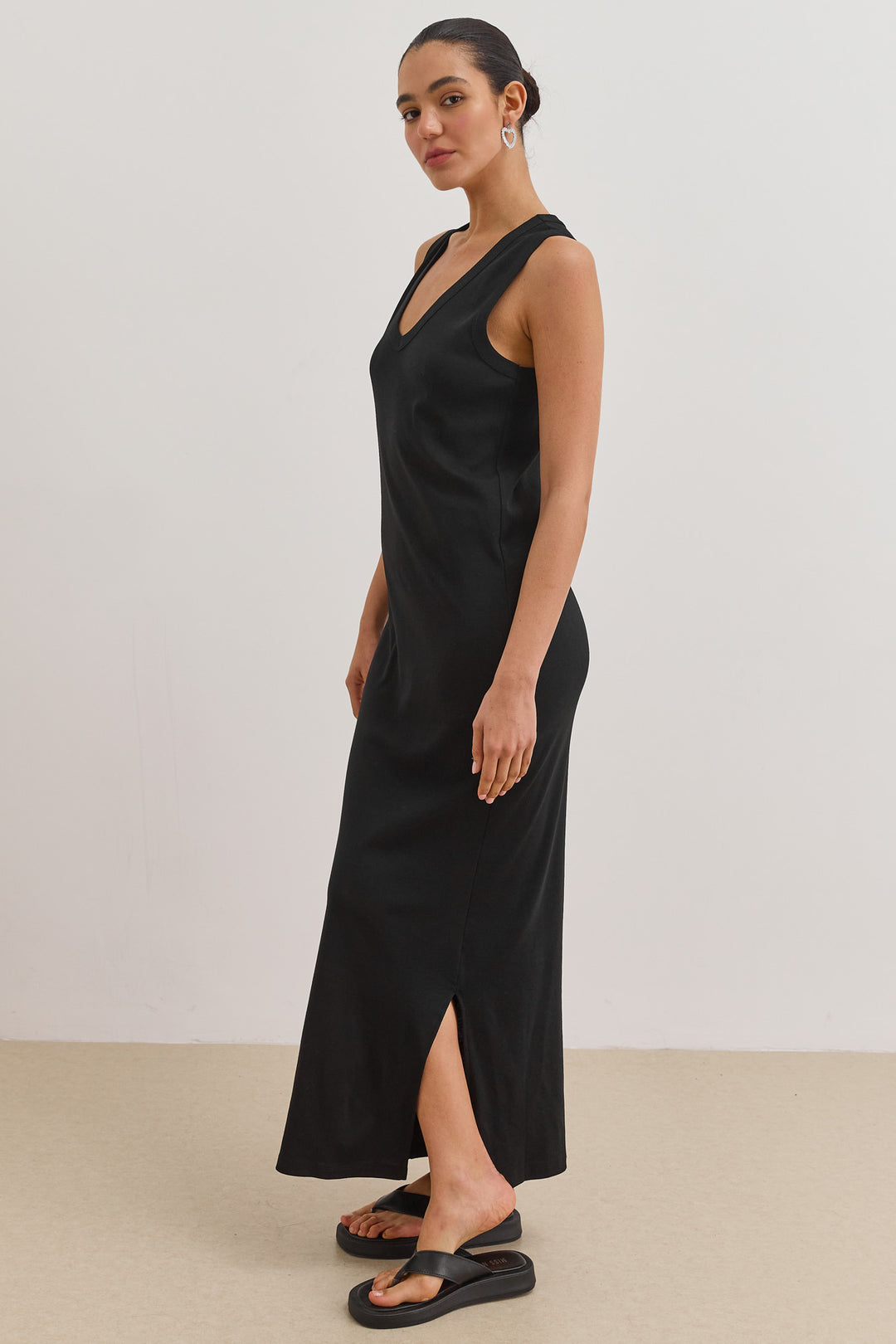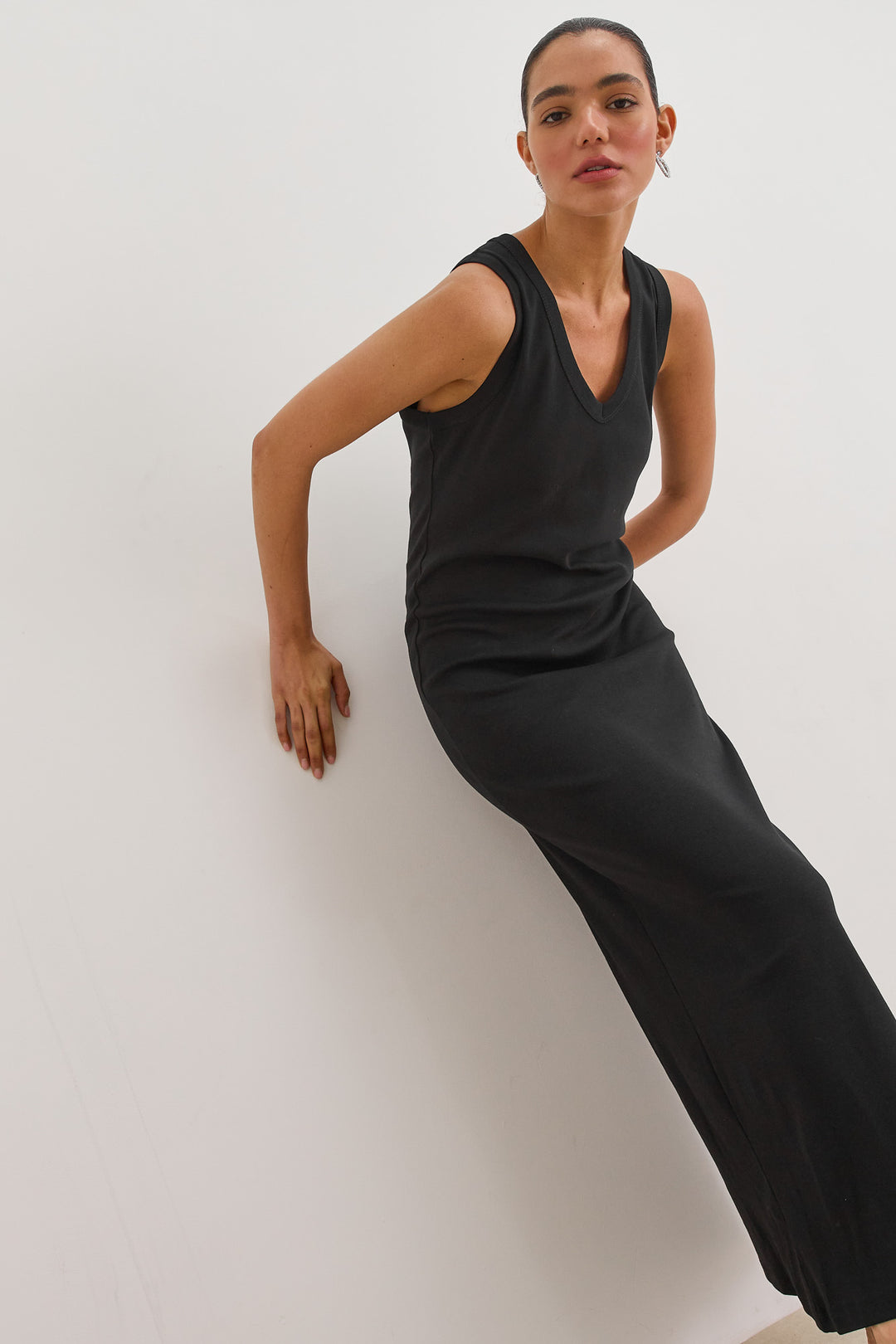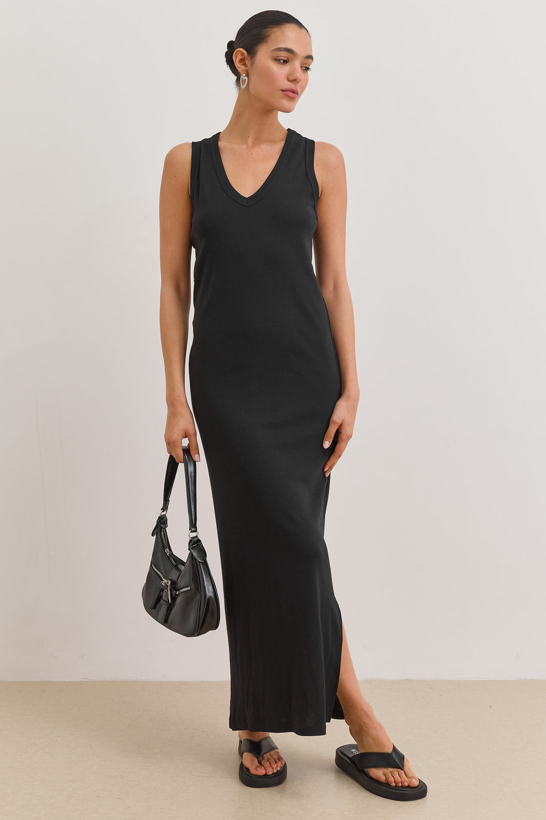 שמלת מקסי אן מרי מחשוף וי | שחור