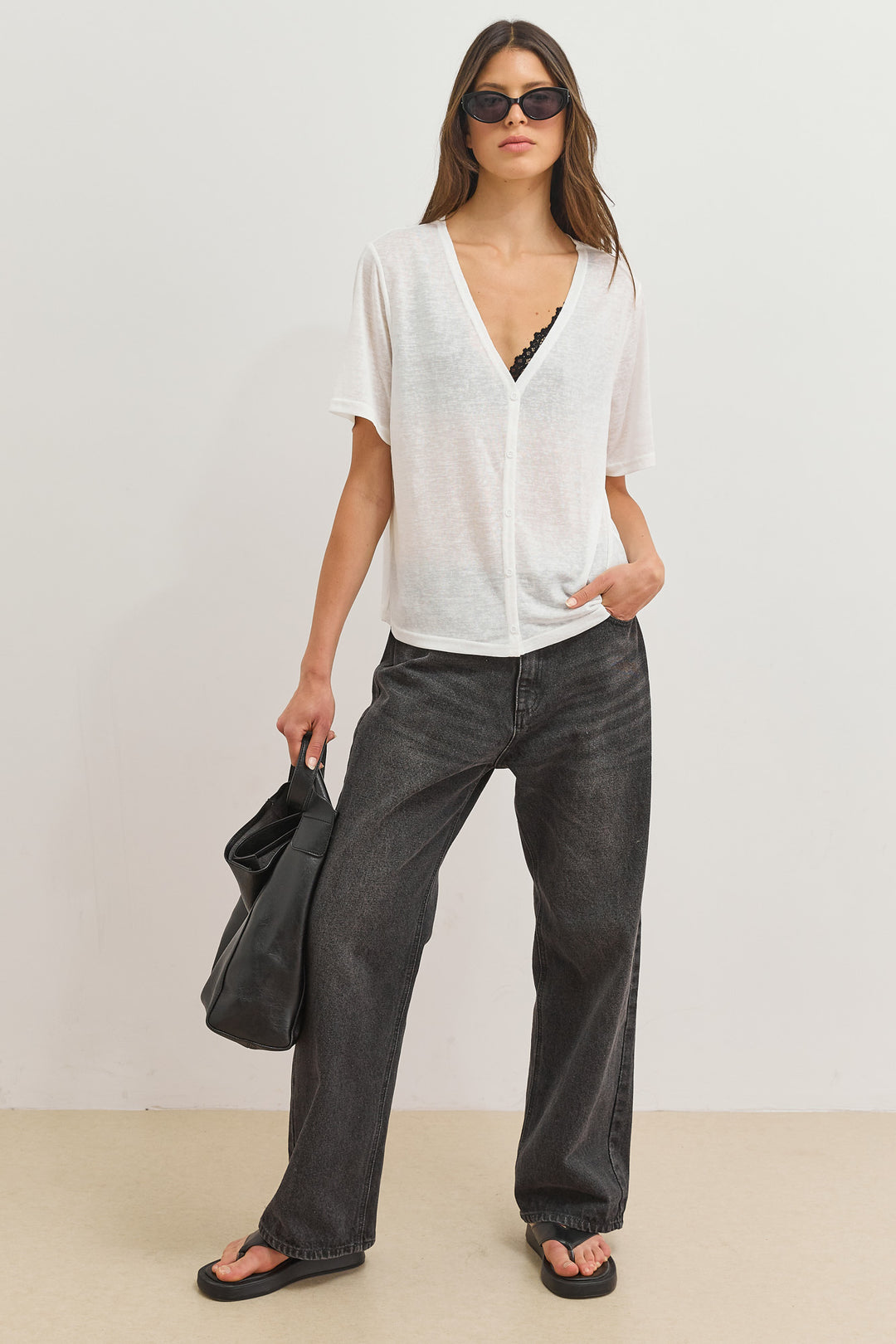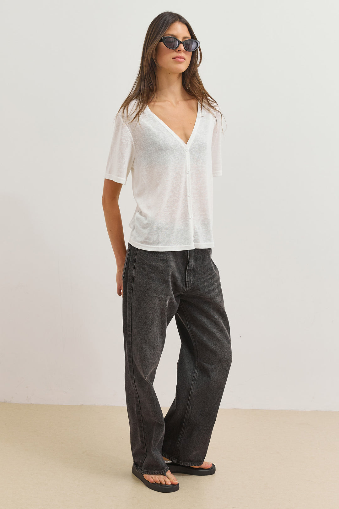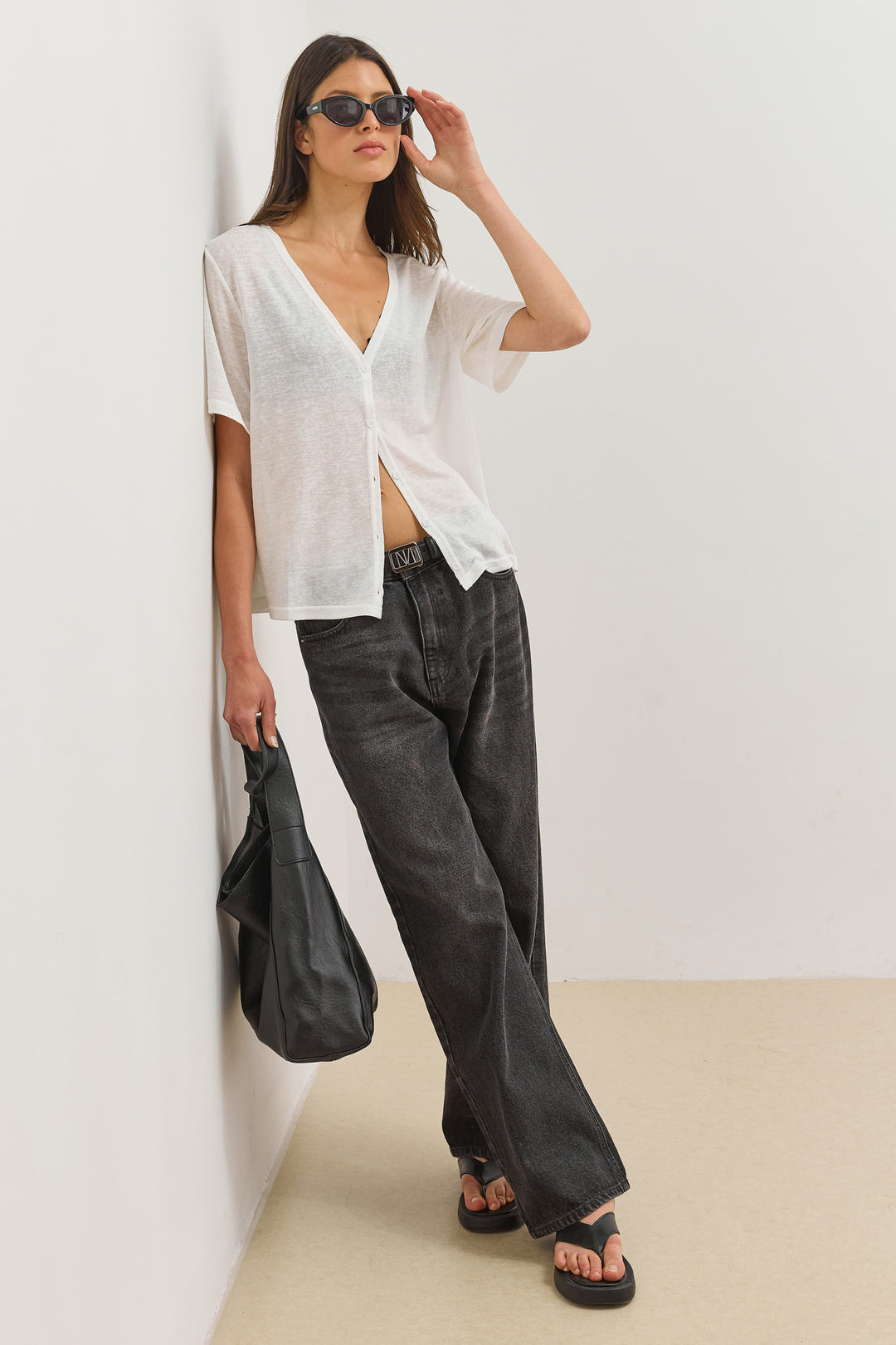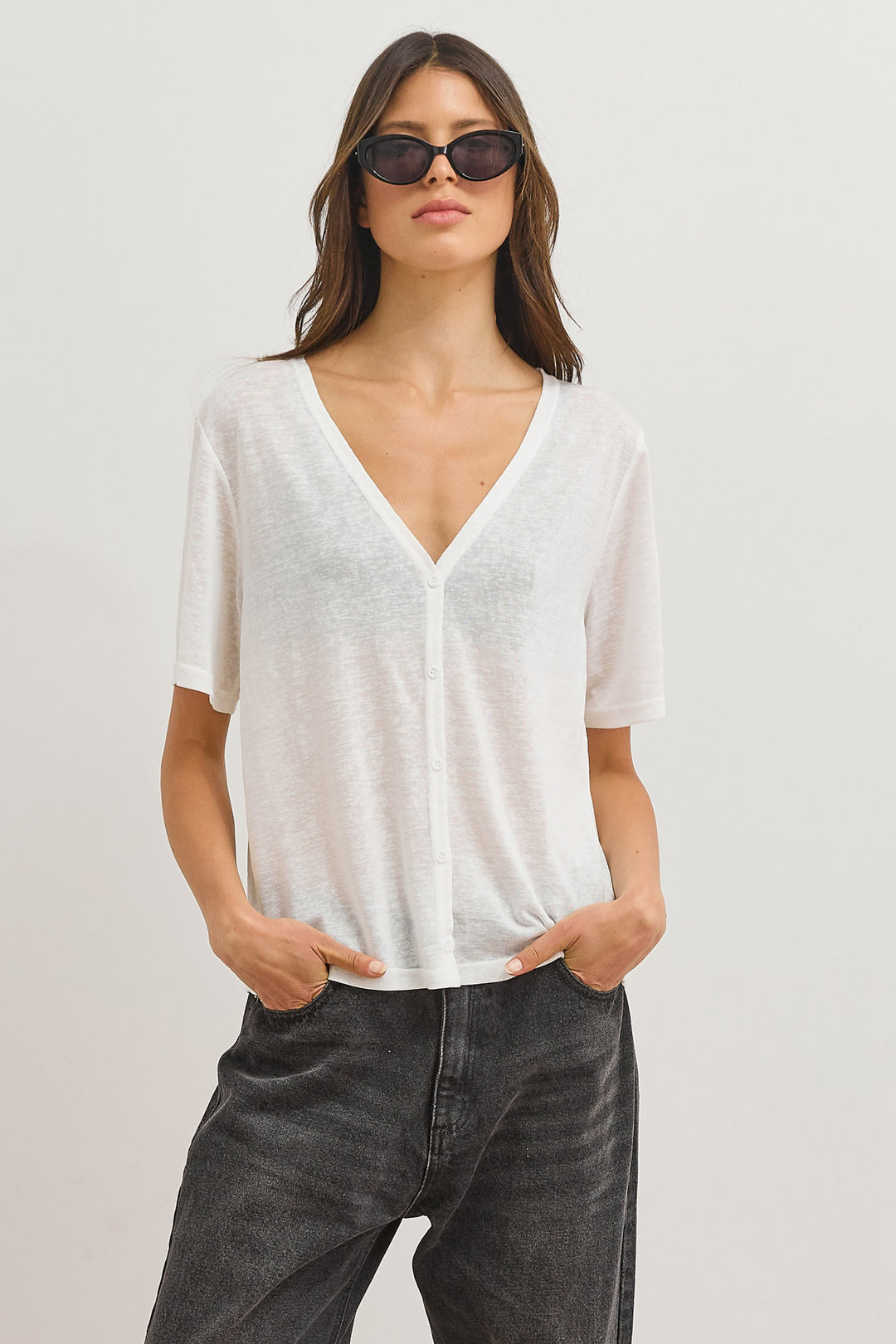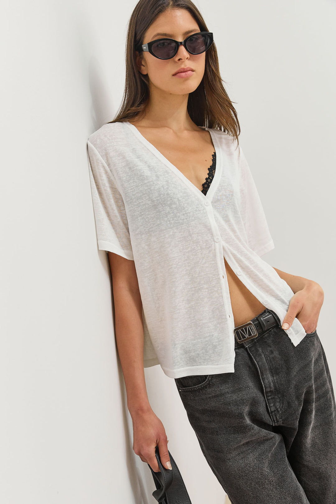 חולצת כפתורים בילי מחשוף וי | לבן
