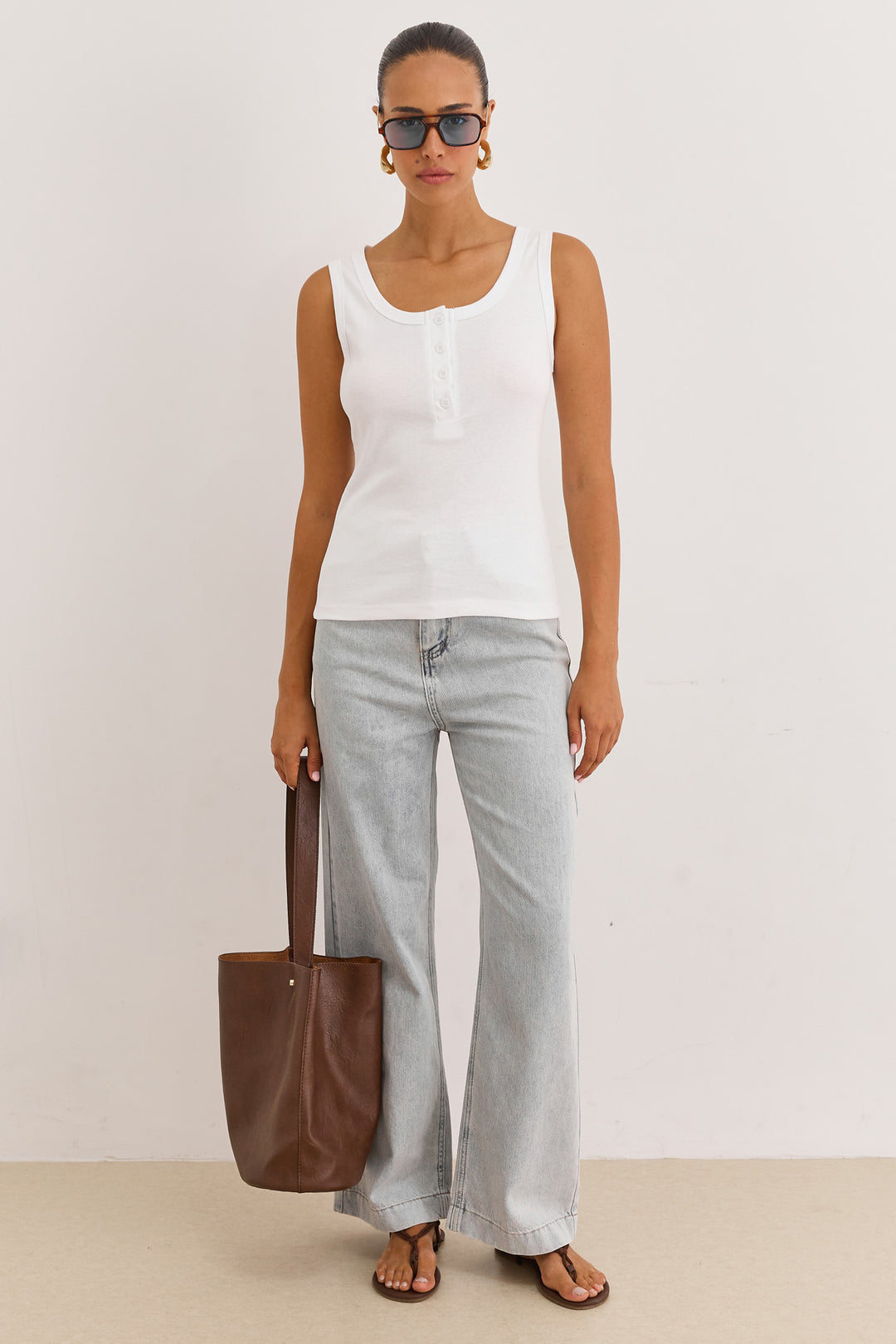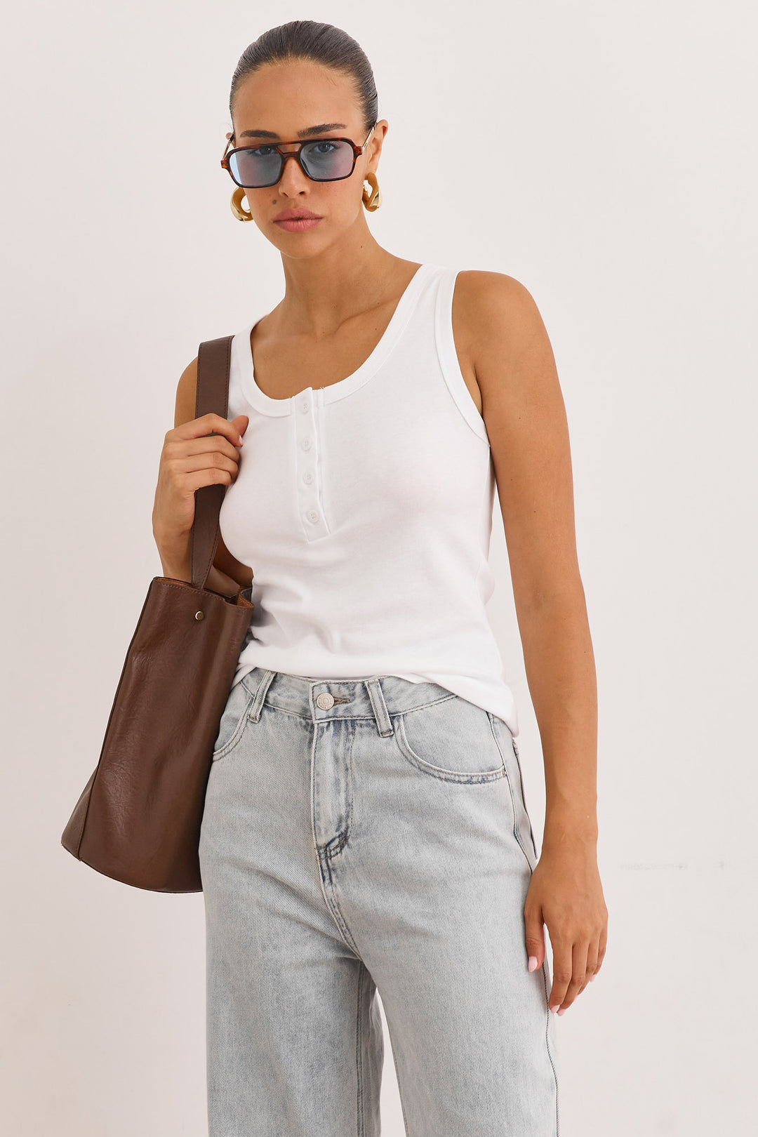 גופיית בייסיק האני כפתורים | לבן