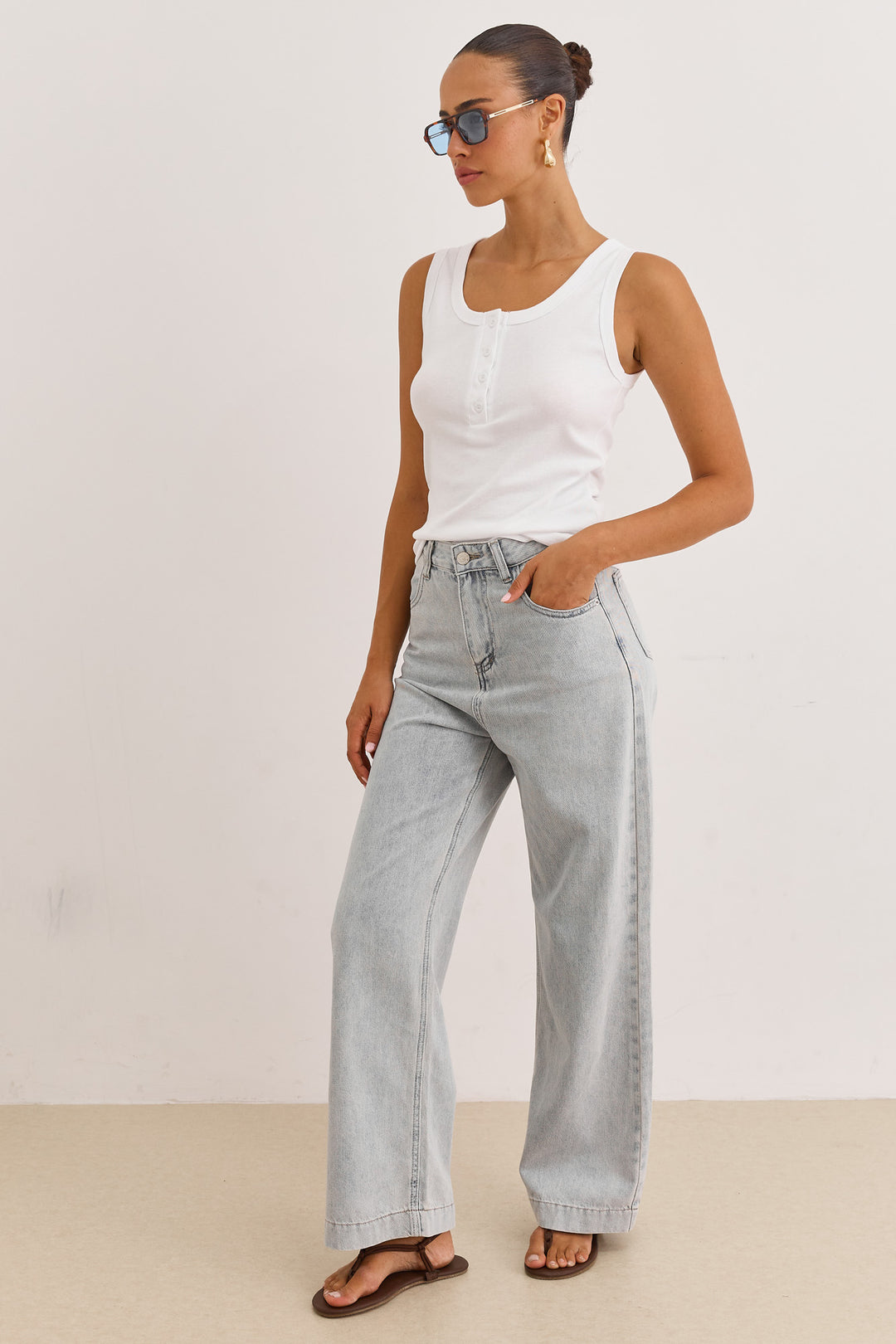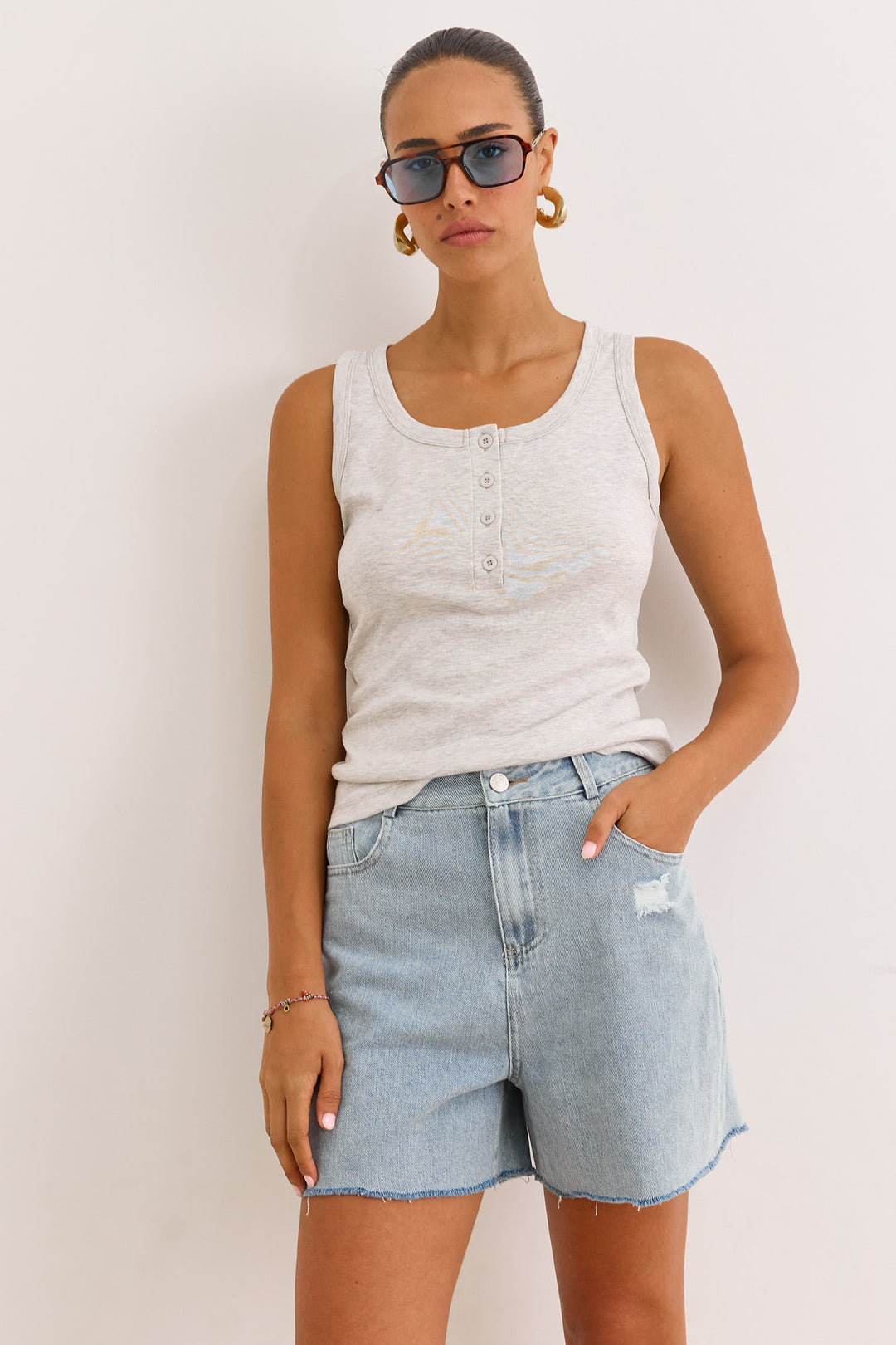 גופיית בייסיק האני כפתורים | אפור בהיר