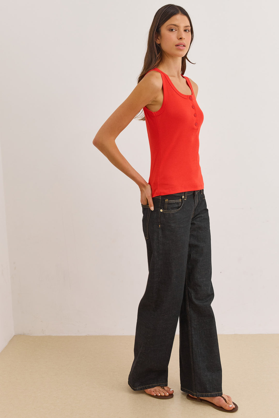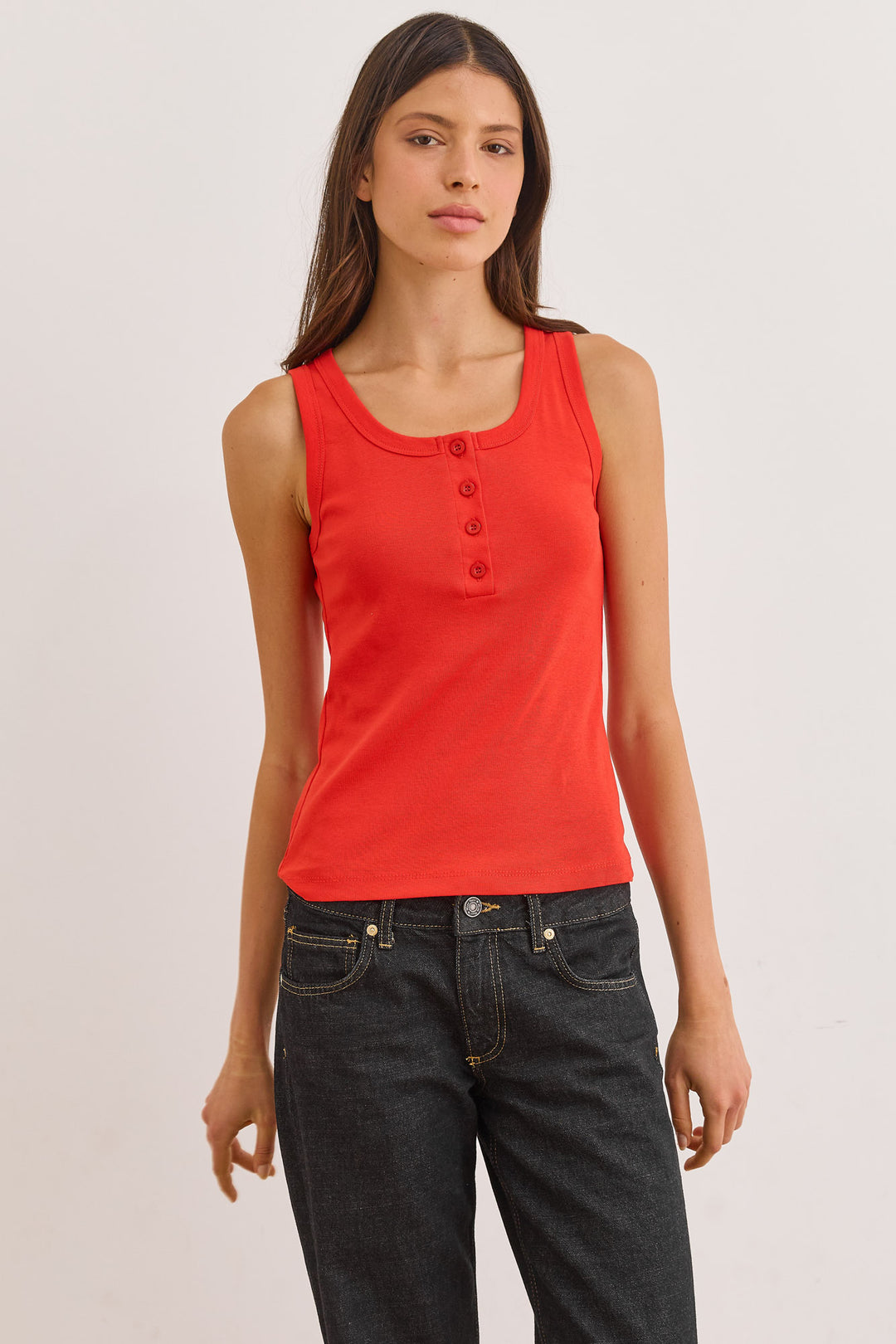 גופיית בייסיק האני כפתורים | אדום