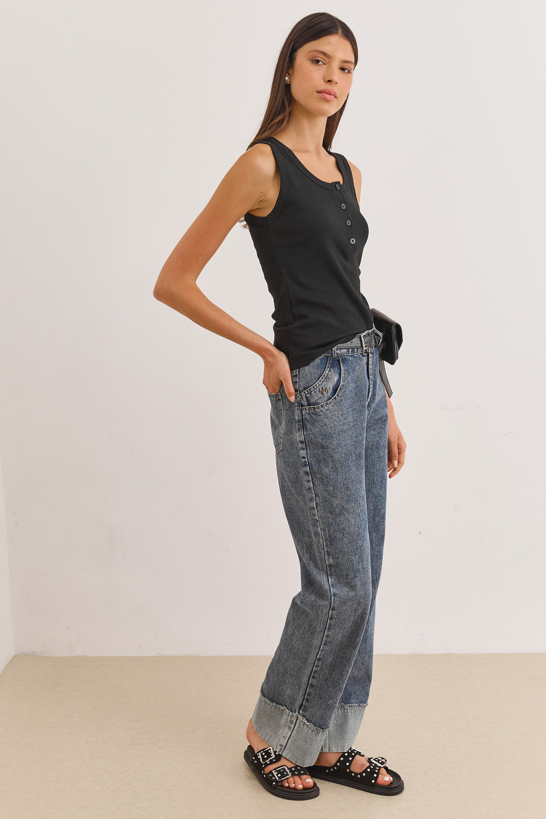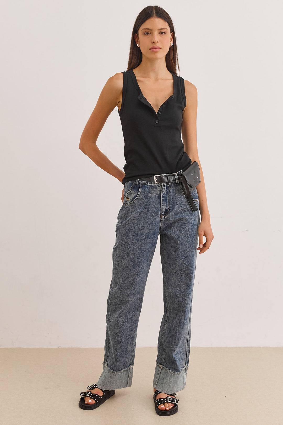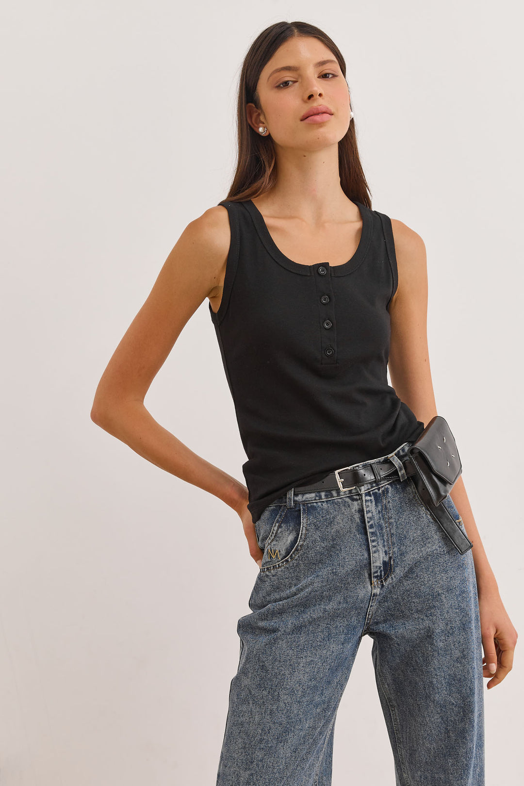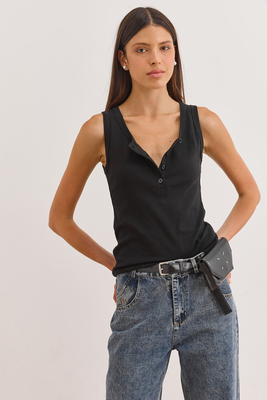 גופיית בייסיק האני כפתורים | שחור