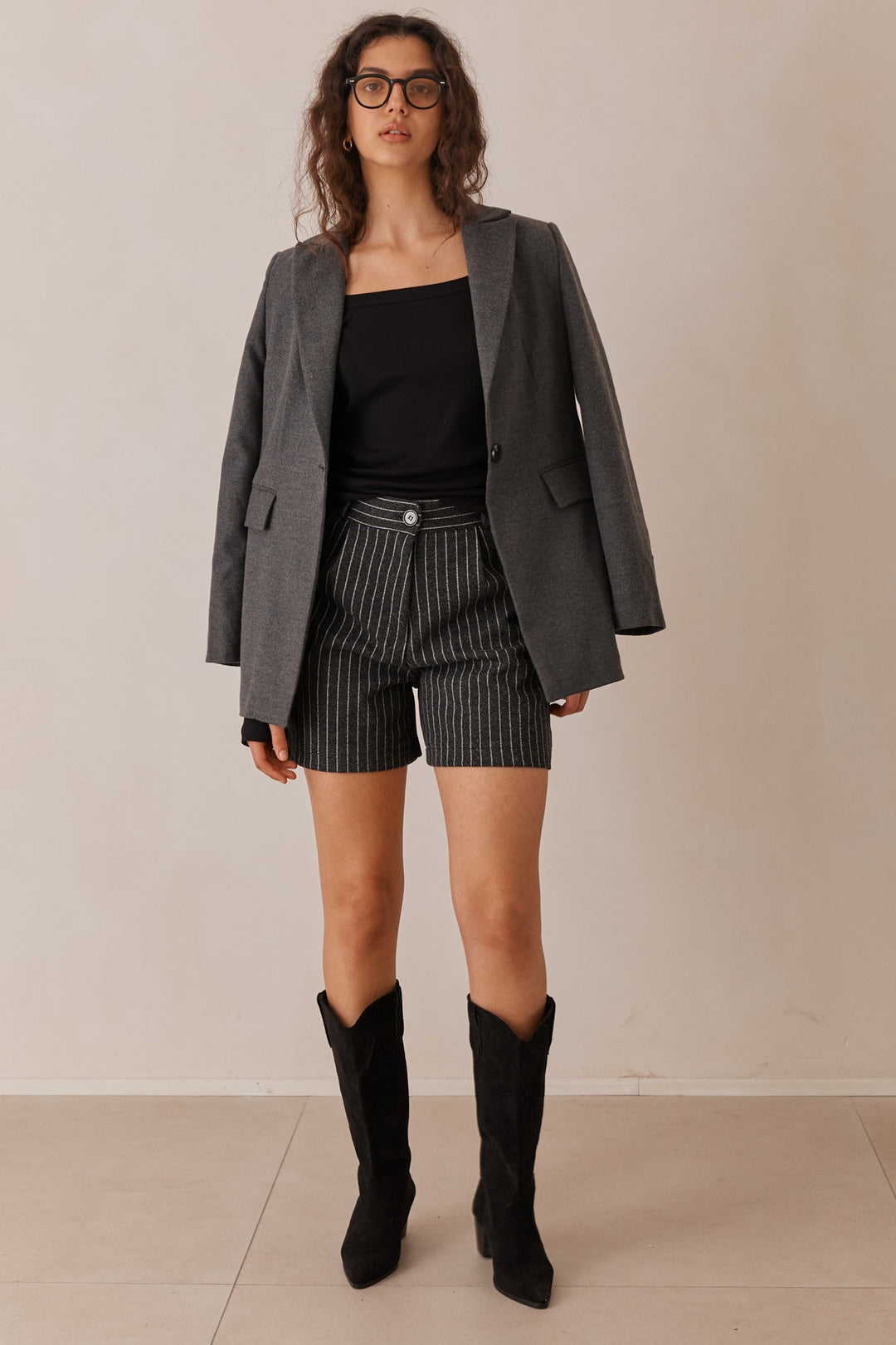 חולצת מיה בד ריב שרוולי כפפה ותפר קדמי | אפור