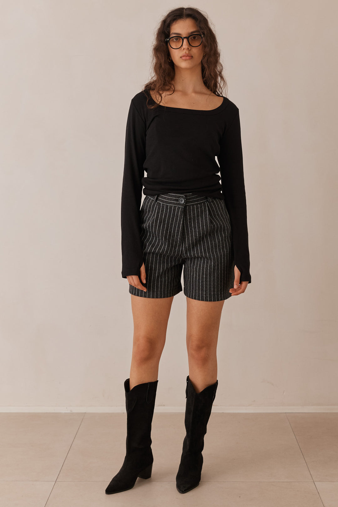 חולצת בייסיק ריין מחשוף מרובע ושרוולי כפפה | שחור