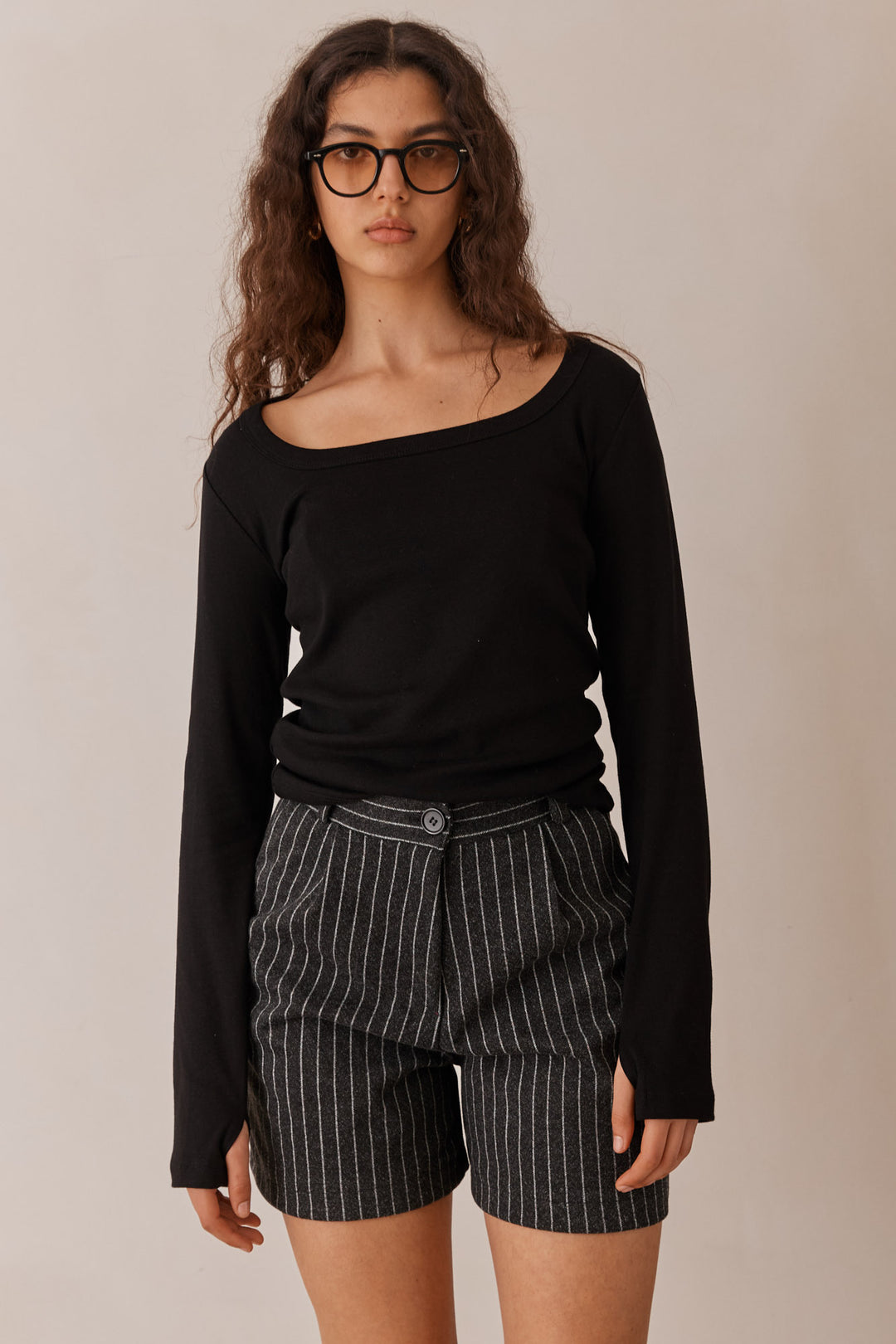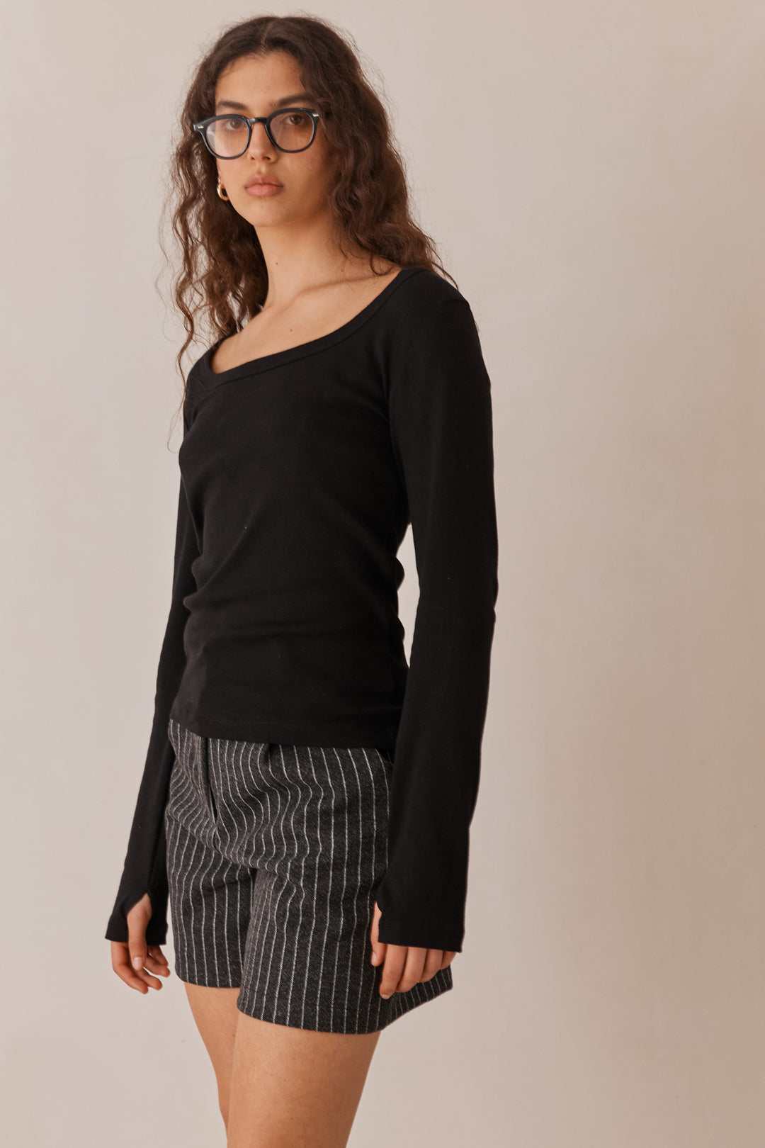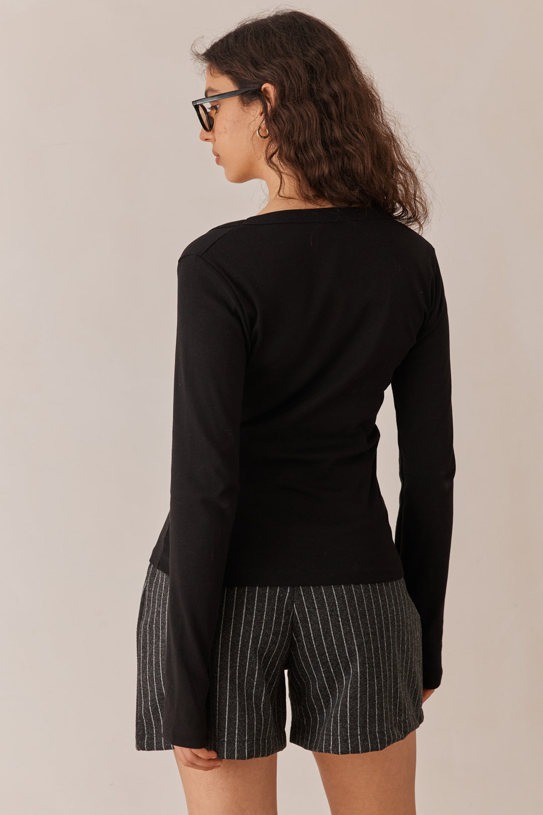 חולצת ביל בייסיק מחשוף גזור בד ריב | שחור