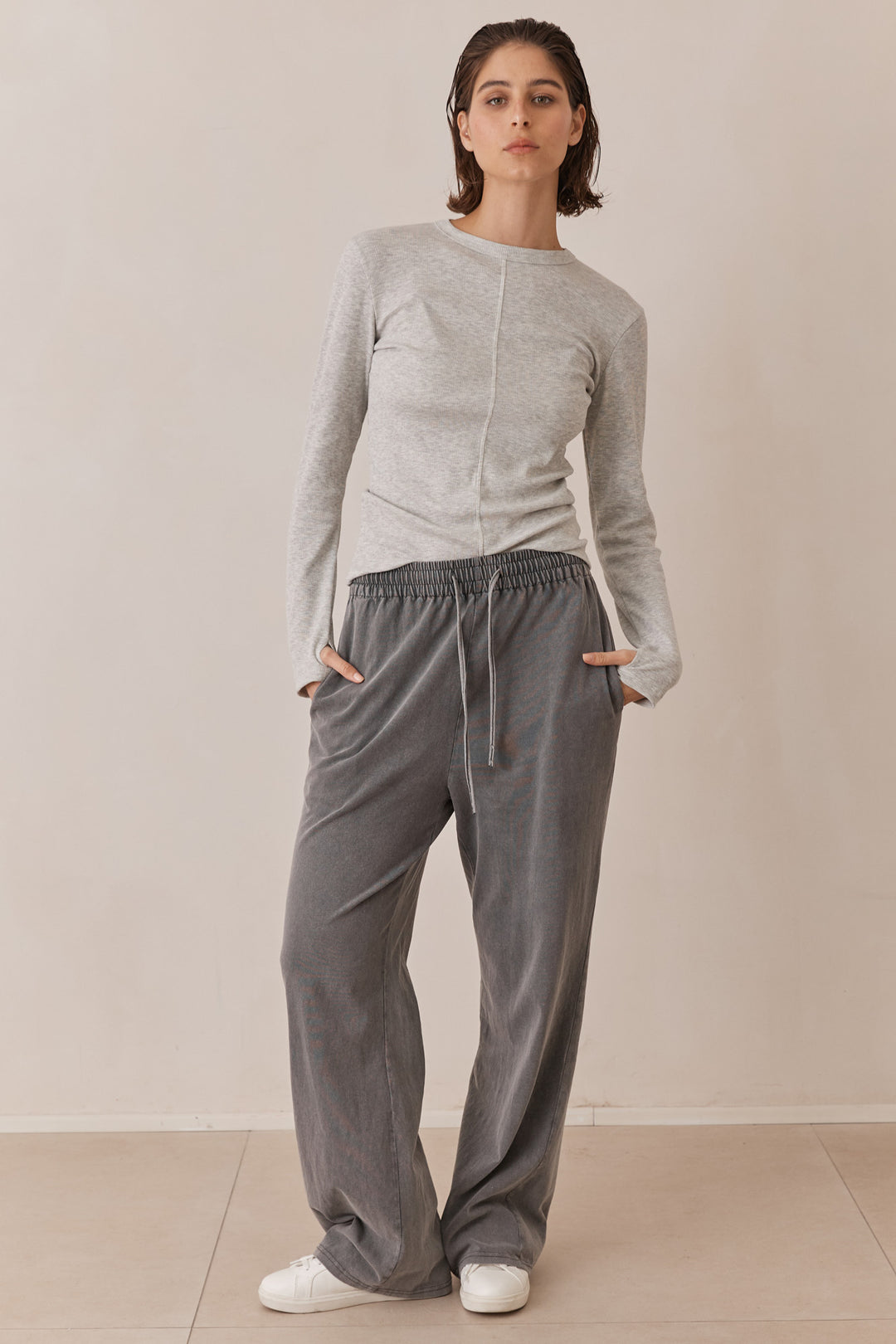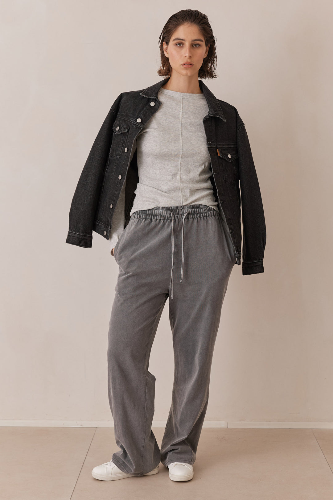 מכנסי קאיה בשילוב גומי במותן ושרוך קשירה | אפור