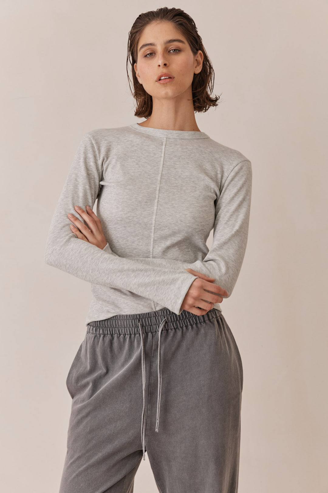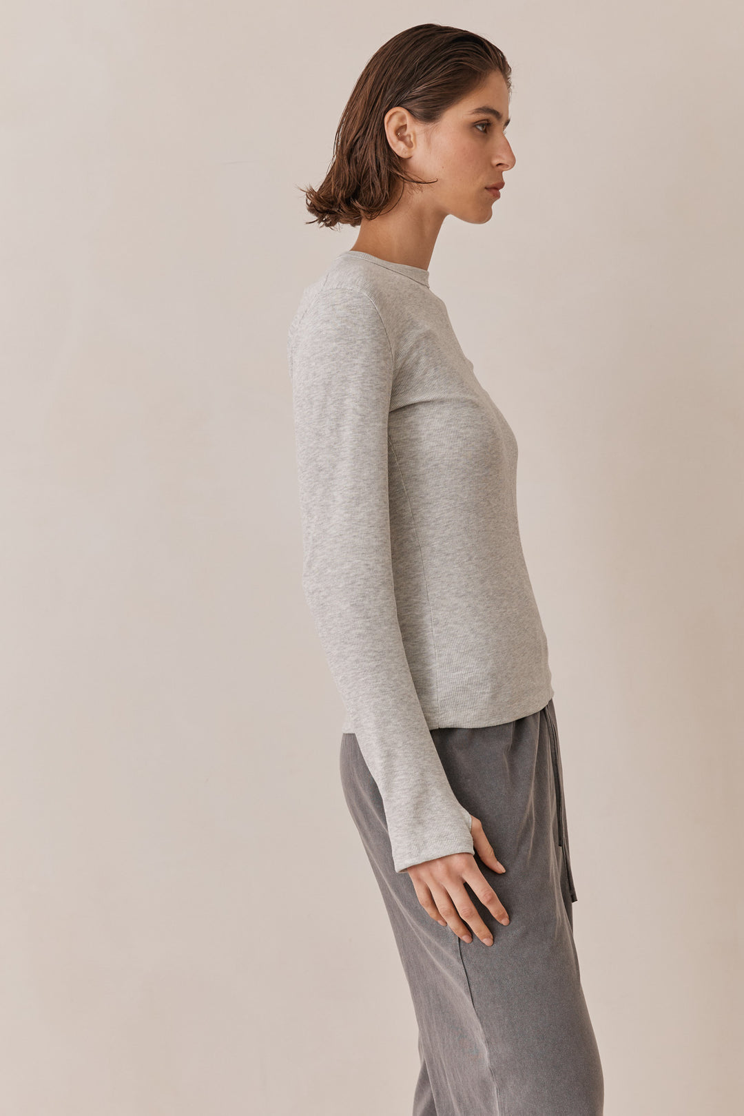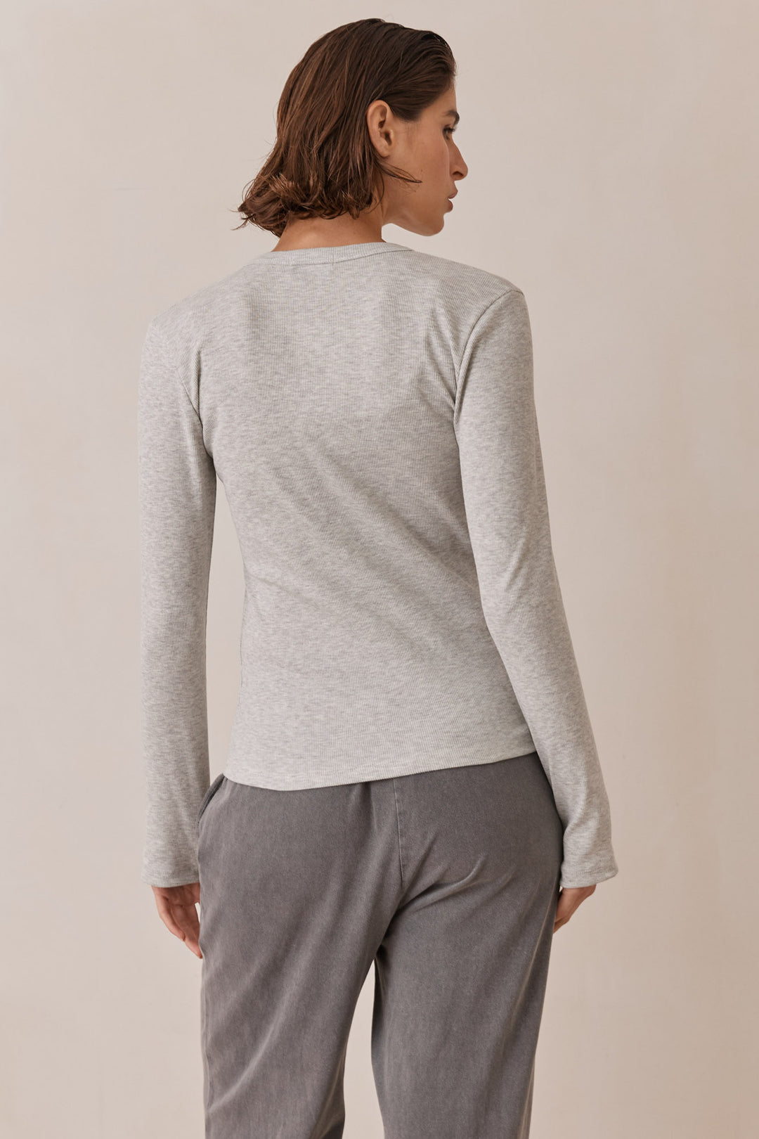 חולצת ביל בייסיק מחשוף גזור בד ריב | אפור בהיר