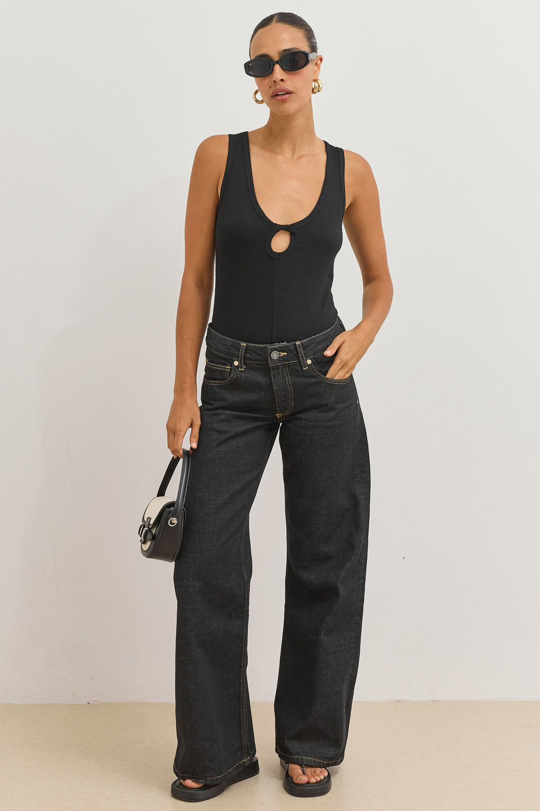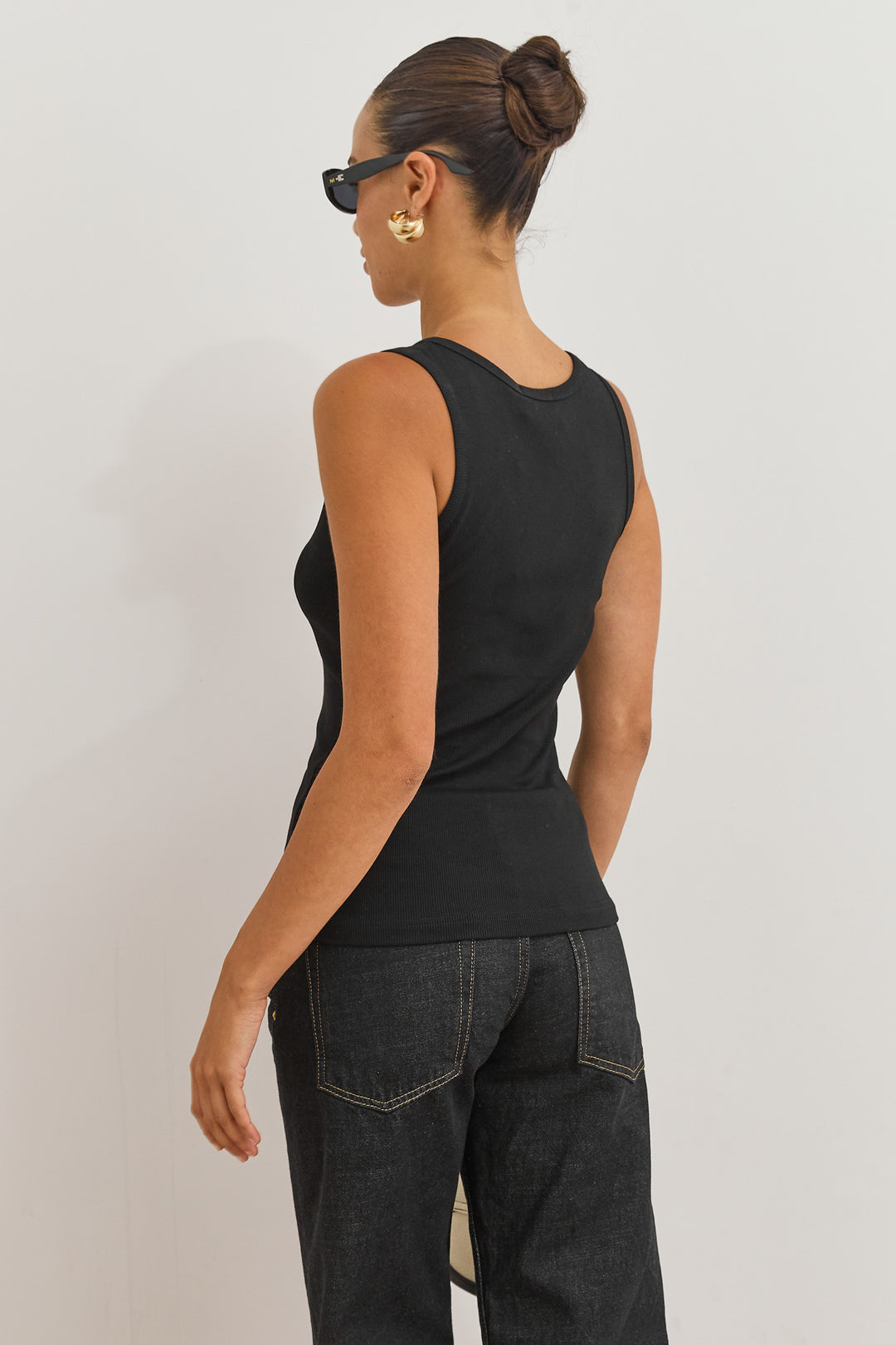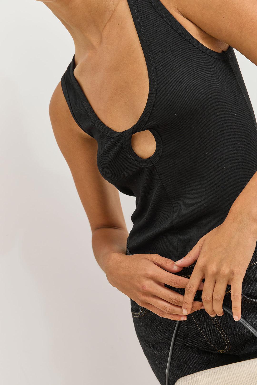 גופיית סאשה שקפקפה טקסטורת פסים | שחור