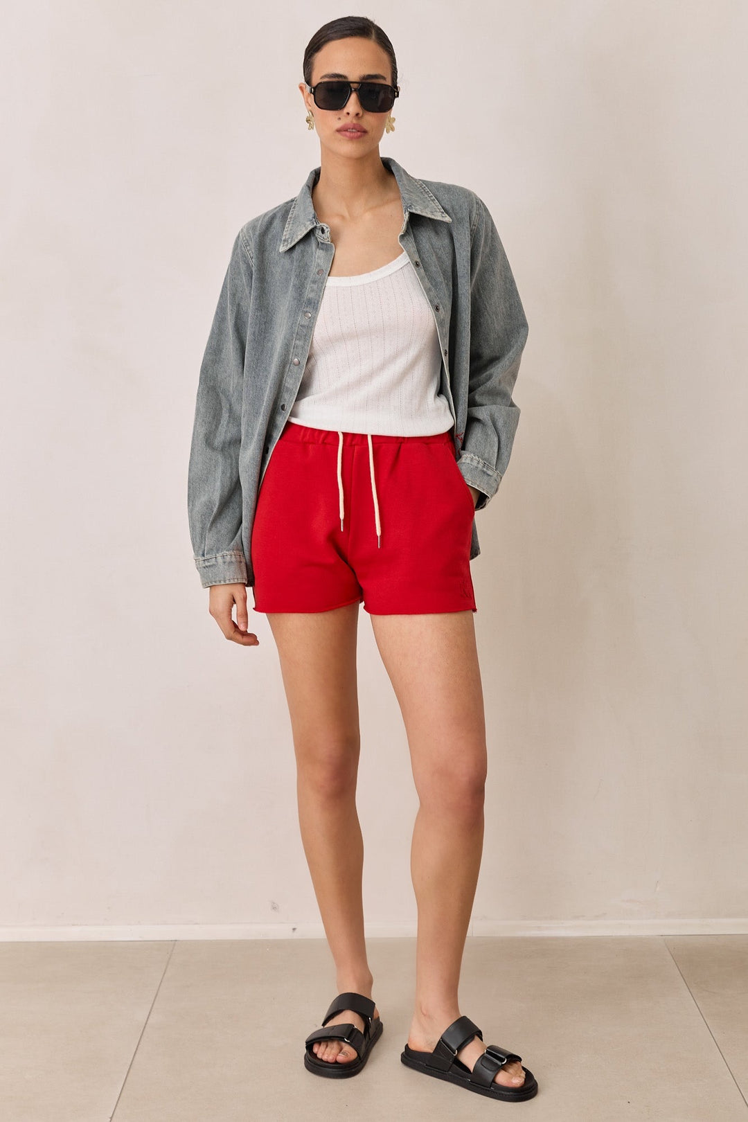 שורטס פרנץ' טרי אדל סיומת גזורה | אדום